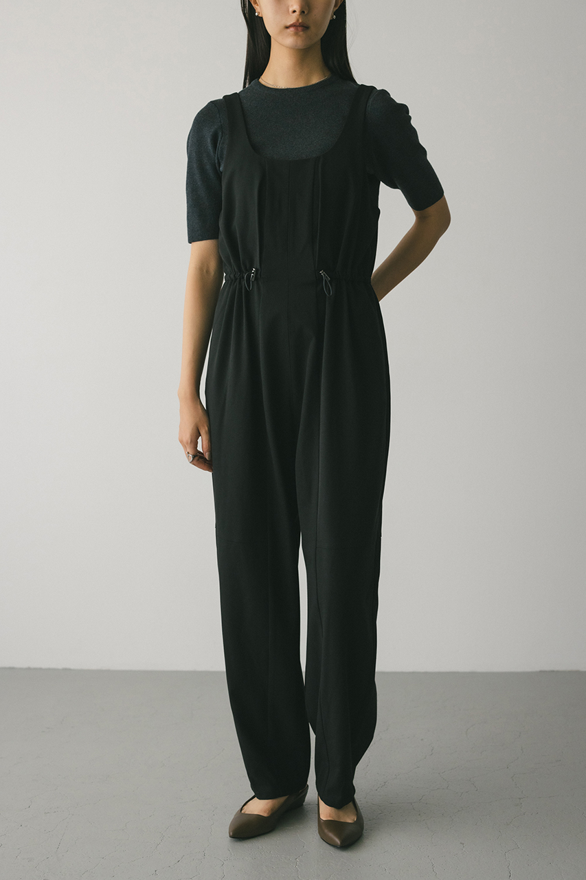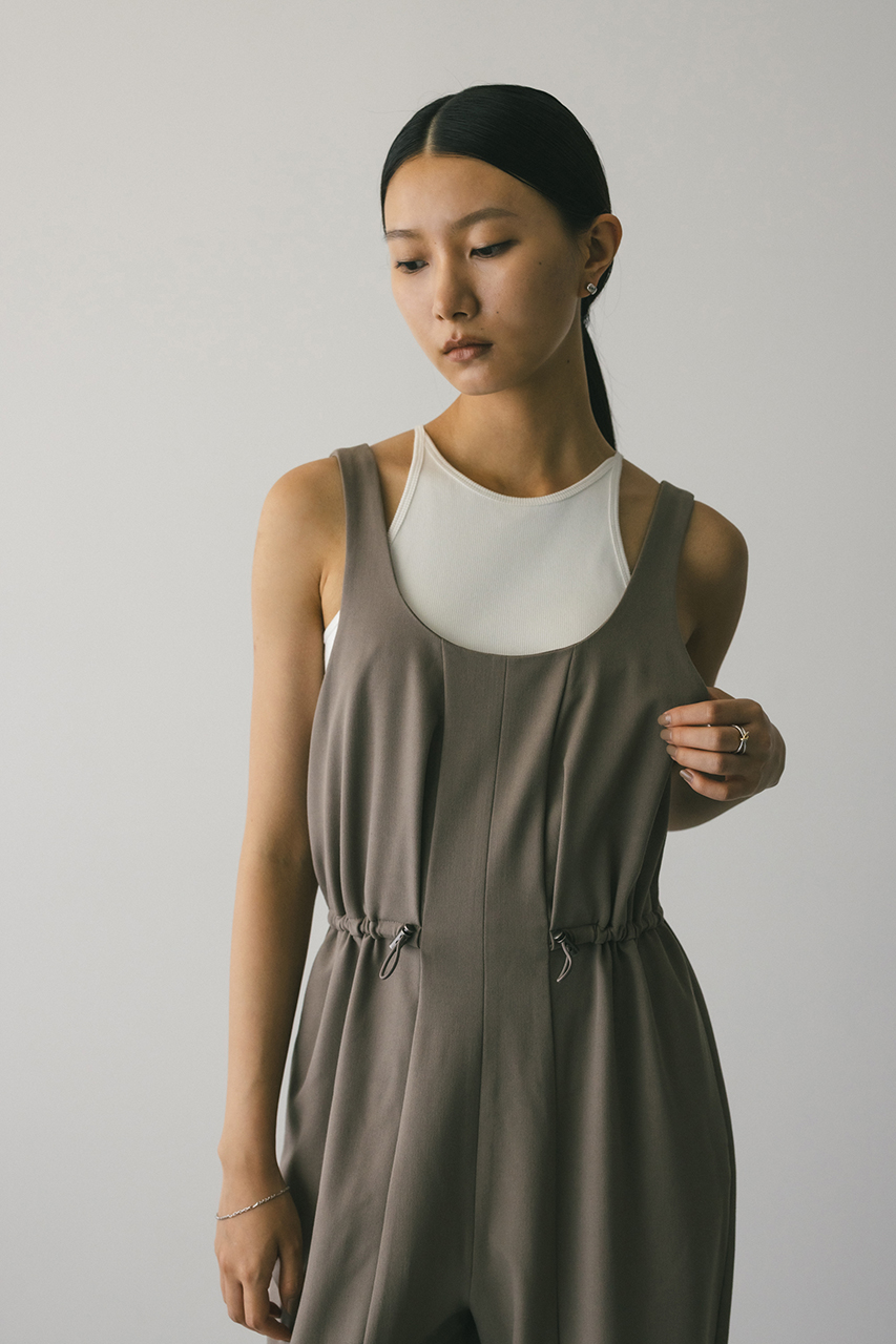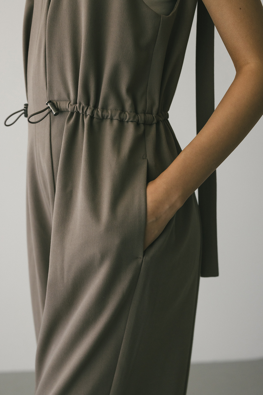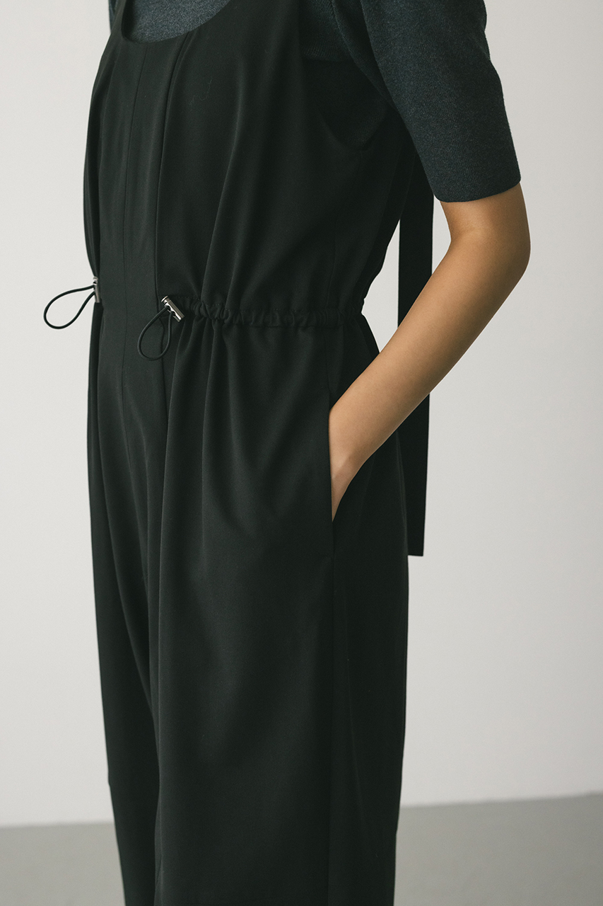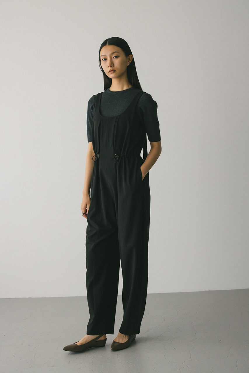 丸みのある立体シルエットが特徴的なロンパース。落ち感のあるきれいめな素材を使用し、カジュアルながらも洗練された印象に導きます。ウエストのドローストリングでシルエット調整が可能。インナー次第でロングシーズン活躍する万能アイテムです。ストレッチややあり、透け感なし。