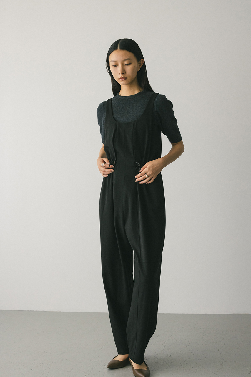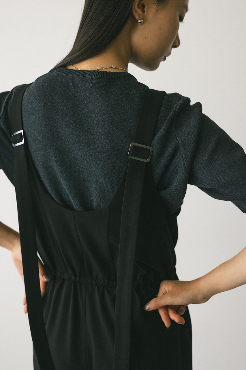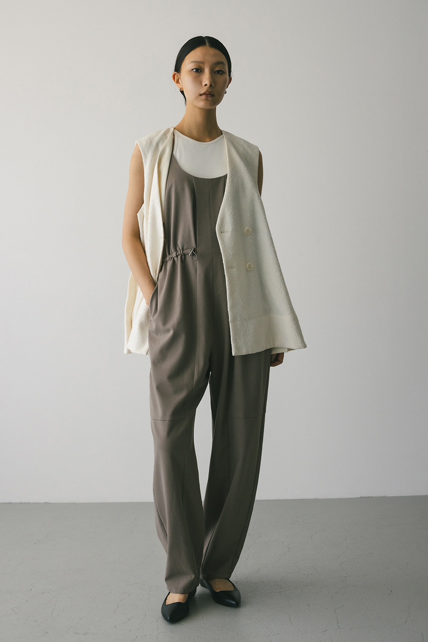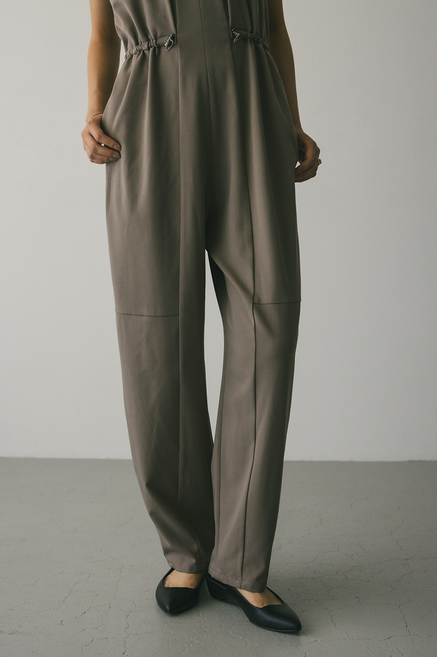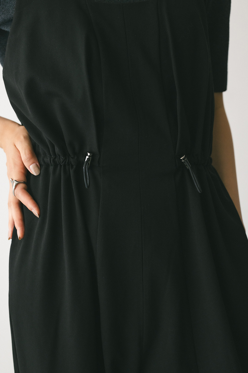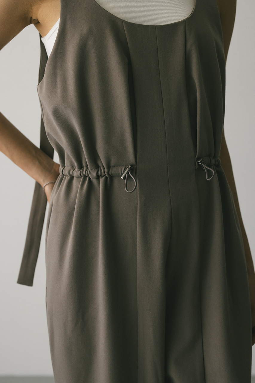 丸みのある立体シルエットが特徴的なロンパース。落ち感のあるきれいめな素材を使用し、カジュアルながらも洗練された印象に導きます。ウエストのドローストリングでシルエット調整が可能。インナー次第でロングシーズン活躍する万能アイテムです。ストレッチややあり、透け感なし。