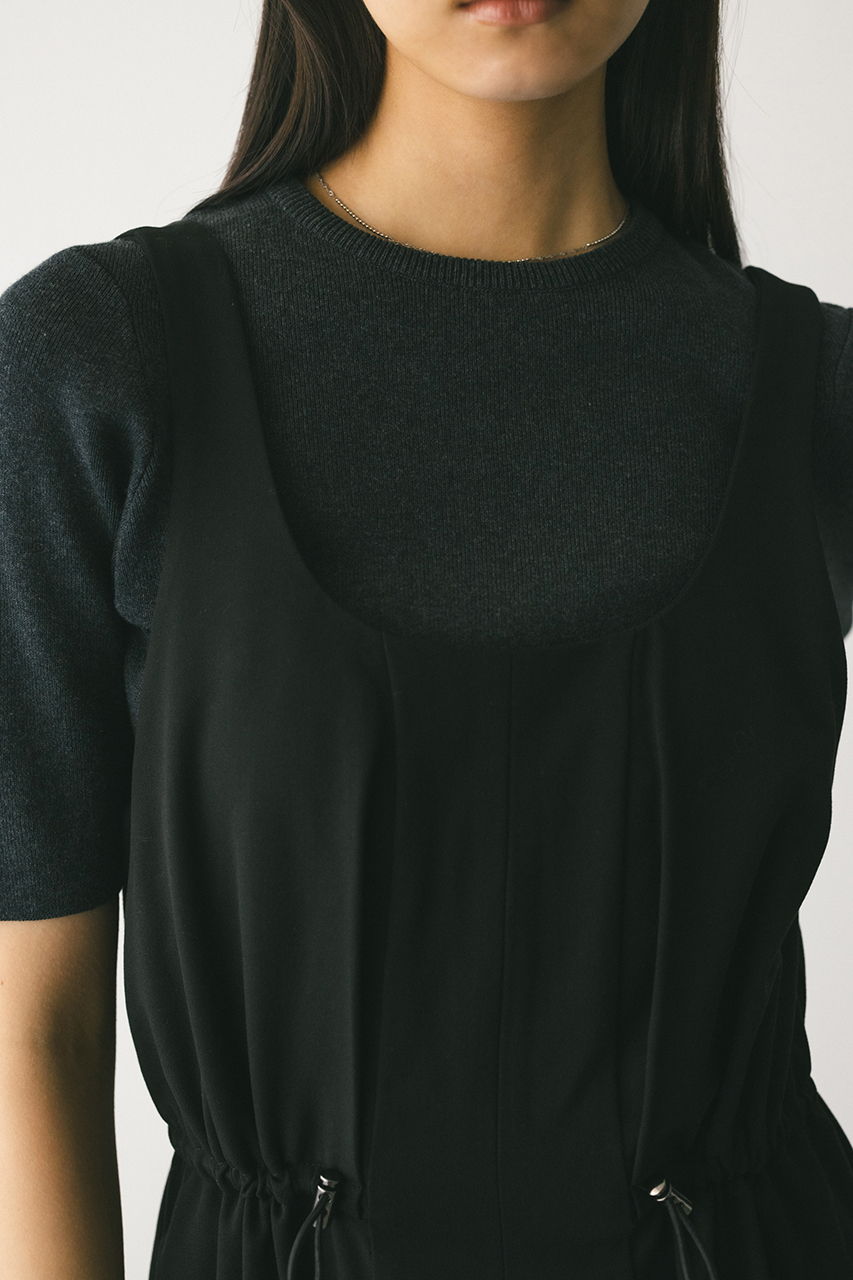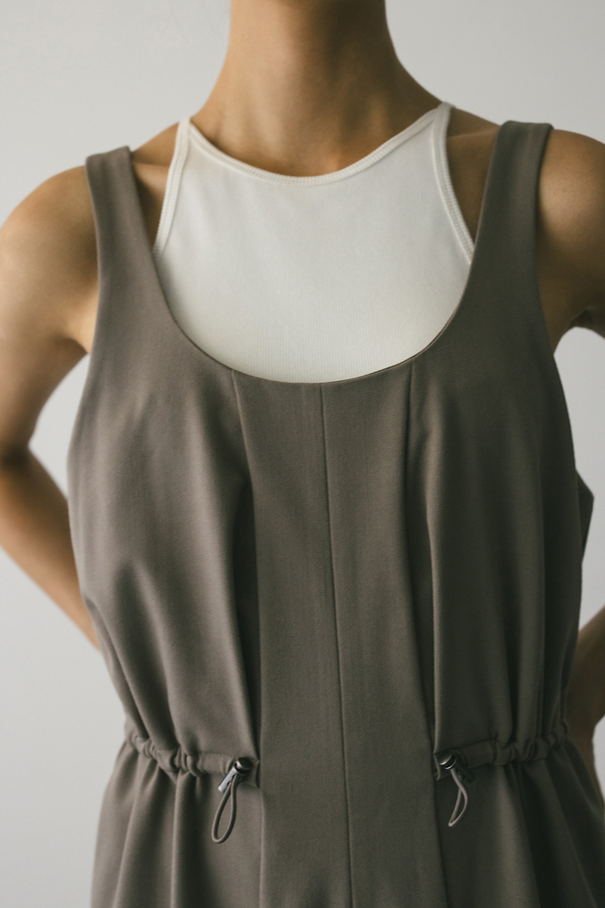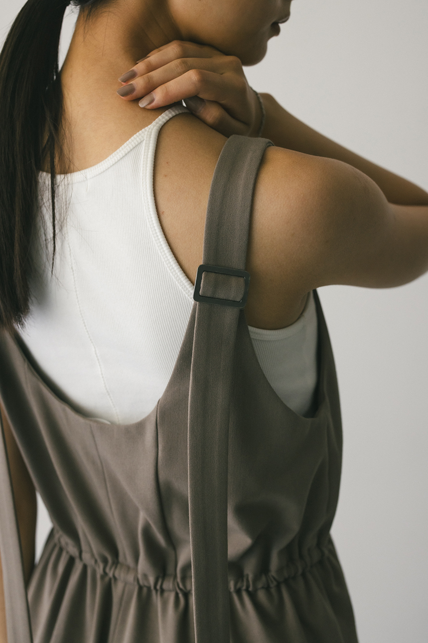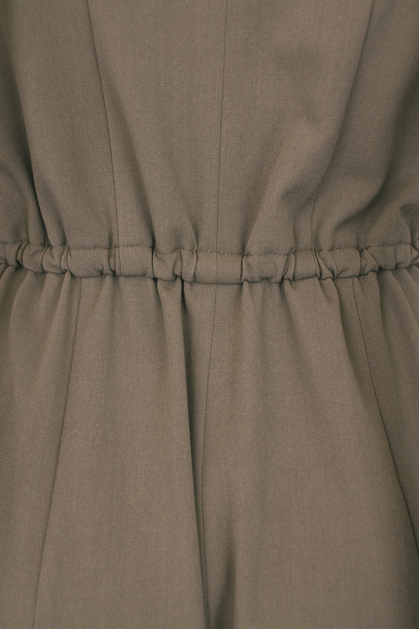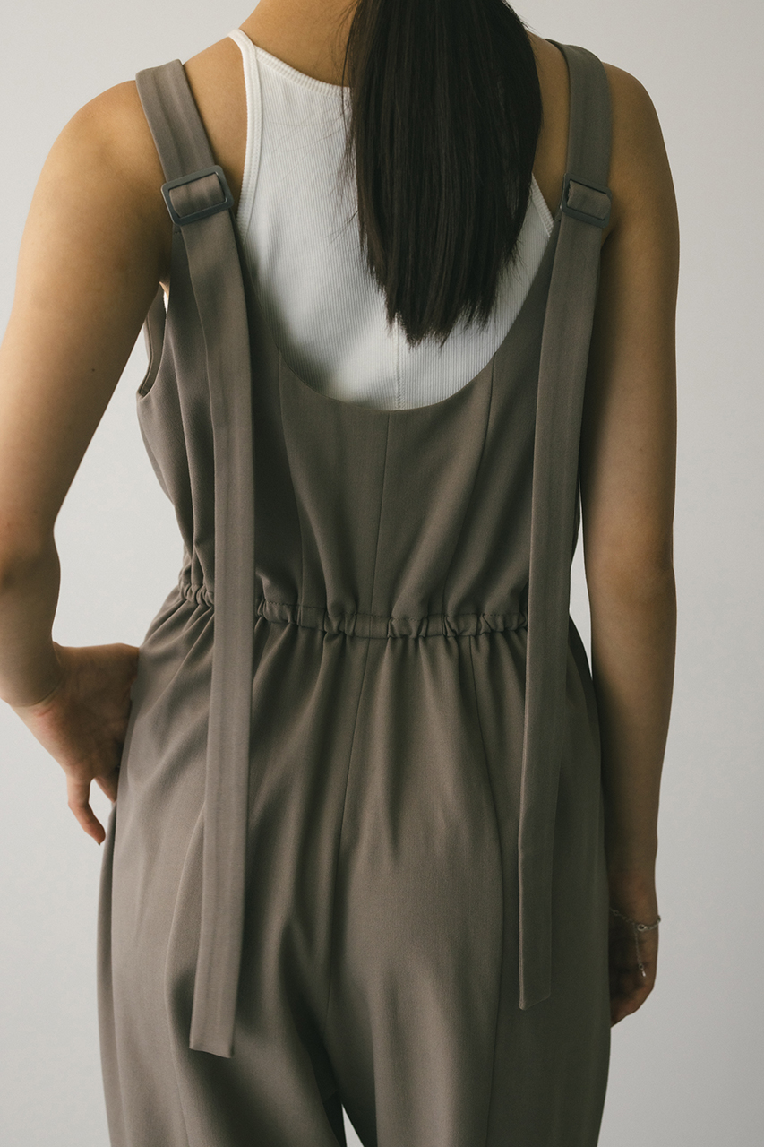 丸みのある立体シルエットが特徴的なロンパース。落ち感のあるきれいめな素材を使用し、カジュアルながらも洗練された印象に導きます。ウエストのドローストリングでシルエット調整が可能。インナー次第でロングシーズン活躍する万能アイテムです。ストレッチややあり、透け感なし。