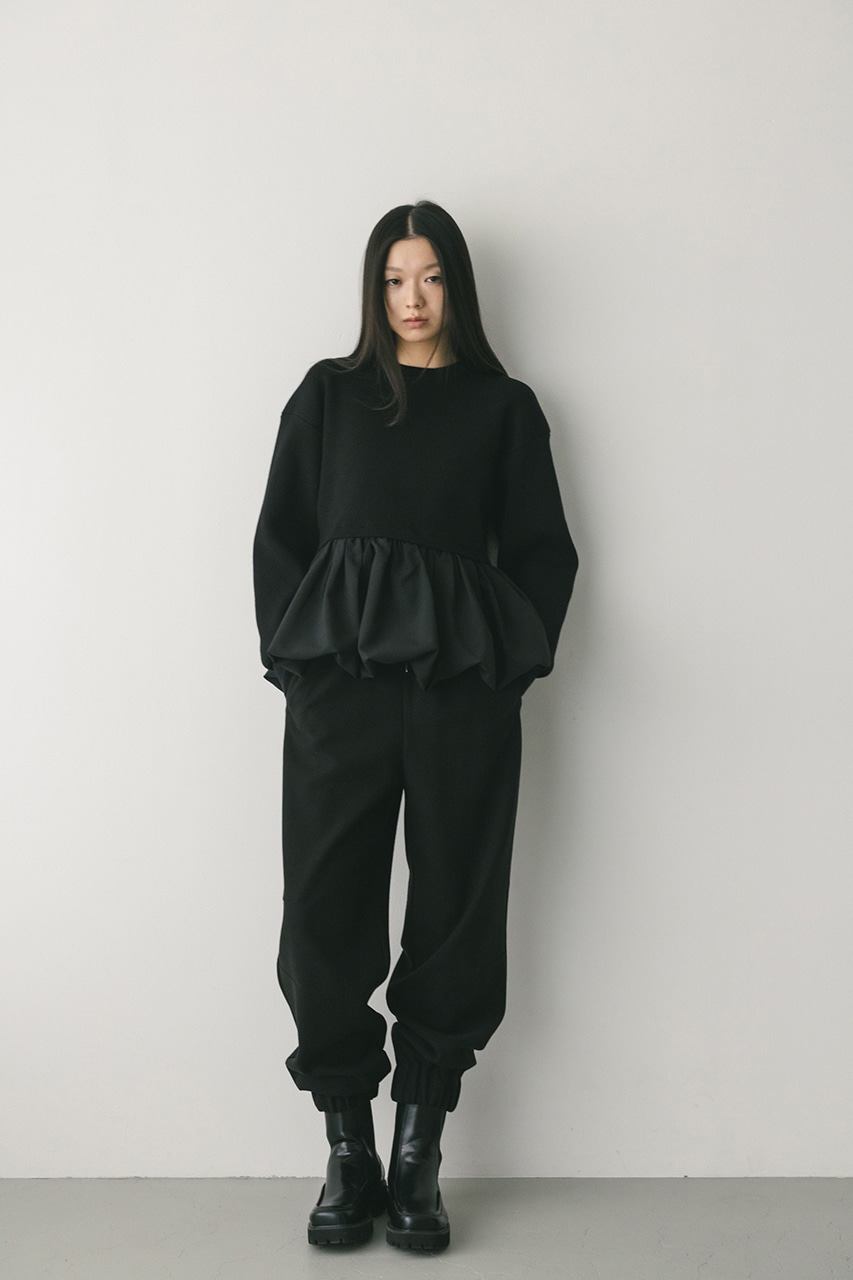 BLK,WHT:ニット部分コットン77% ポリエステル23% 布帛部分ポリエステル98% ポリウレタン2% GRY:ニット部分ポリエステル61% コットン39% 布帛部分ポリエステル98% ポリウレタン2%