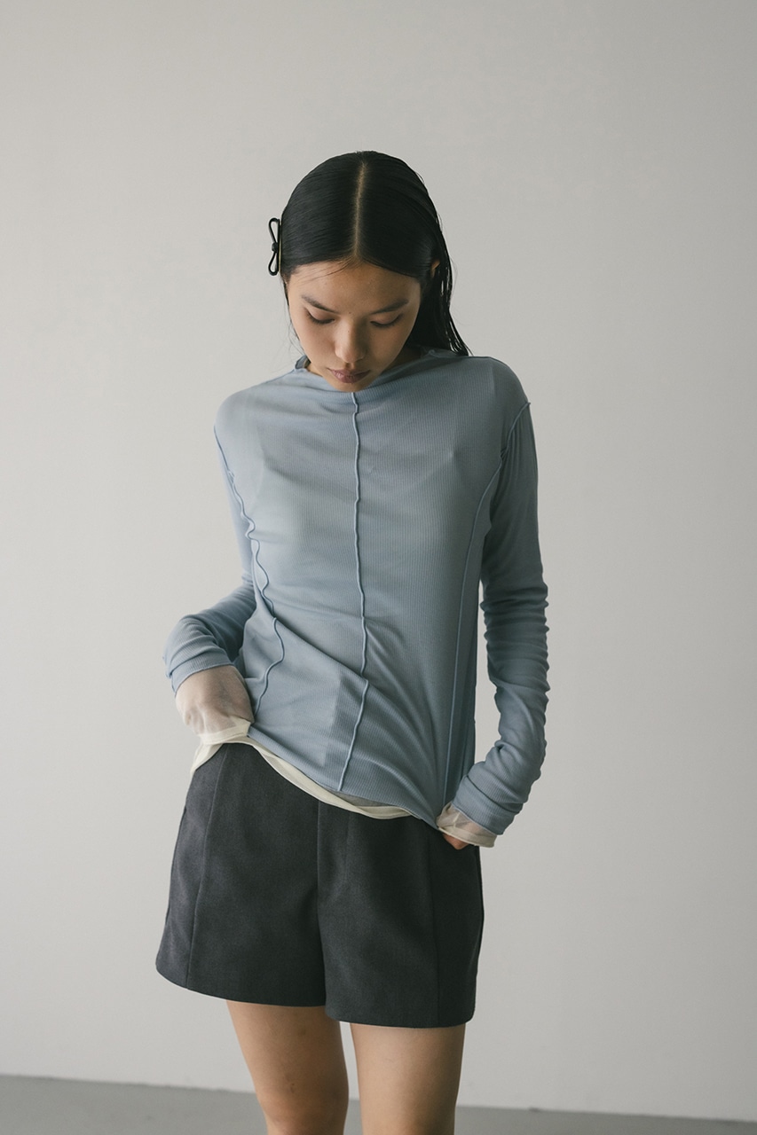 シンプルなカットソーに奥行きと個性をプラスする縫い代をあえて表に出したアウトシームデザインが特徴のトップス。程よいフィット感のあるシルエットで、一枚での着用はもちろん、シャツやジャケットのインナーとしても映える一枚。柔らかな肌ざわりで着心地が良く、カジュアルからモードまで幅広いスタイリングに馴染みます。ストレッチあり、透け感なし。