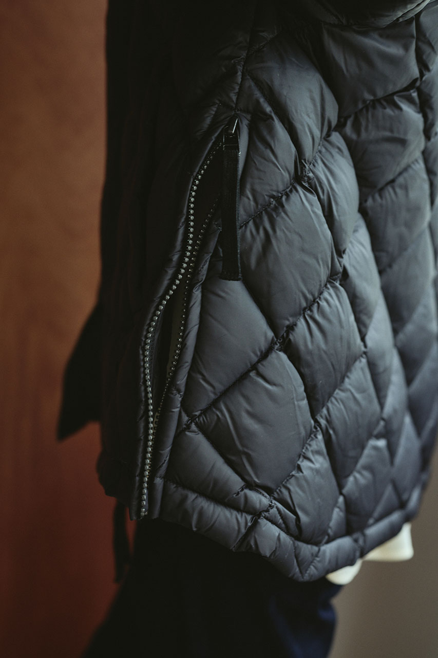 スタンドにもなるコーデュロイカラーとサイドファスナーがポイントのダウンジャケット。TAIONの機能性はそのままにスタミキらしいニュアンスのあるデザインに仕上げた一枚。抜け感のあるワイドスリーブはボタンでサイズ調整可能。暖かいポケット裏フリース使用。メンズサイズ展開あり(501IAK30-0211【別注】TAIONメンズダウンジャケット)。ストレッチなし、透け感なし。
