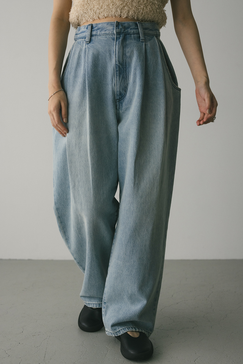 ルーズなシルエットでトレンド感のあるこなれた印象をプラスするローウエストデニム。深いタックとポケットデザインがポイントです。いつものスタイリングに鮮度を持たせてくれる一枚です。ストレッチなし、透け感なし。