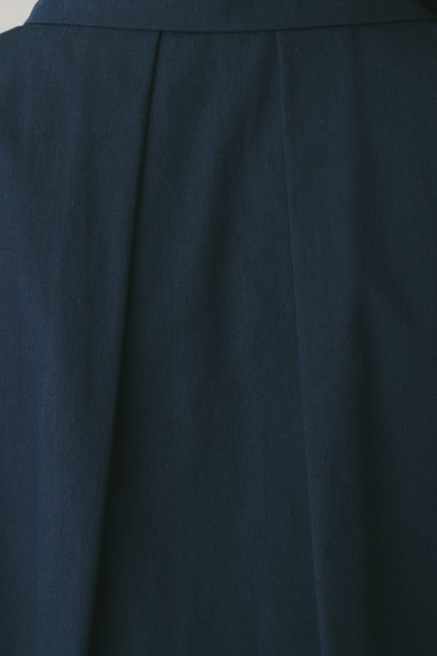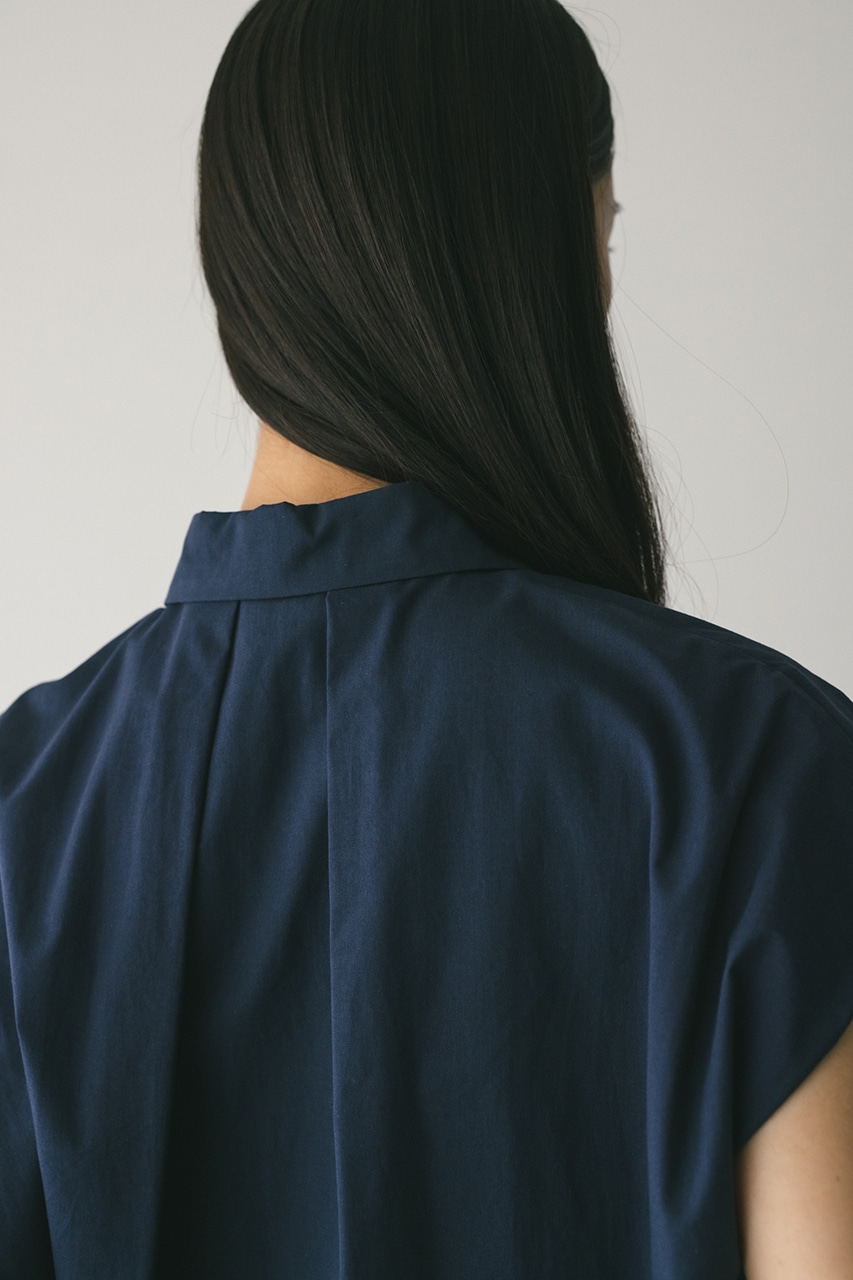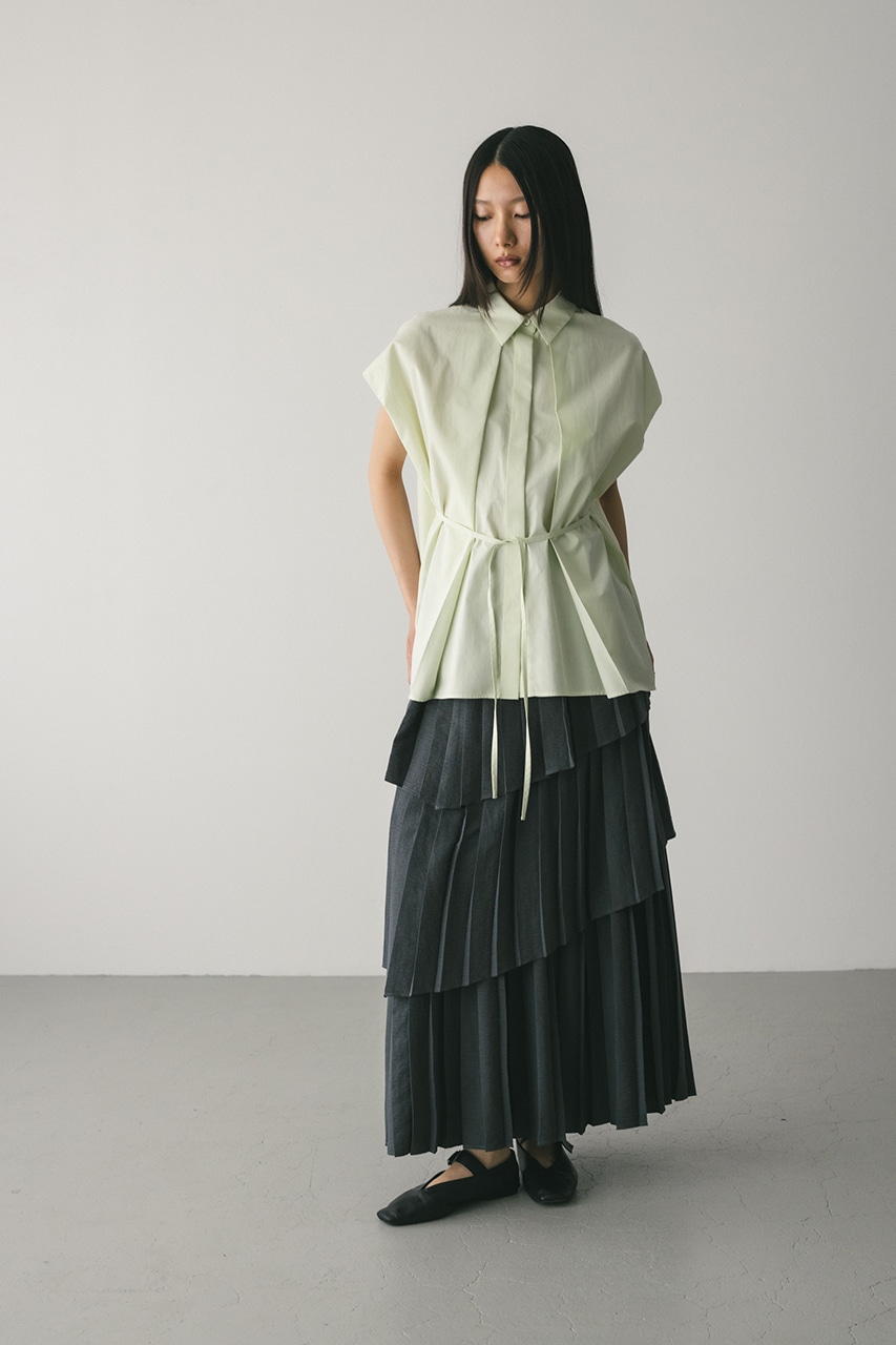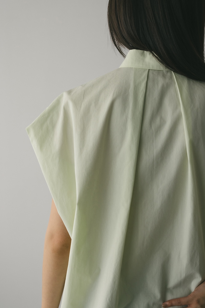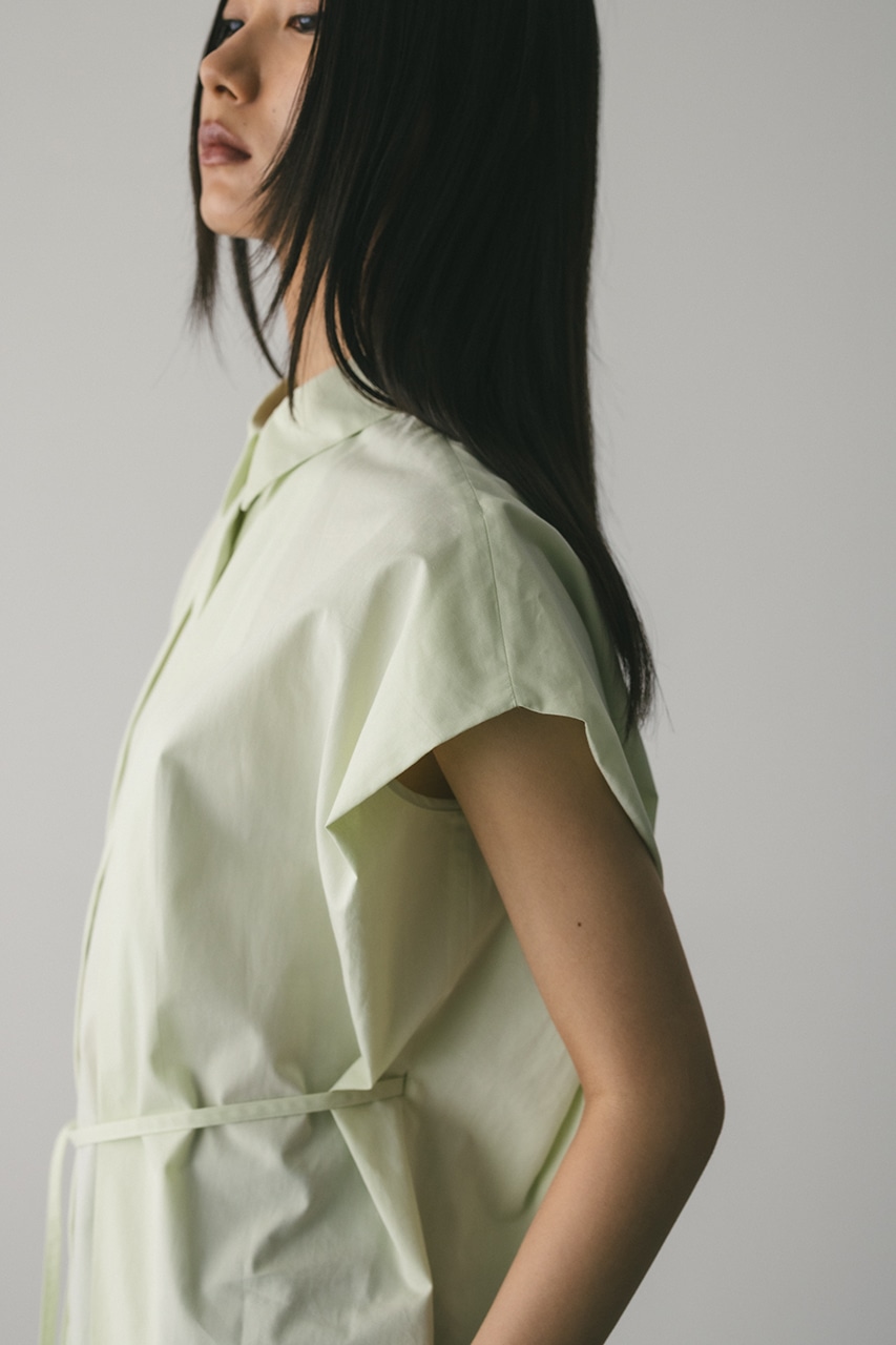 オーバーショルダーとゆったりルーズな身幅、深いタックデザインで可愛いフォルムを作ってくれるオーバーシャツ。脇のスリットから紐を通して結んだり、チョーカー風に巻いたり、襟下で結んだりとアレンジを楽しんでいただけます。ヒップをカバーしてくれる丈でボトムスを選ばず着用頂けます。透け感WHTややあり、ストレッチなし。