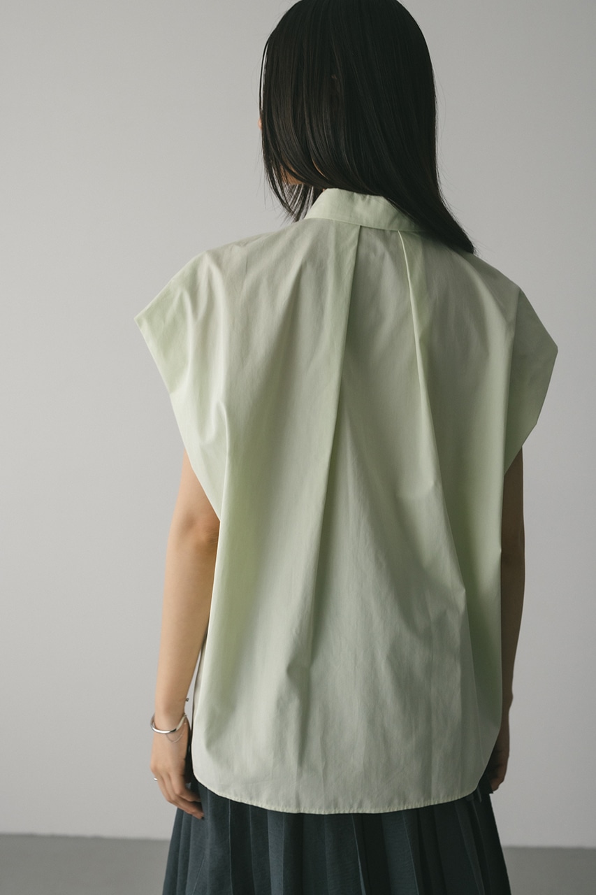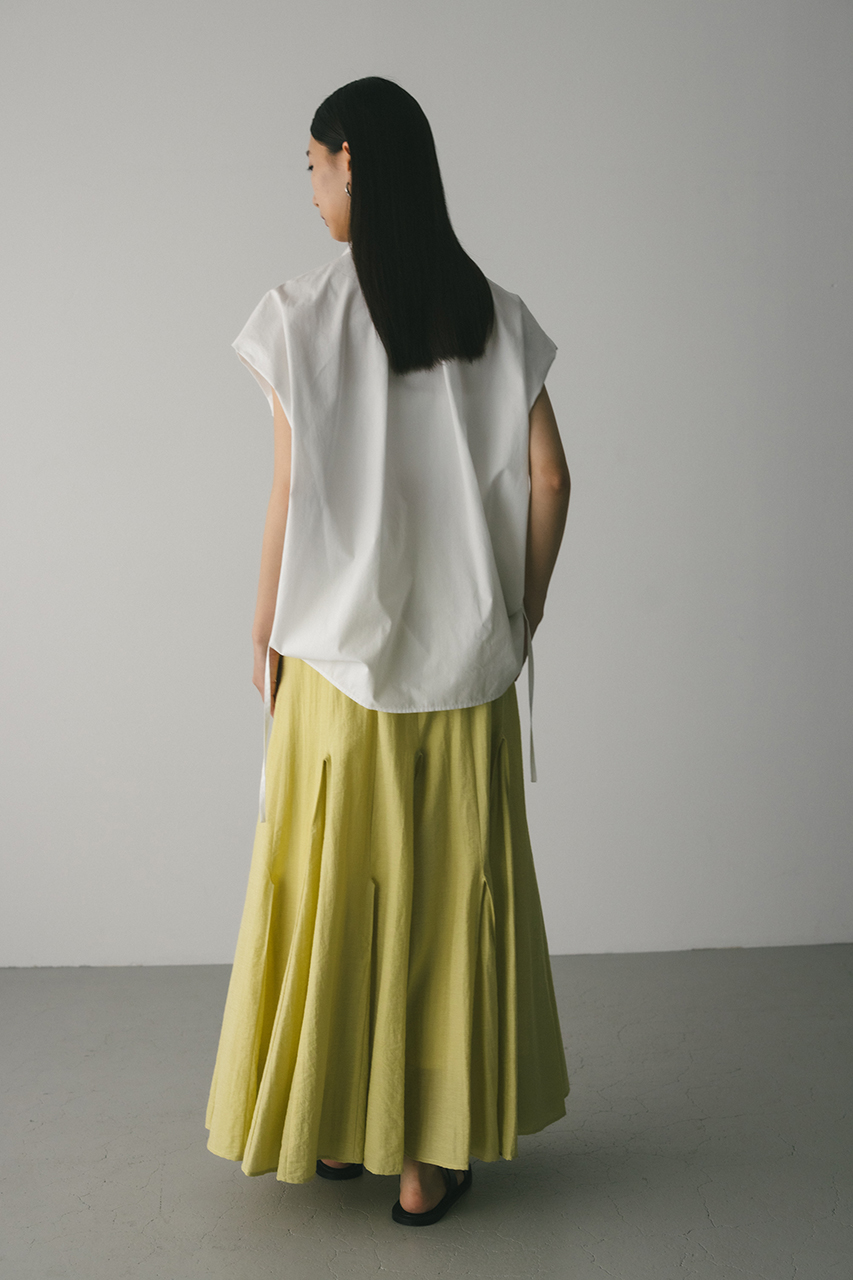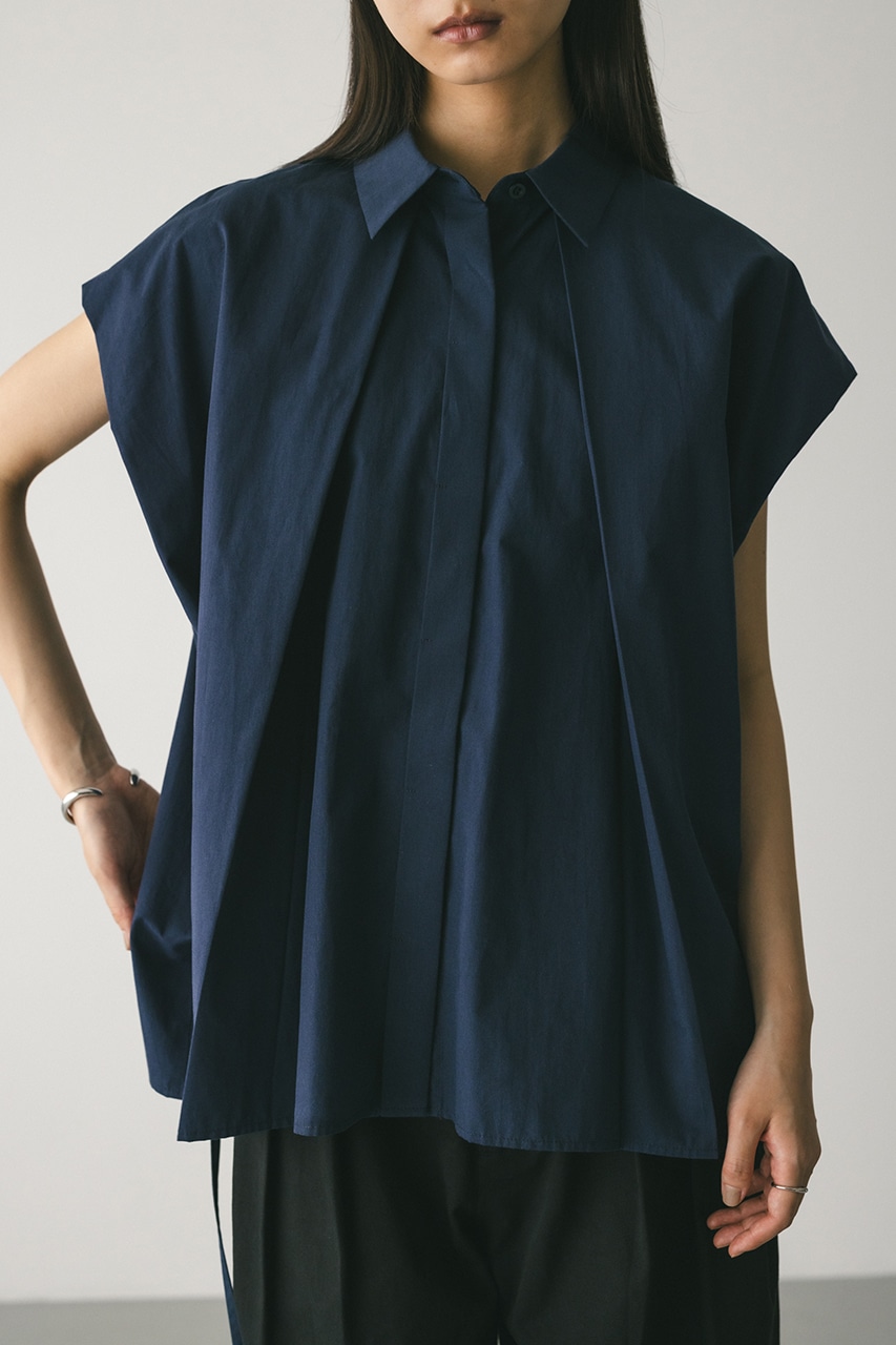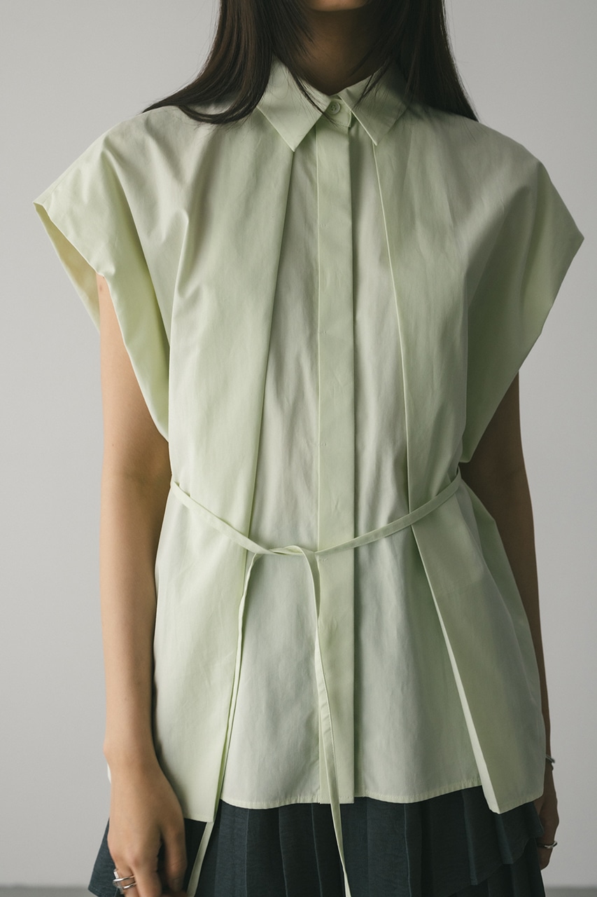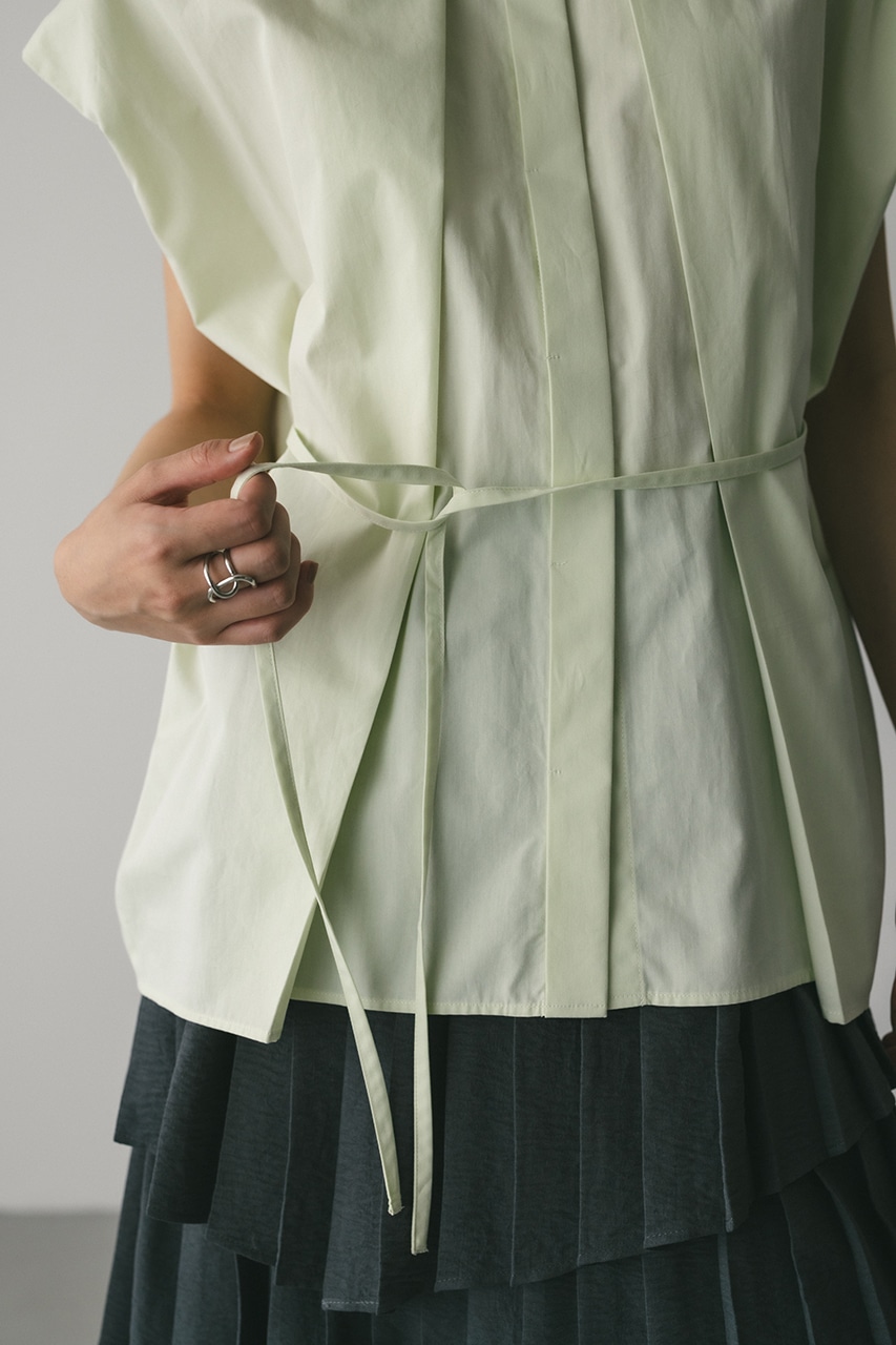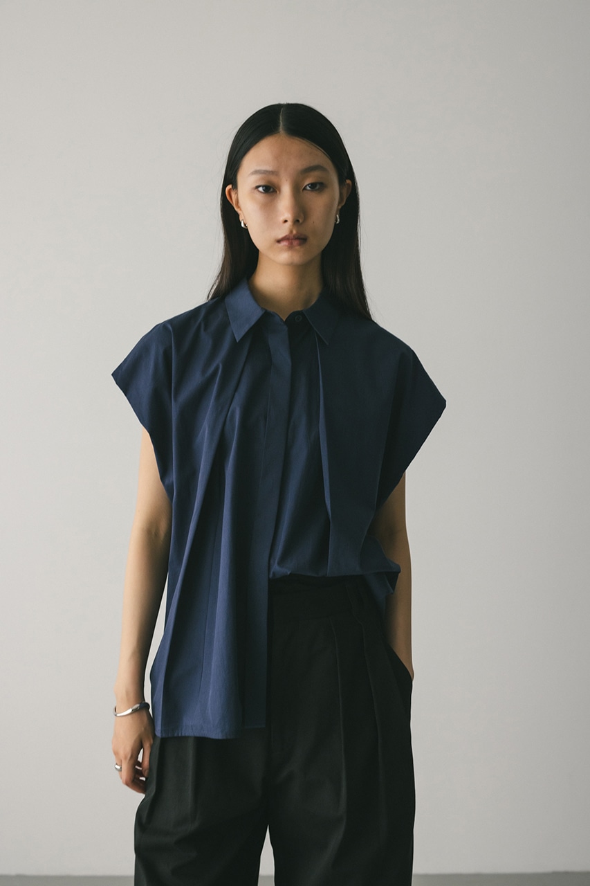 オーバーショルダーとゆったりルーズな身幅、深いタックデザインで可愛いフォルムを作ってくれるオーバーシャツ。脇のスリットから紐を通して結んだり、チョーカー風に巻いたり、襟下で結んだりとアレンジを楽しんでいただけます。ヒップをカバーしてくれる丈でボトムスを選ばず着用頂けます。透け感WHTややあり、ストレッチなし。