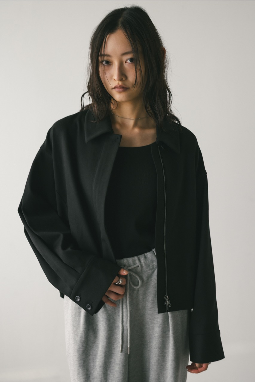 抜け感のある裾ゴムデザインと袖タックワイドスリーブがポイントのミディアム丈のブルゾン。逆開ファスナーでスタイリングしやすく、様々なスタイリングに馴染むアウター。ロングシーズン着用頂ける一重仕立てで仕上げました。袖口は調整可能。500IAS31-1171(フォルムショートパンツ)とセットアップ着用可能。透け感なし、ストレッチややあり。