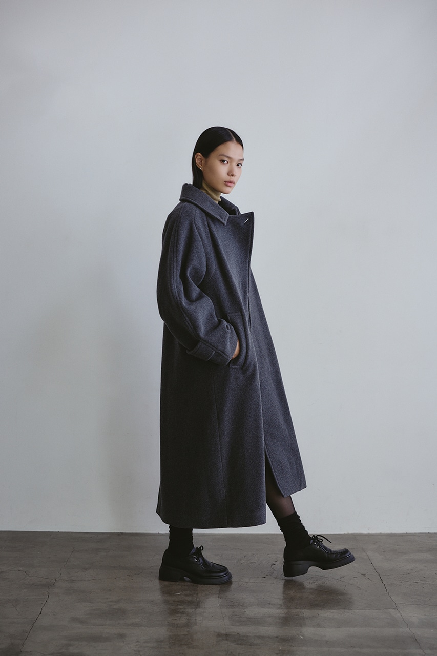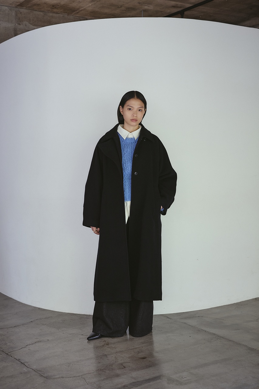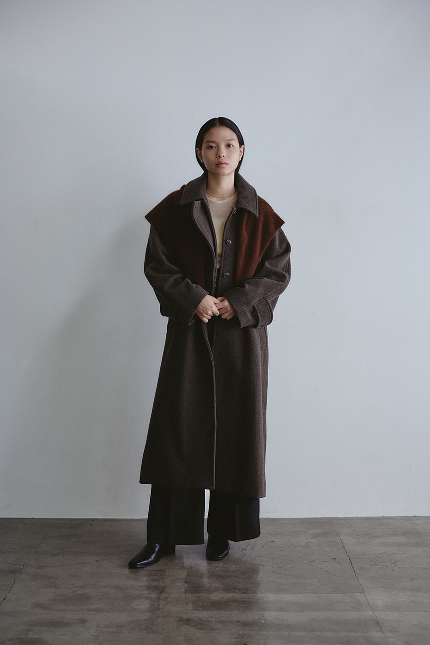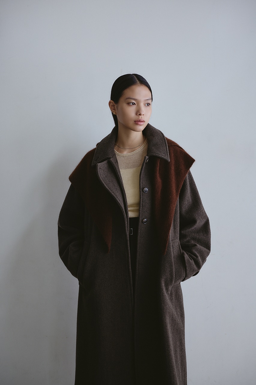 シンプルながらワンテクを入れたレイヤーカラーがデザインポイントのスタミキ人気のウールコート。ロング丈でモードにもカジュアルにも着回しやすい高見えする一枚です。透け感なし、ストレッチなし。