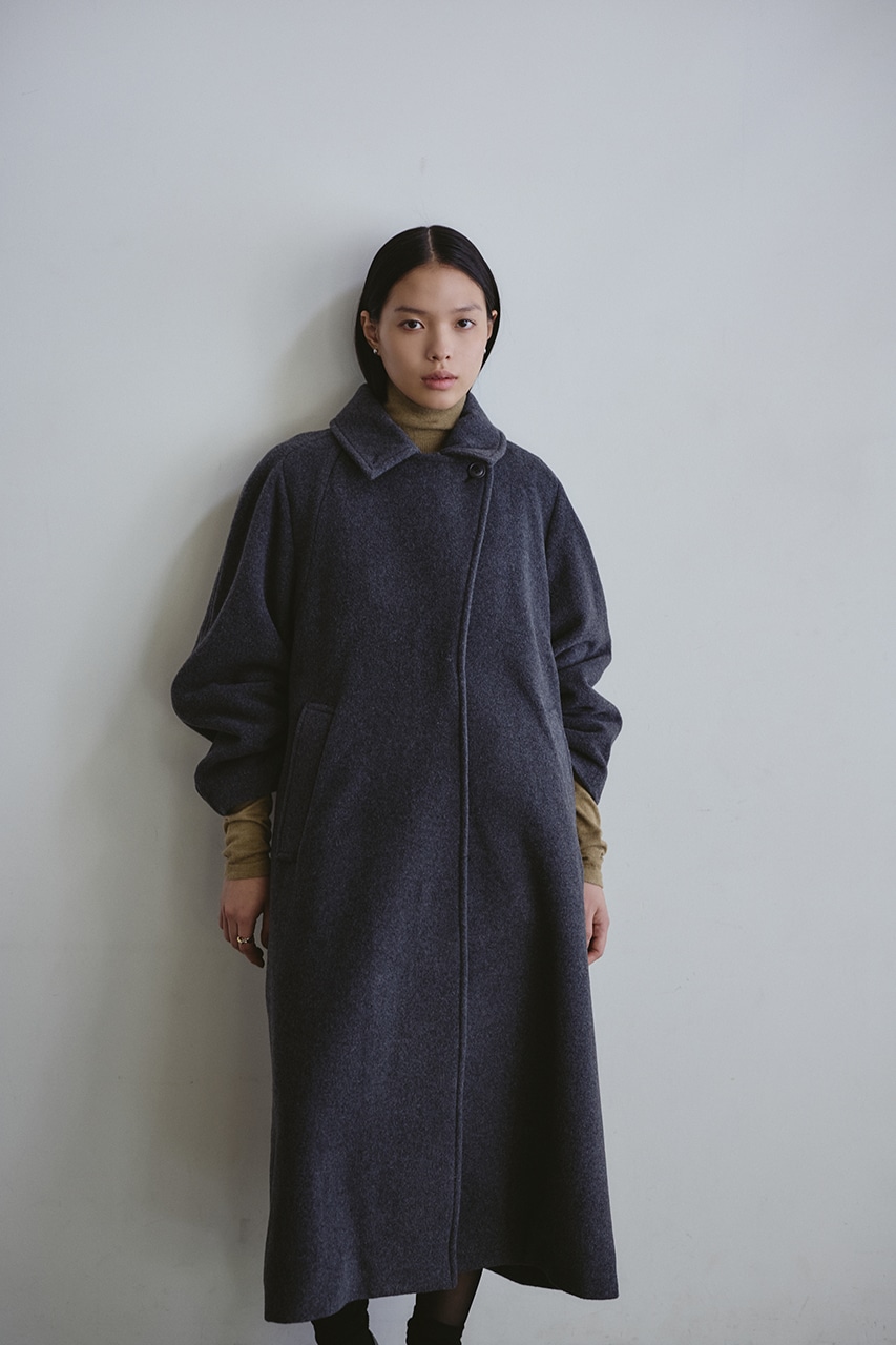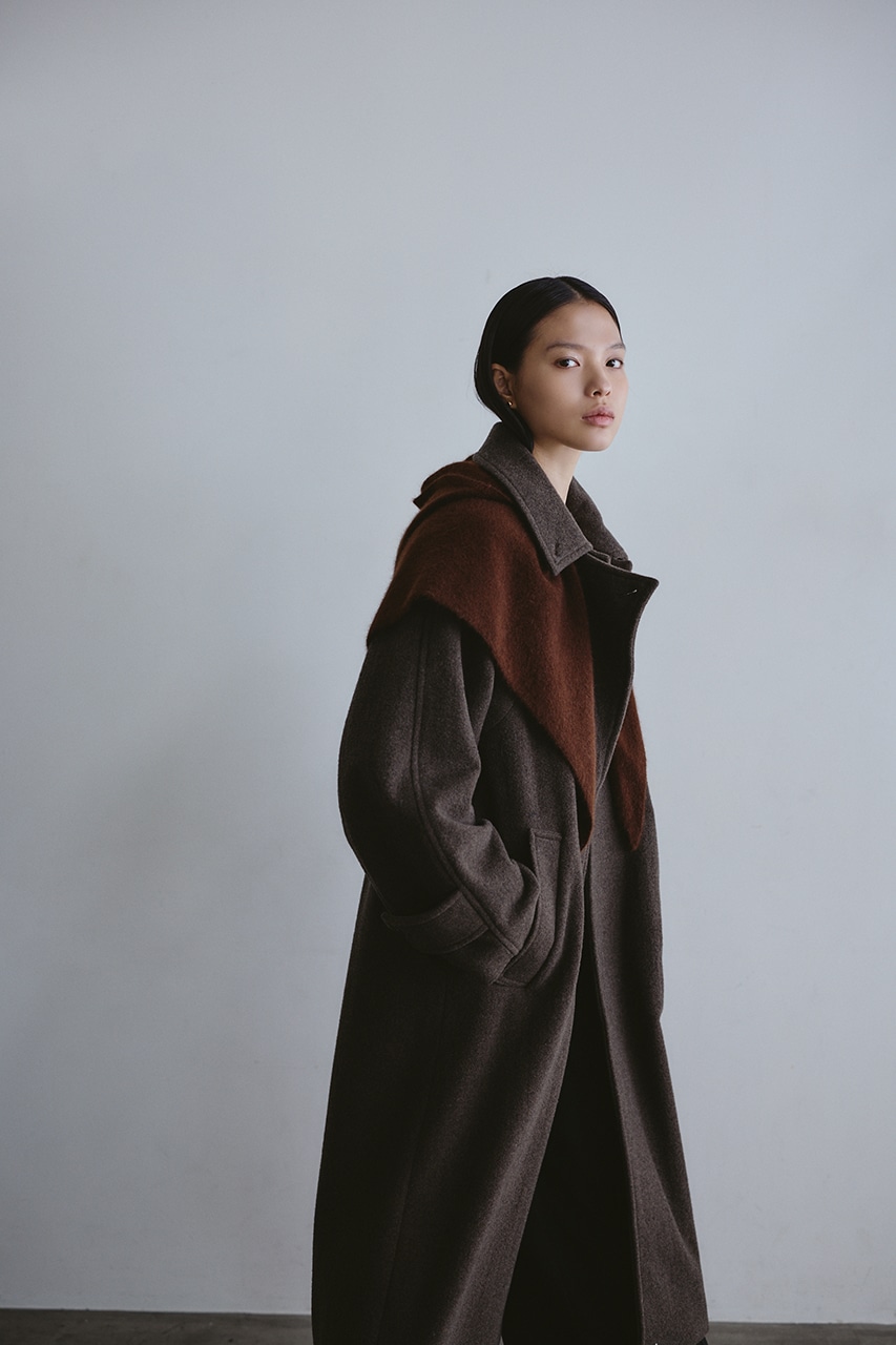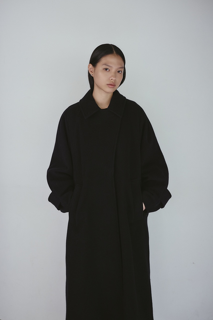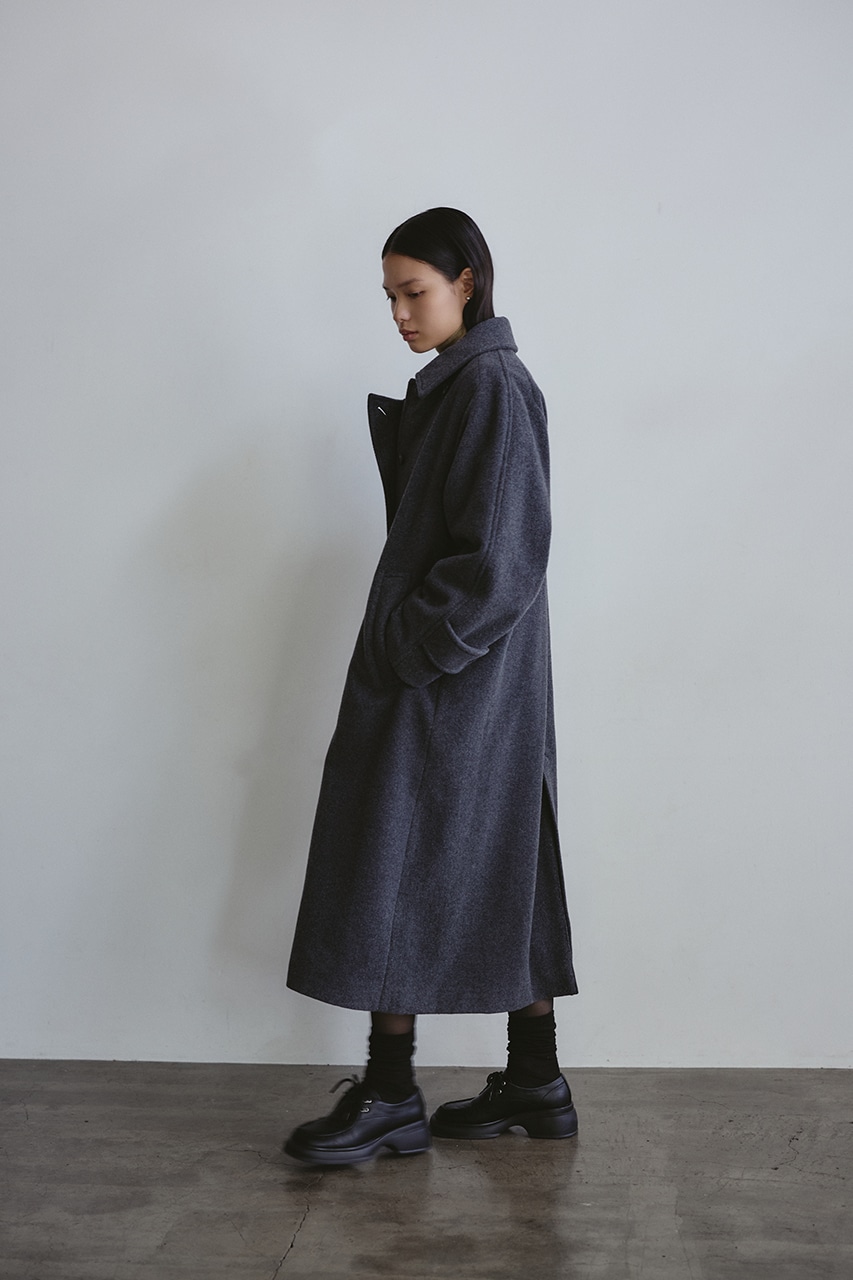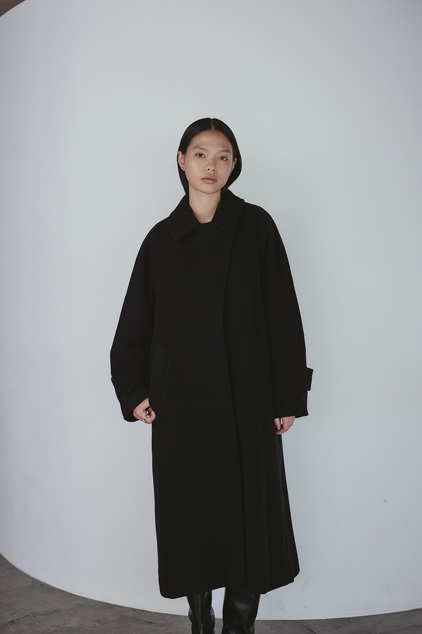 シンプルながらワンテクを入れたレイヤーカラーがデザインポイントのスタミキ人気のウールコート。ロング丈でモードにもカジュアルにも着回しやすい高見えする一枚です。透け感なし、ストレッチなし。