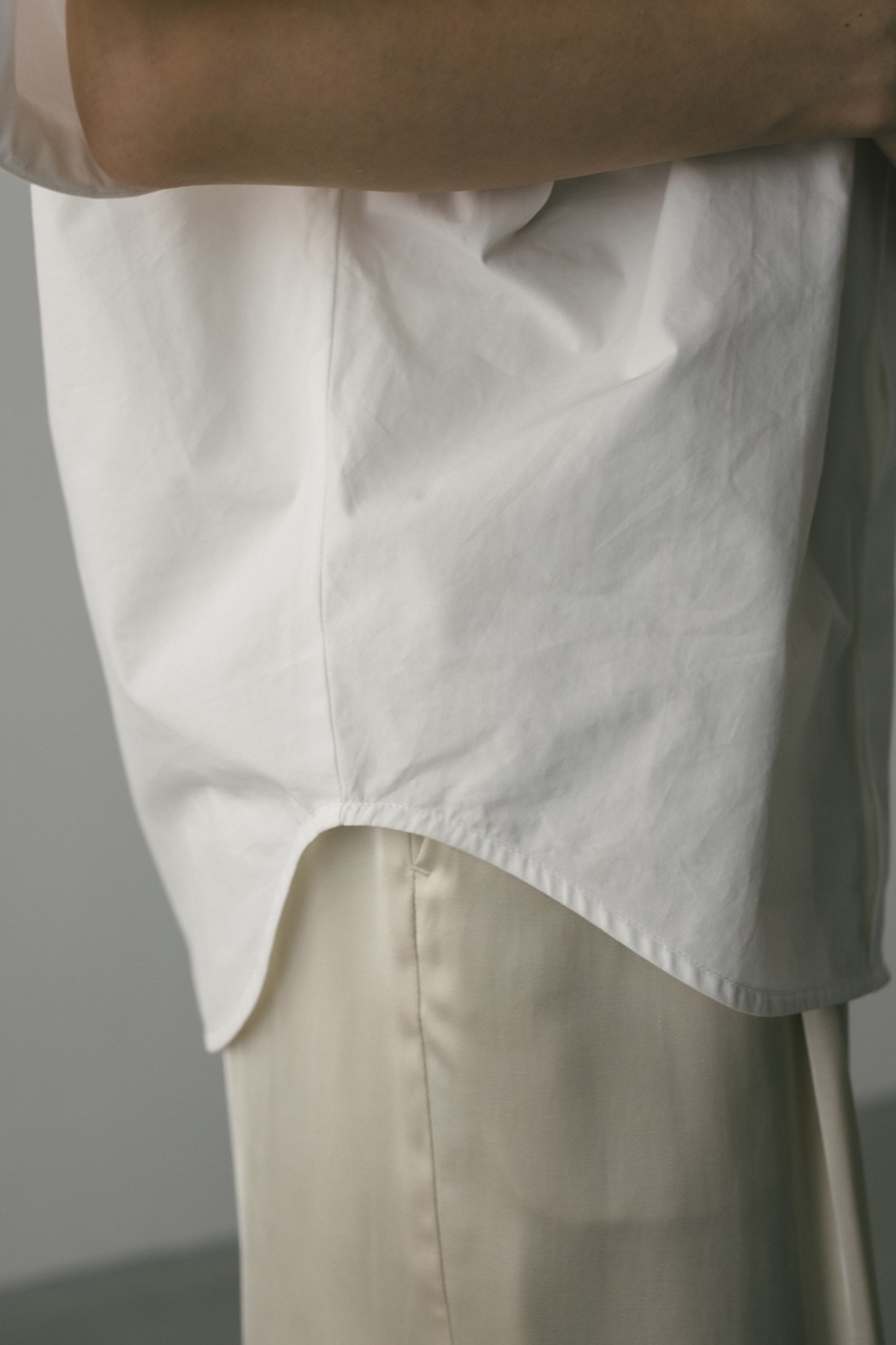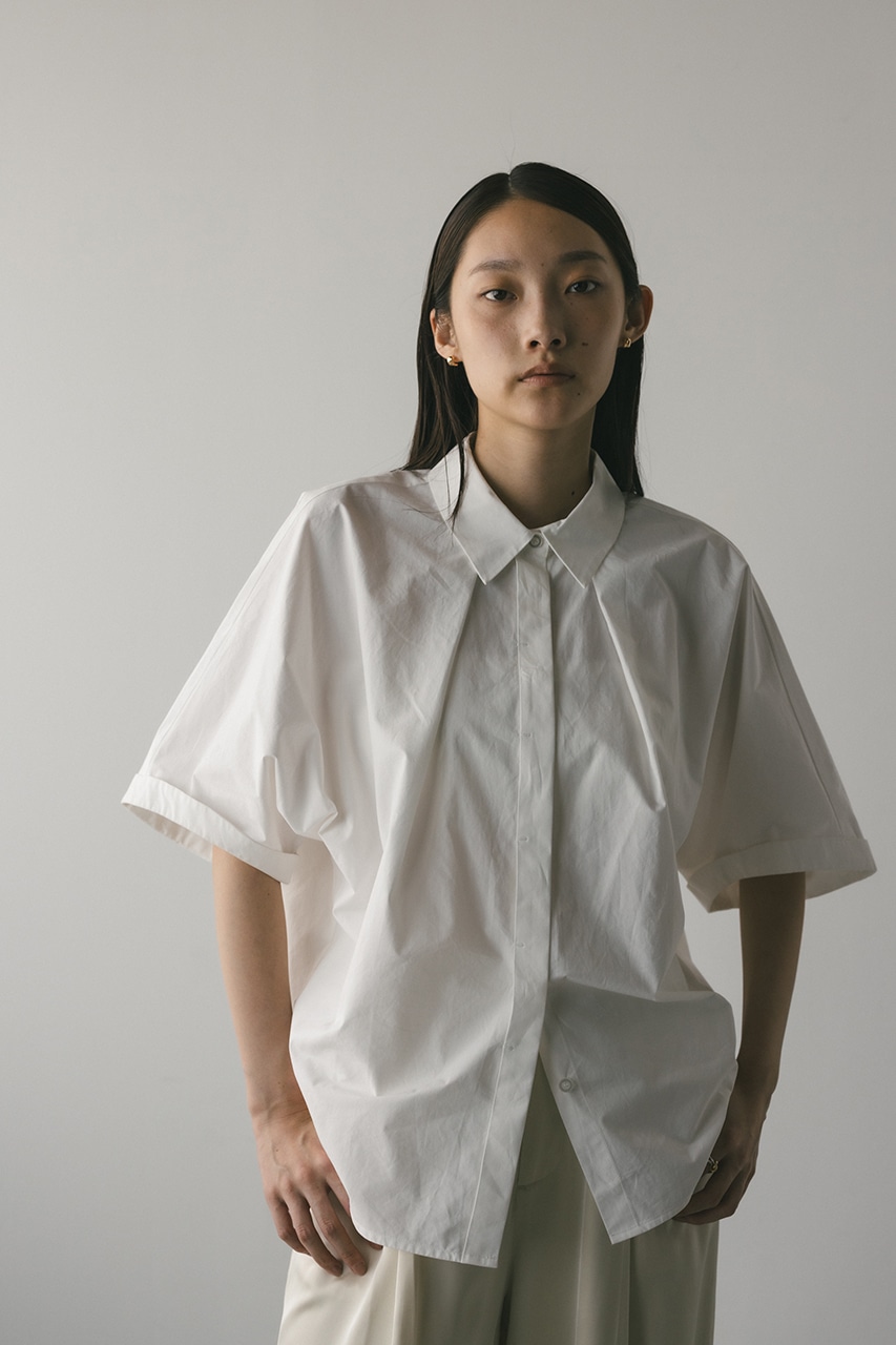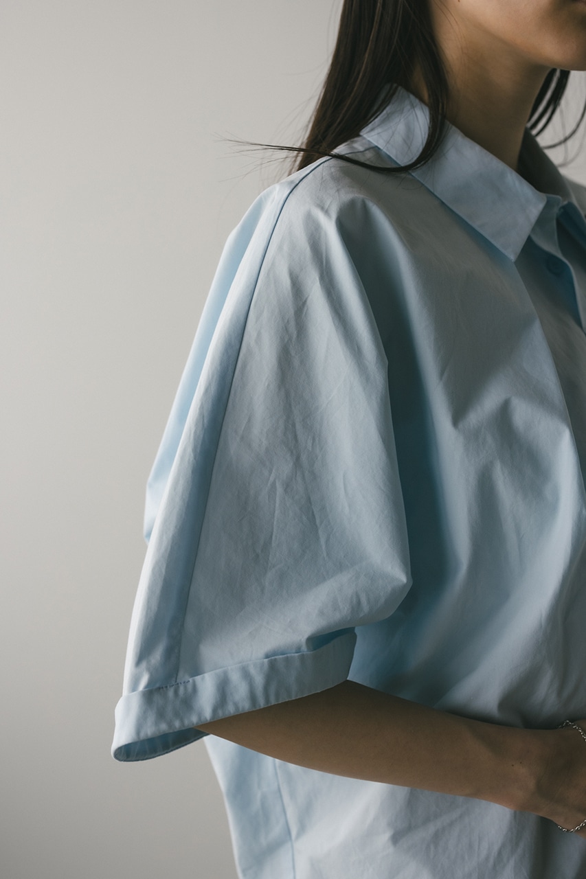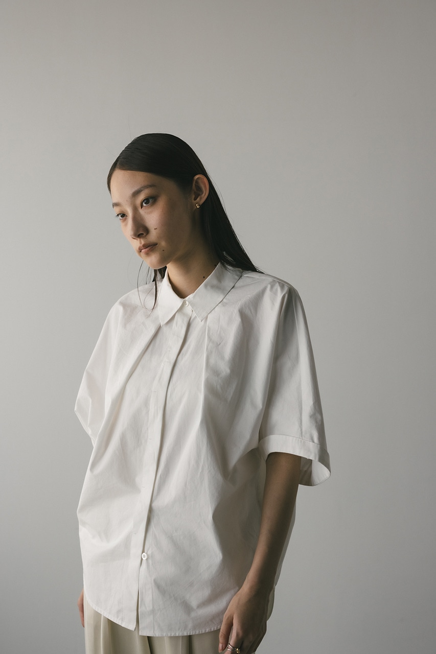 ドロップショルダーからゆったりとしたバストパターンがこなれ感のあるドルマンスリーブシャツ。ゆったりと身体からはなれるデザインで涼しく着用していただけます。スタイリングによって幅広いシーンで活躍してくれる一枚です。透け感WHTややあり、ストレッチなし。