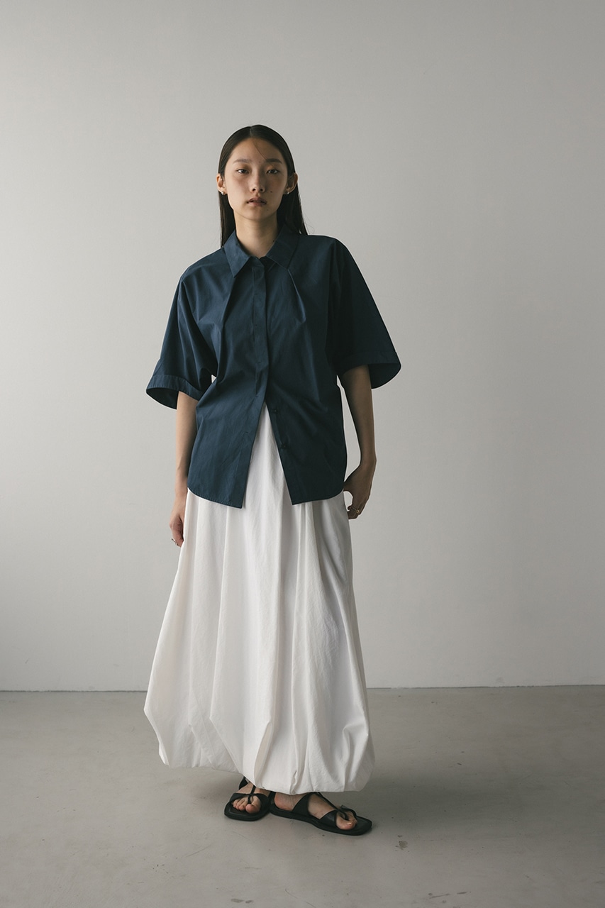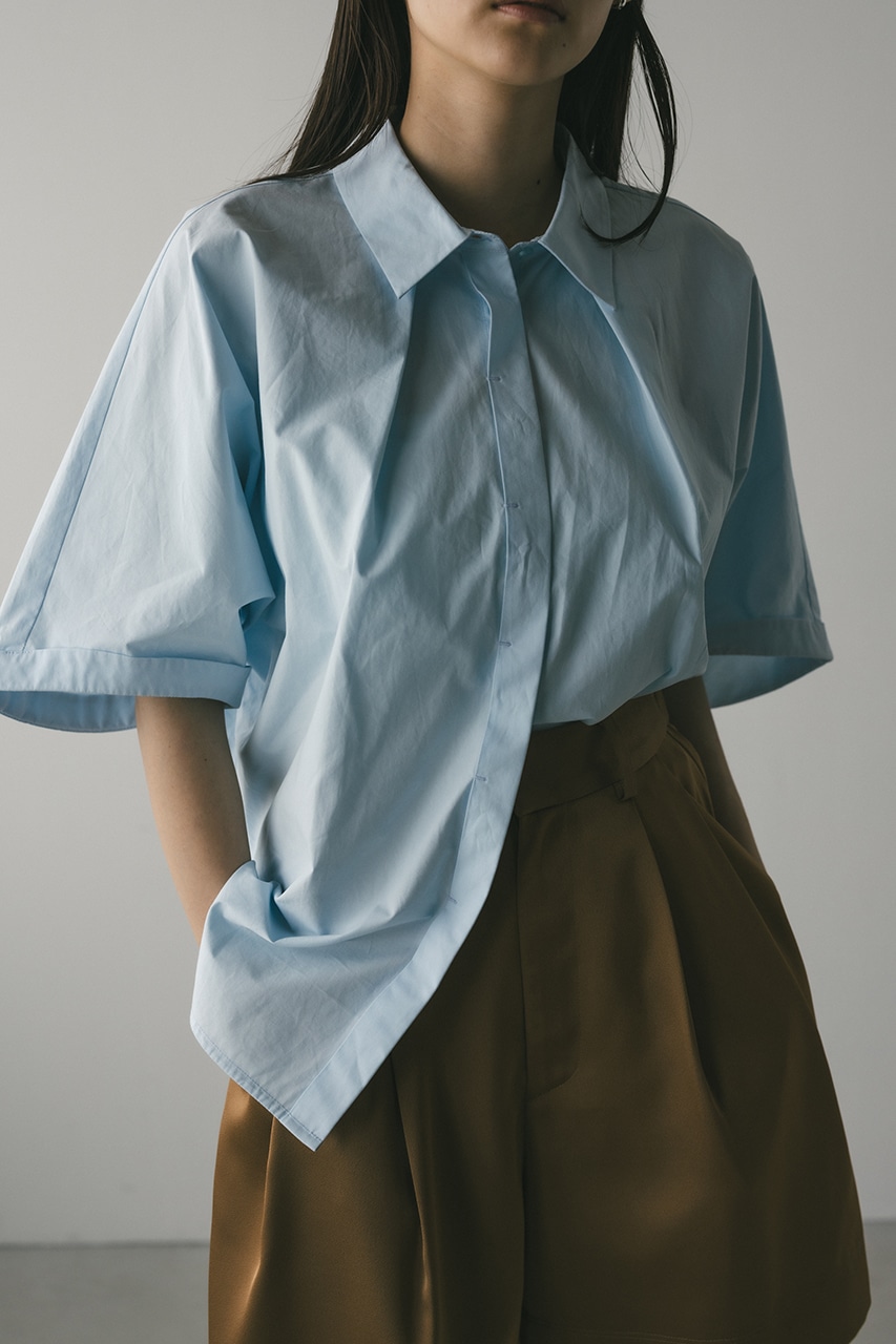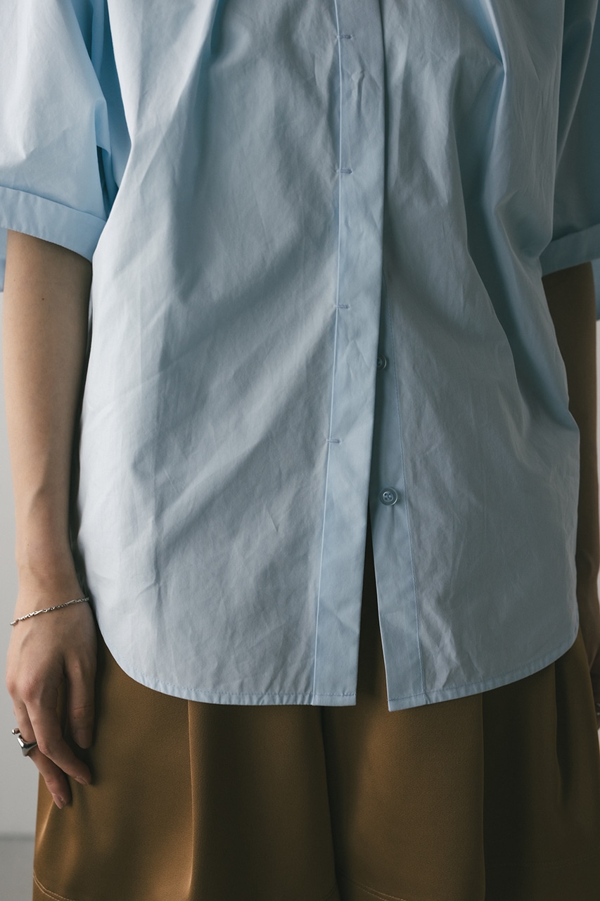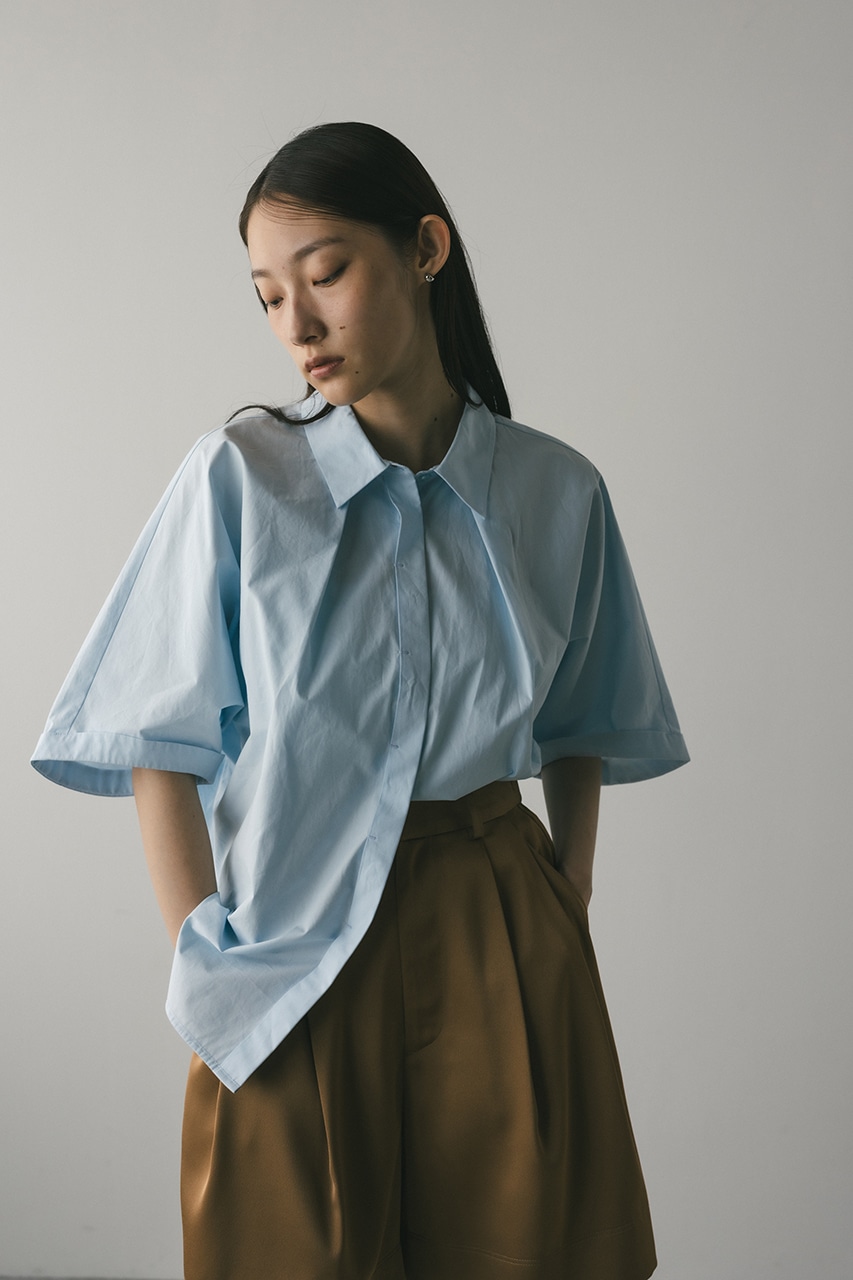 ドロップショルダーからゆったりとしたバストパターンがこなれ感のあるドルマンスリーブシャツ。ゆったりと身体からはなれるデザインで涼しく着用していただけます。スタイリングによって幅広いシーンで活躍してくれる一枚です。透け感WHTややあり、ストレッチなし。