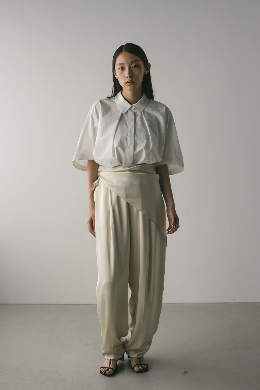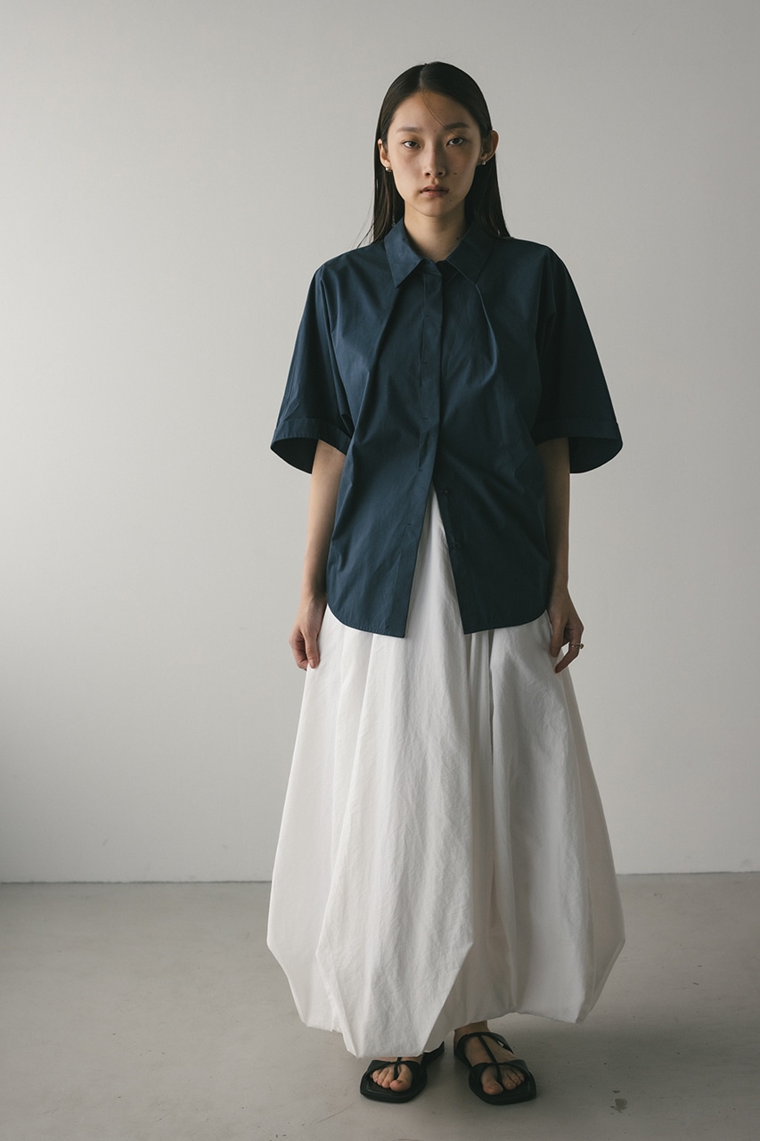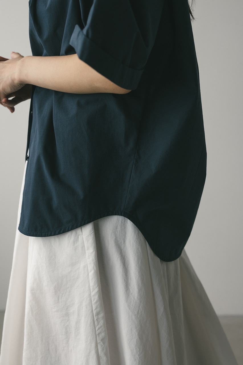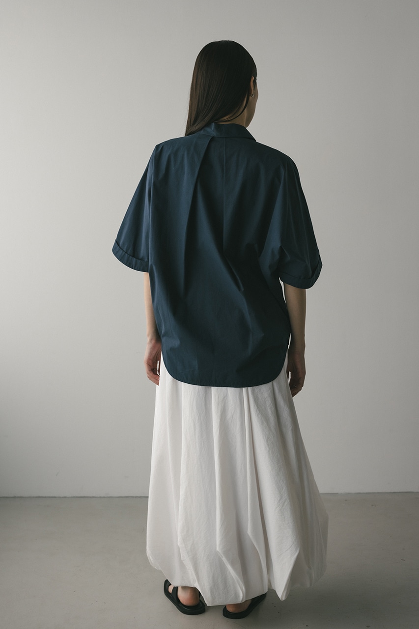 ドロップショルダーからゆったりとしたバストパターンがこなれ感のあるドルマンスリーブシャツ。ゆったりと身体からはなれるデザインで涼しく着用していただけます。スタイリングによって幅広いシーンで活躍してくれる一枚です。透け感WHTややあり、ストレッチなし。