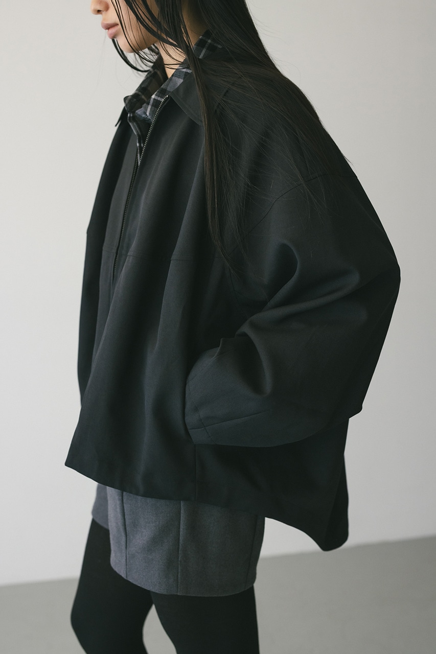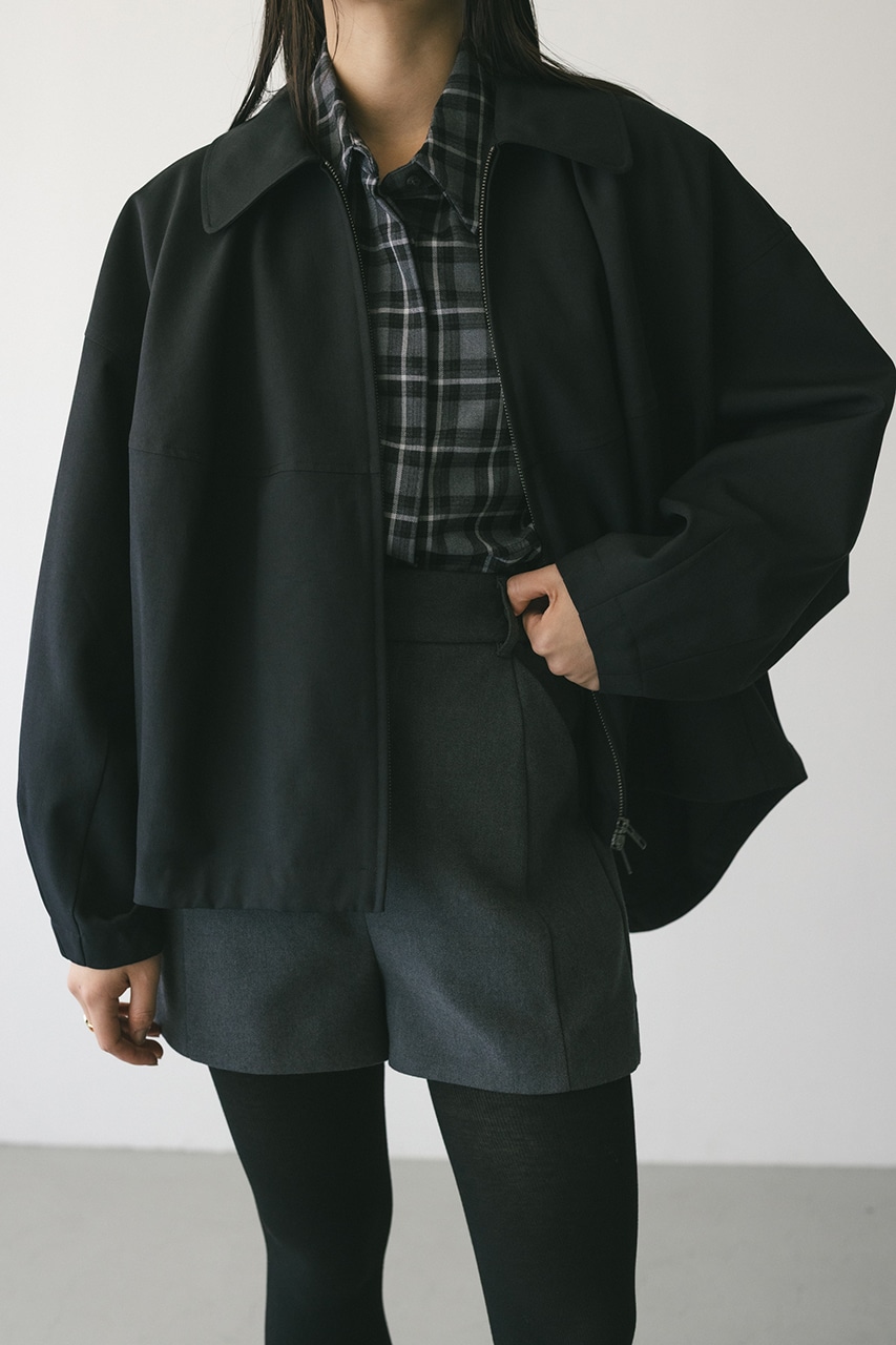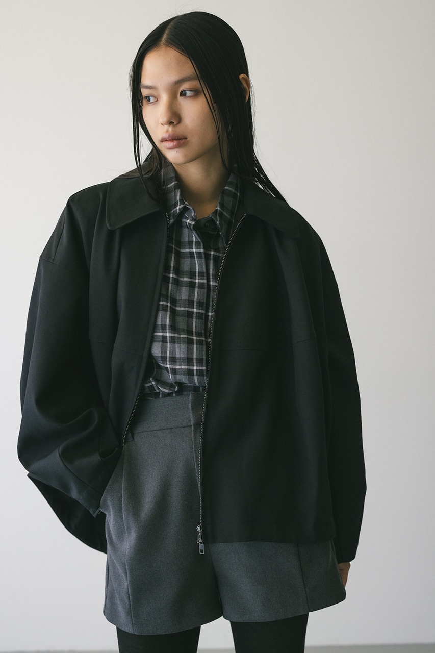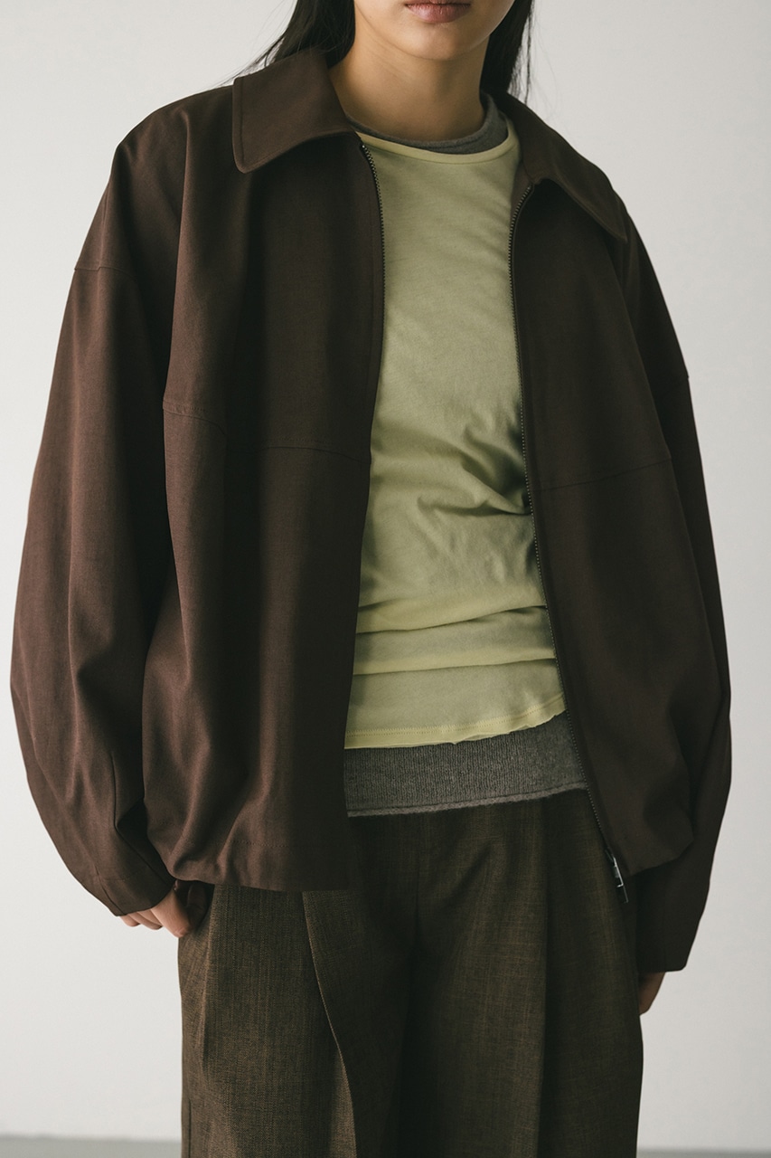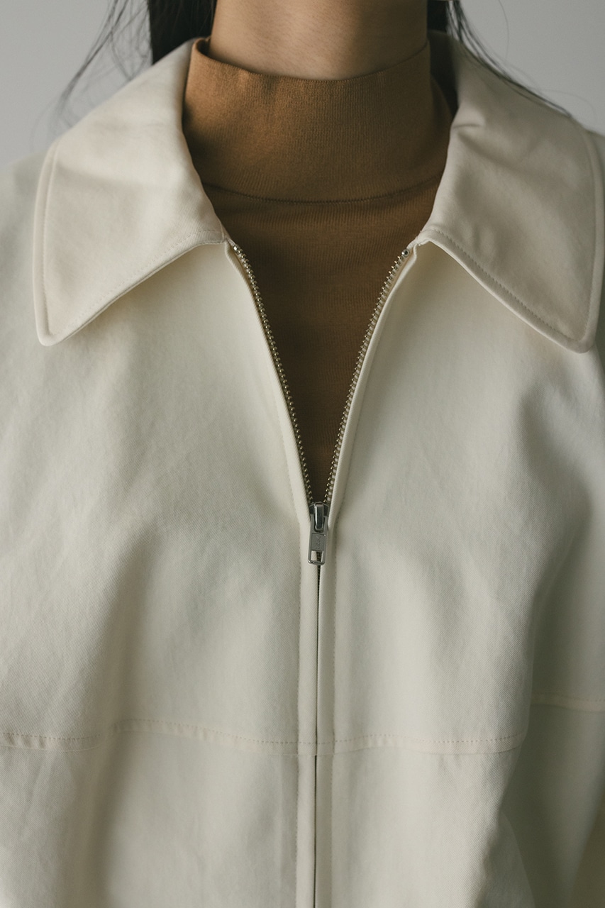 小顔見えする抜け感あるビッグカラーがポイントのカーブフォルムブルゾン。カジュアルにも綺麗めにもはまる凹凸感のある高見え素材を使用。ドライな質感でロングシーズン着用頂けます。スタイリング幅の広がる逆開ファスナー仕様。ストレッチなし、透け感なし。