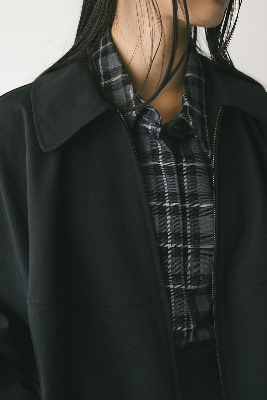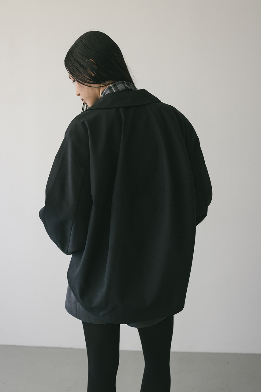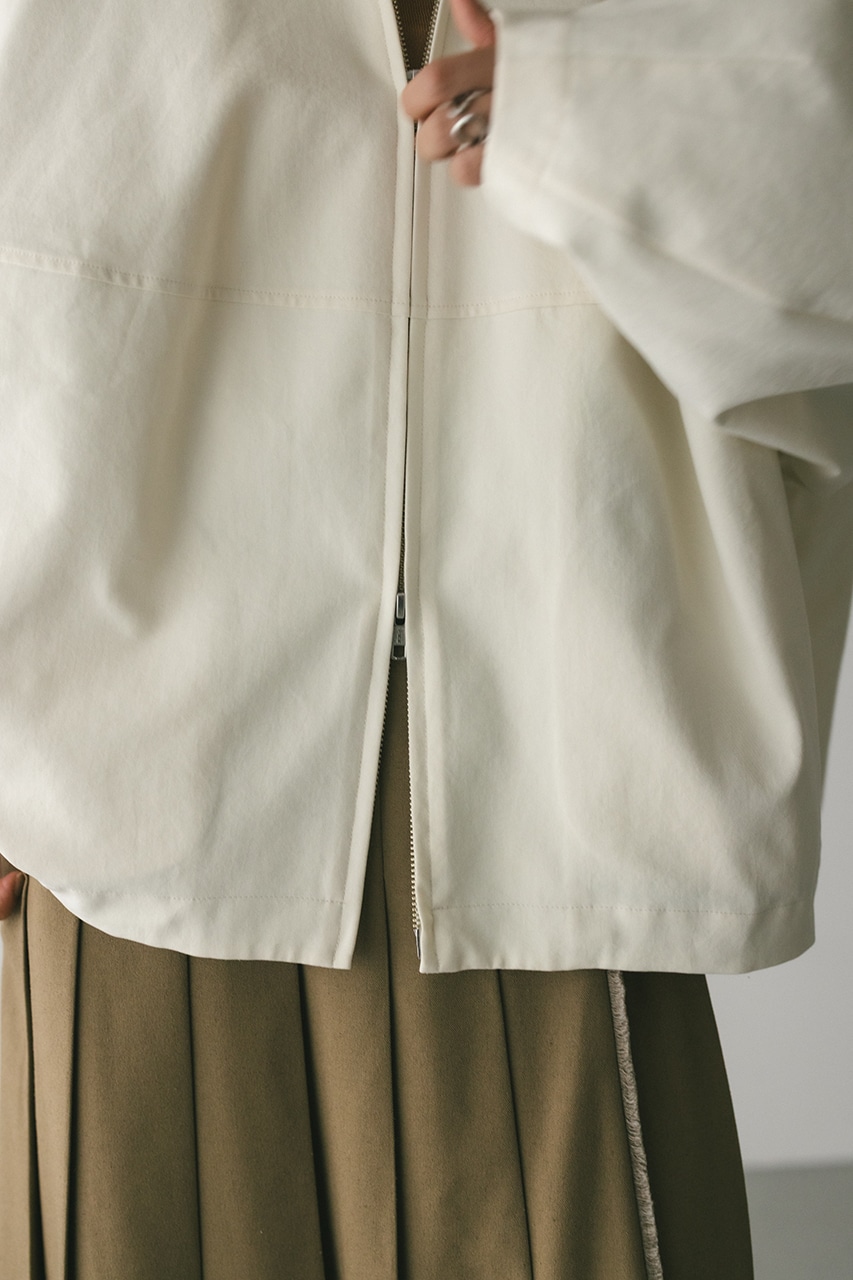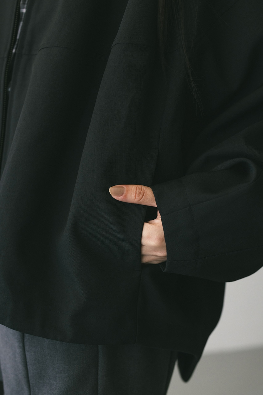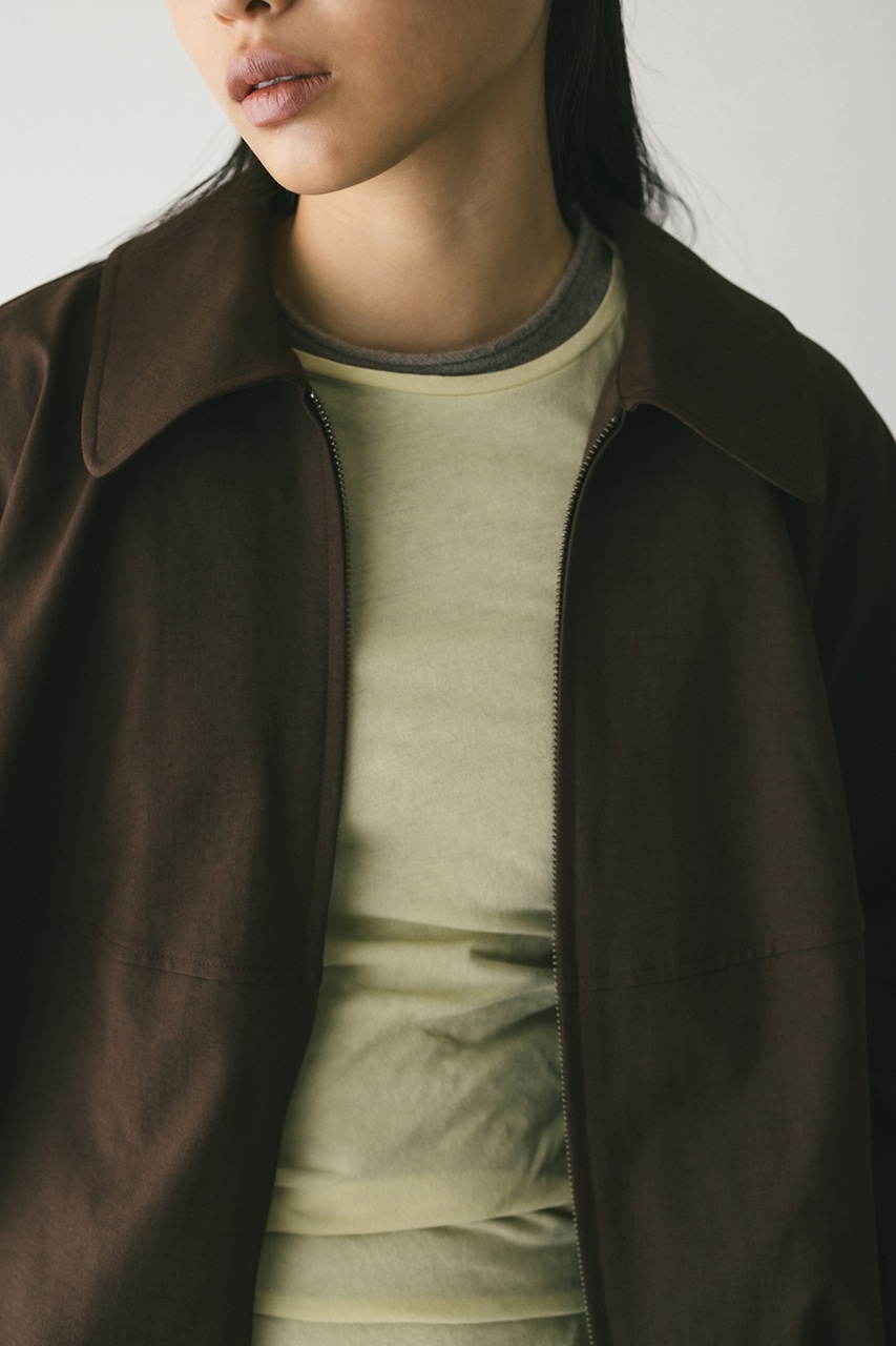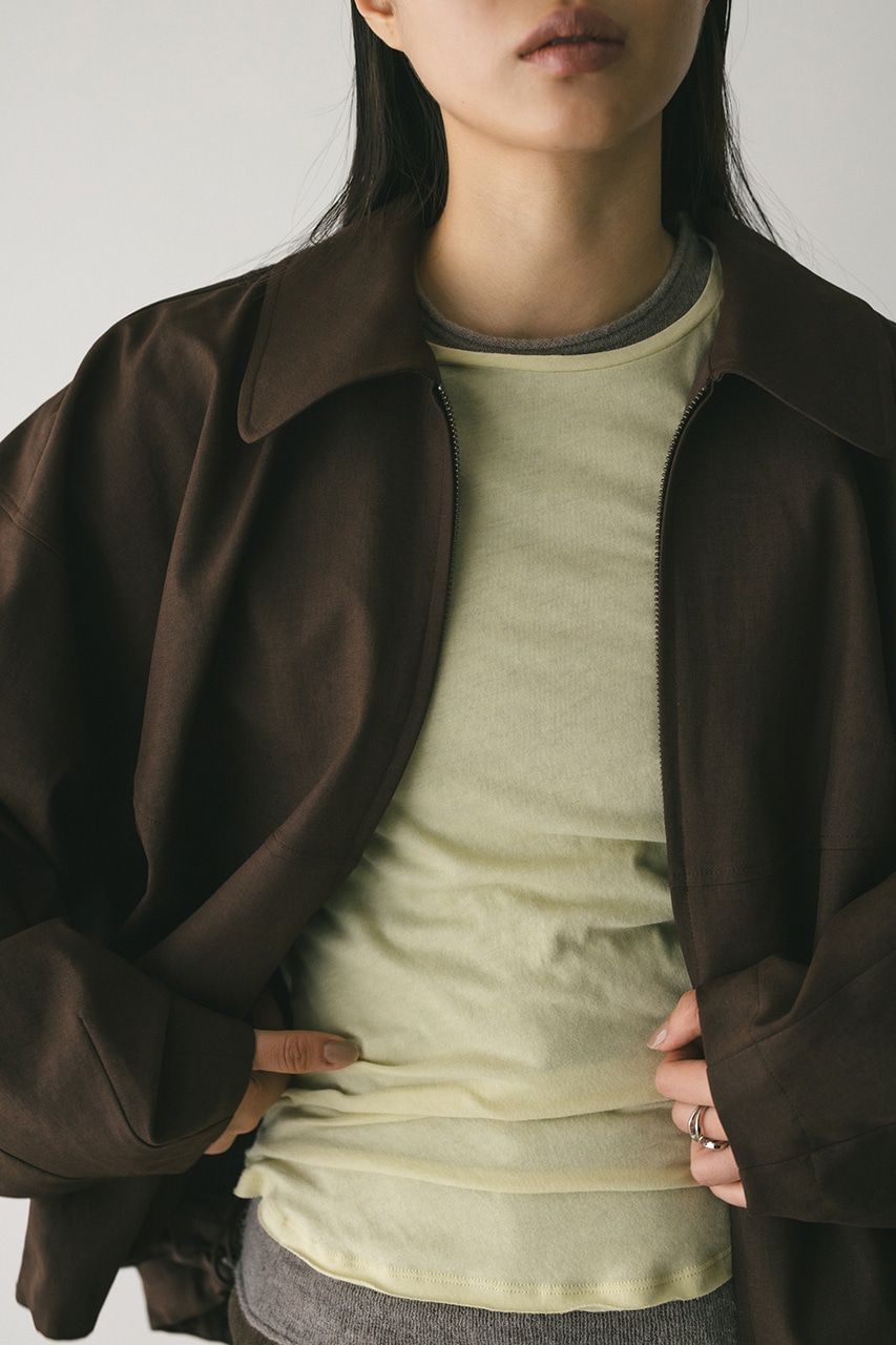 小顔見えする抜け感あるビッグカラーがポイントのカーブフォルムブルゾン。カジュアルにも綺麗めにもはまる凹凸感のある高見え素材を使用。ドライな質感でロングシーズン着用頂けます。スタイリング幅の広がる逆開ファスナー仕様。ストレッチなし、透け感なし。