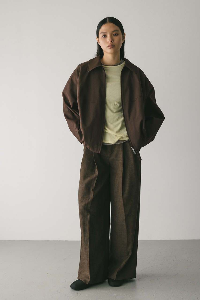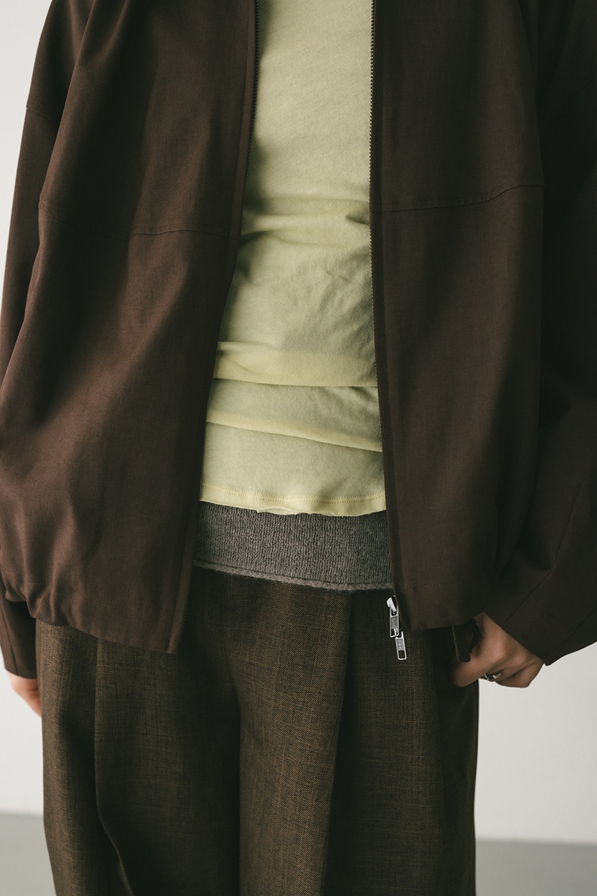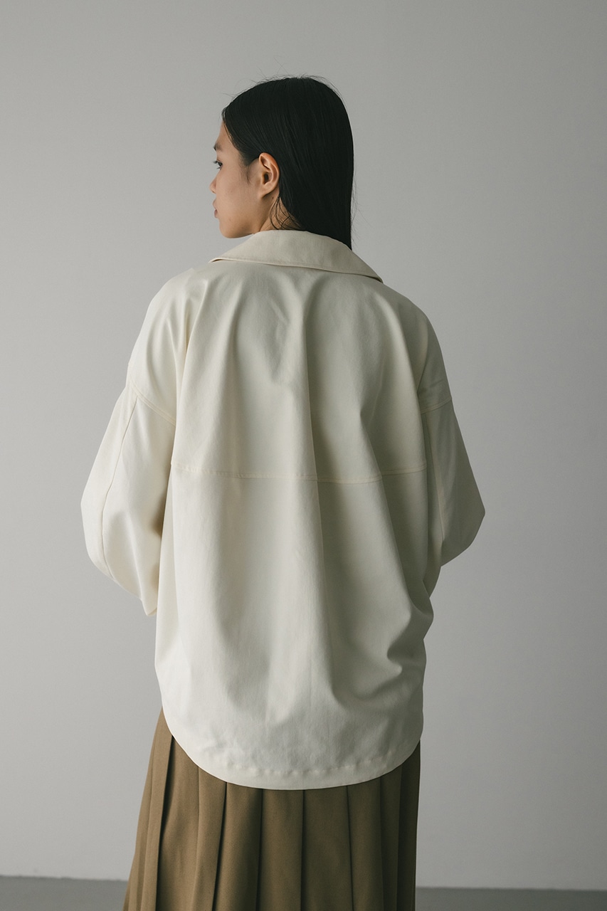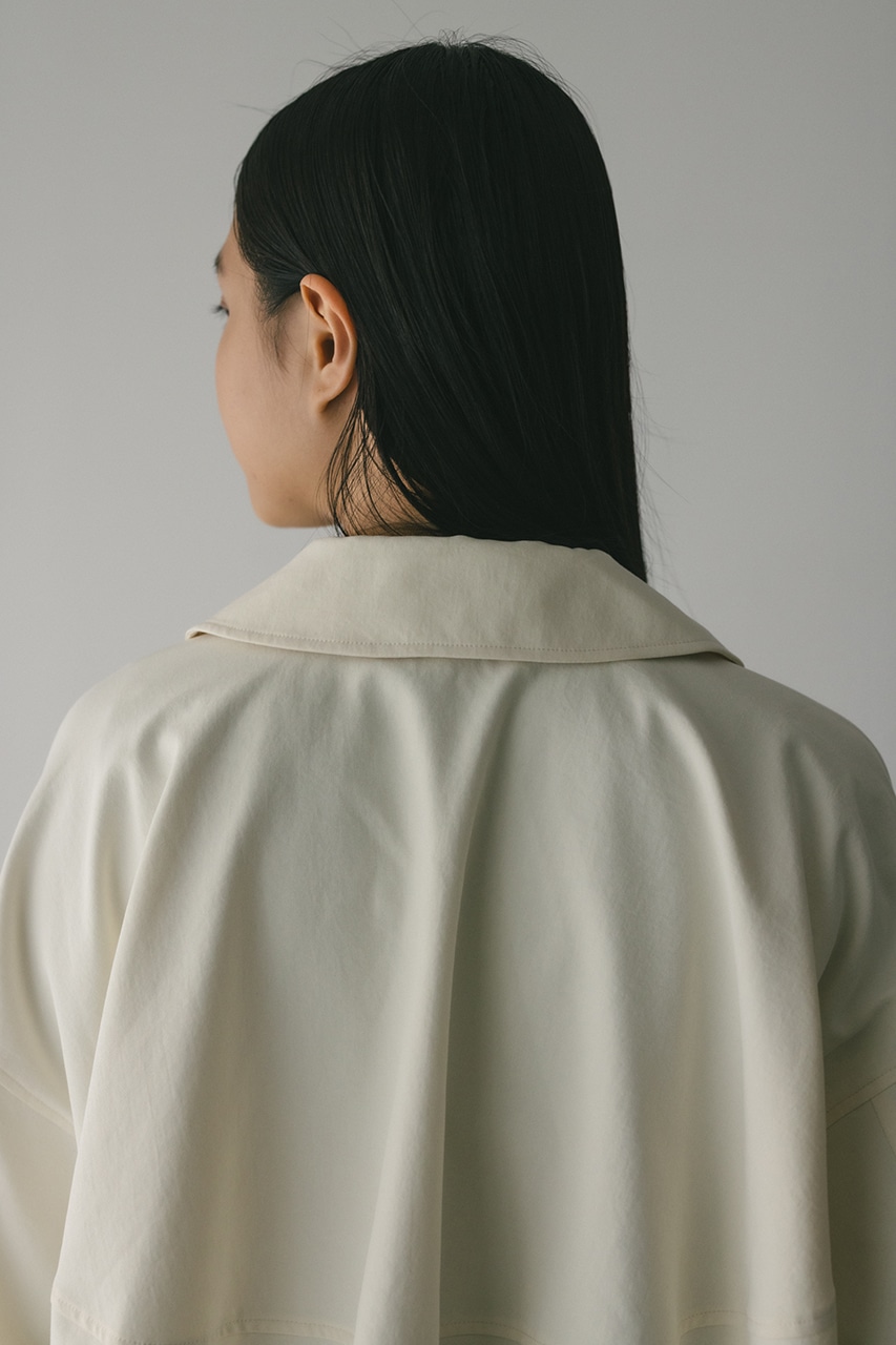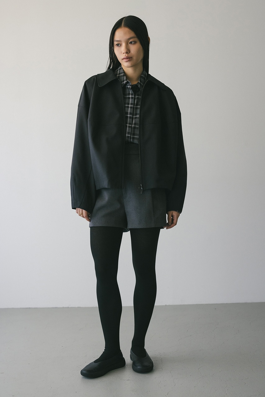小顔見えする抜け感あるビッグカラーがポイントのカーブフォルムブルゾン。カジュアルにも綺麗めにもはまる凹凸感のある高見え素材を使用。ドライな質感でロングシーズン着用頂けます。スタイリング幅の広がる逆開ファスナー仕様。ストレッチなし、透け感なし。