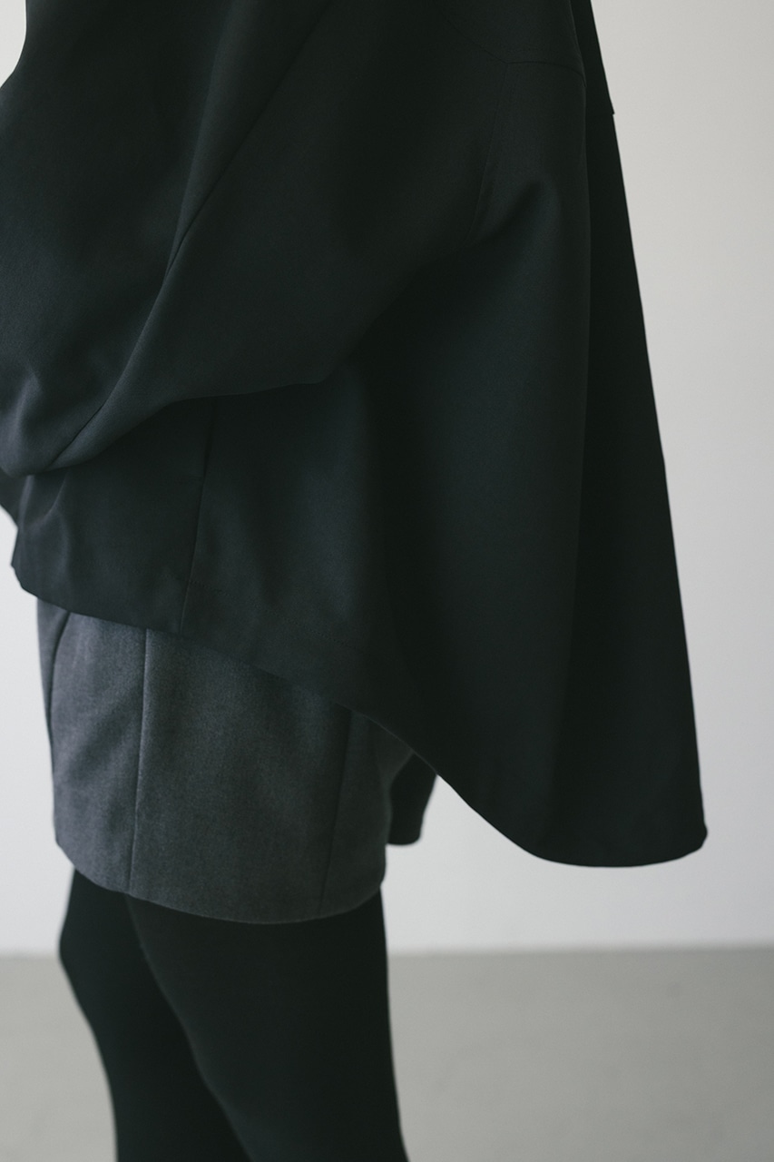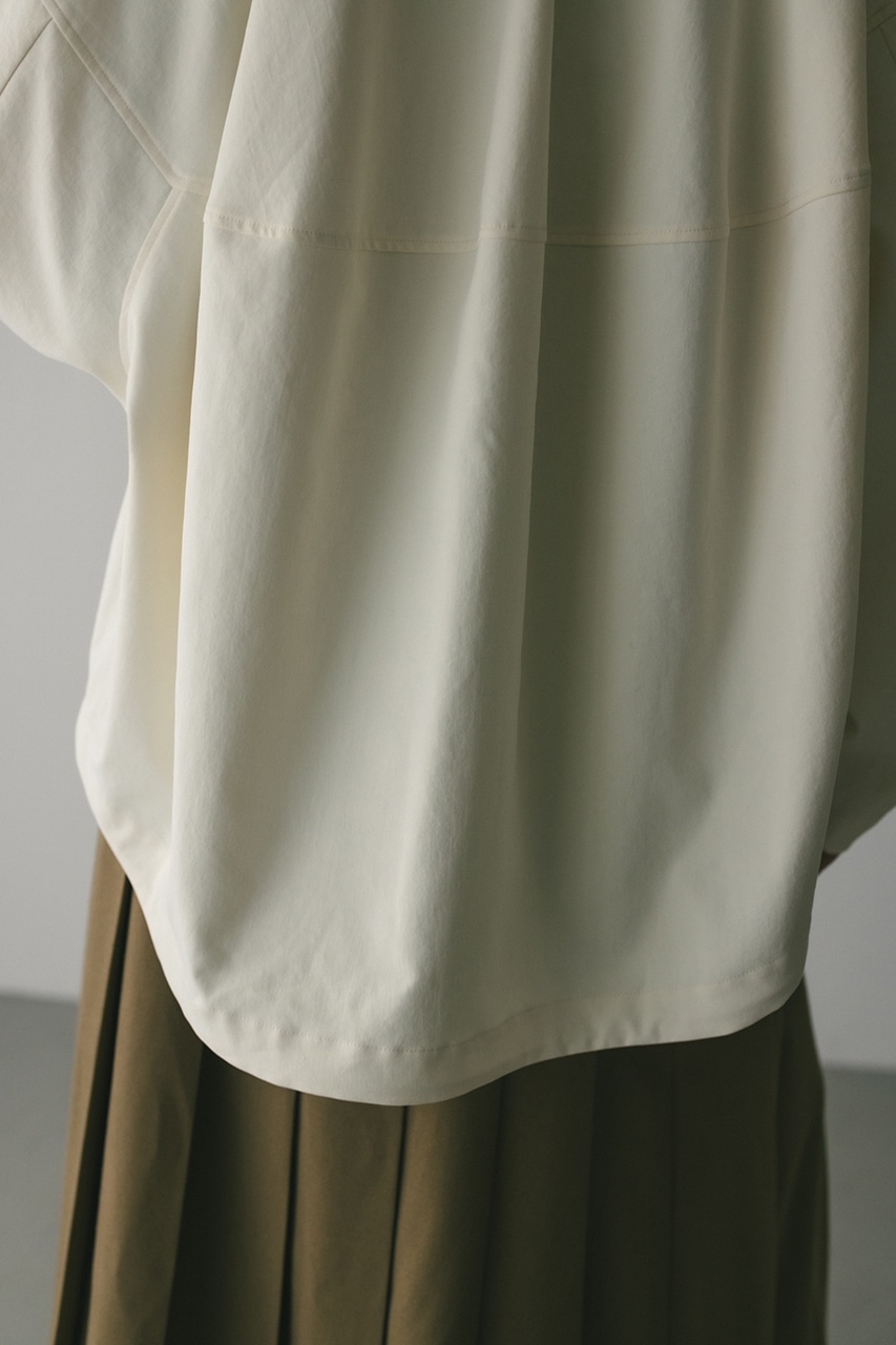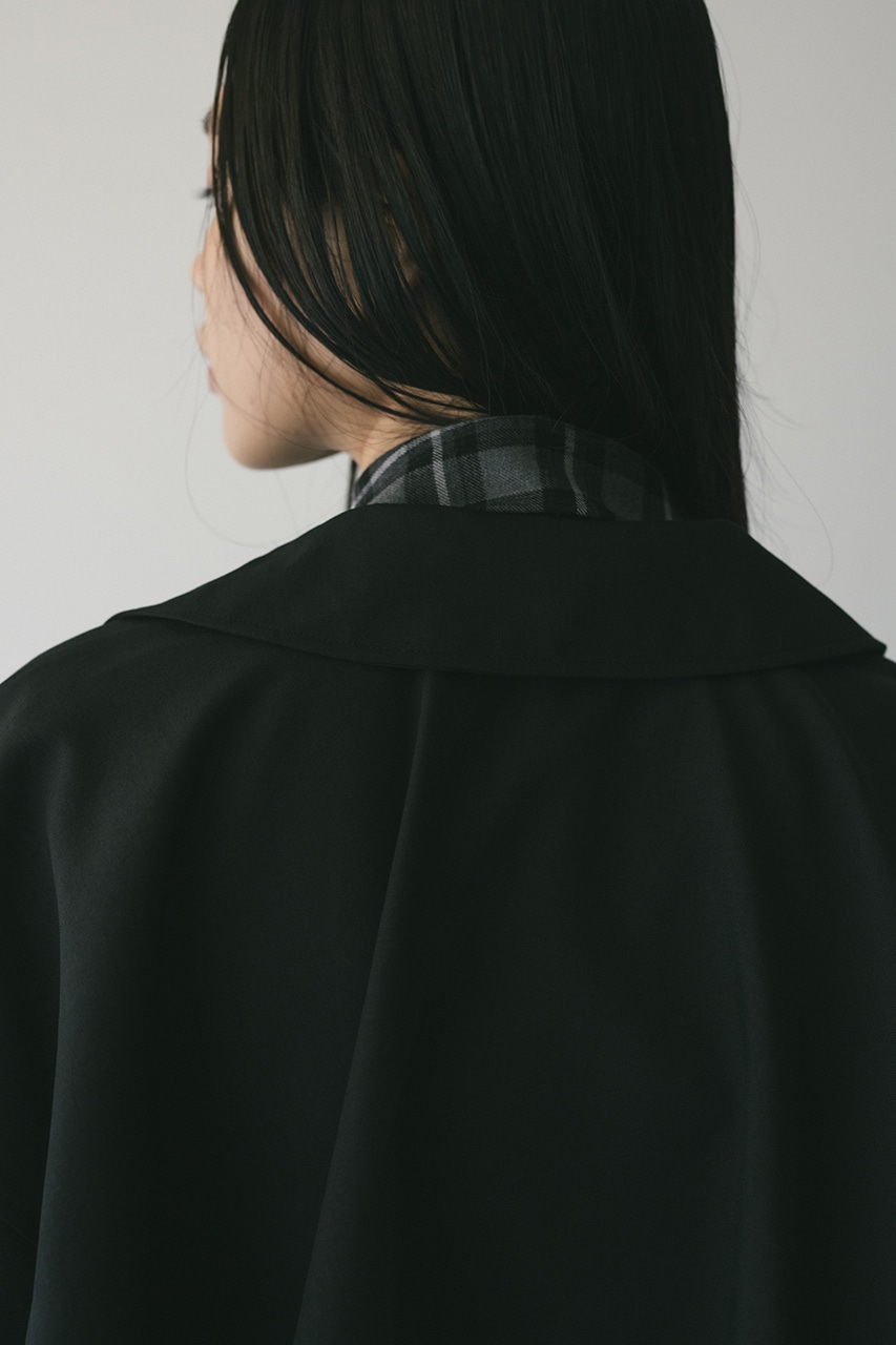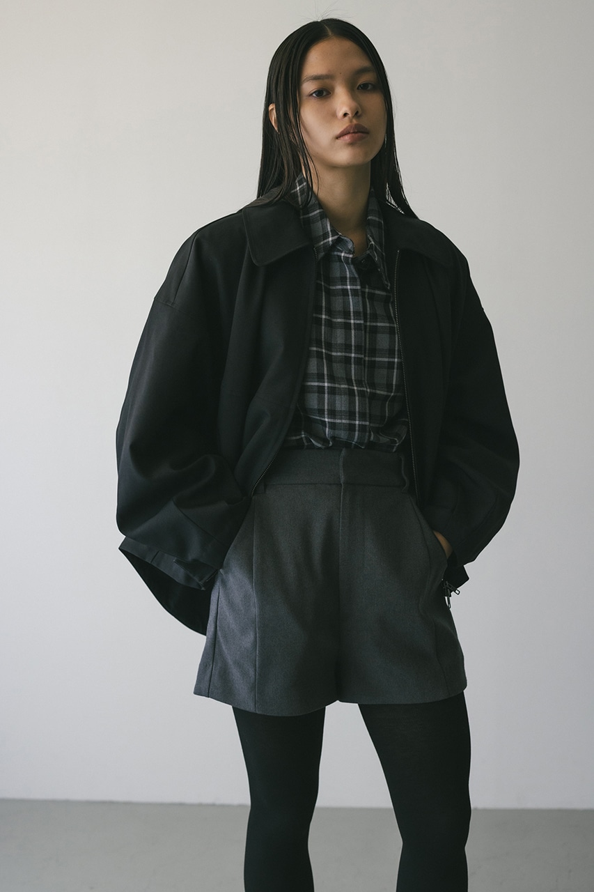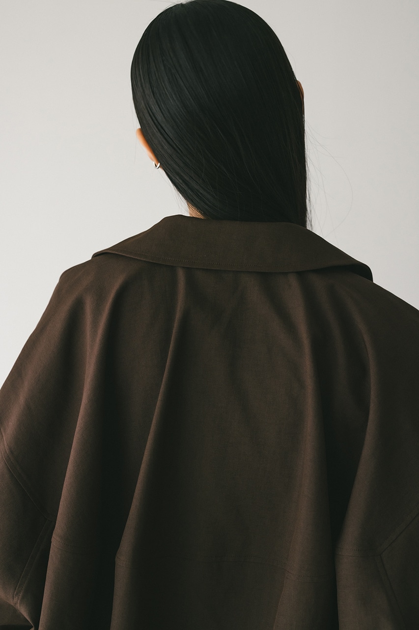 小顔見えする抜け感あるビッグカラーがポイントのカーブフォルムブルゾン。カジュアルにも綺麗めにもはまる凹凸感のある高見え素材を使用。ドライな質感でロングシーズン着用頂けます。スタイリング幅の広がる逆開ファスナー仕様。ストレッチなし、透け感なし。