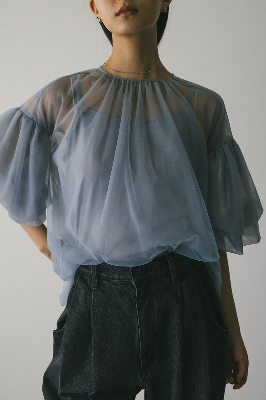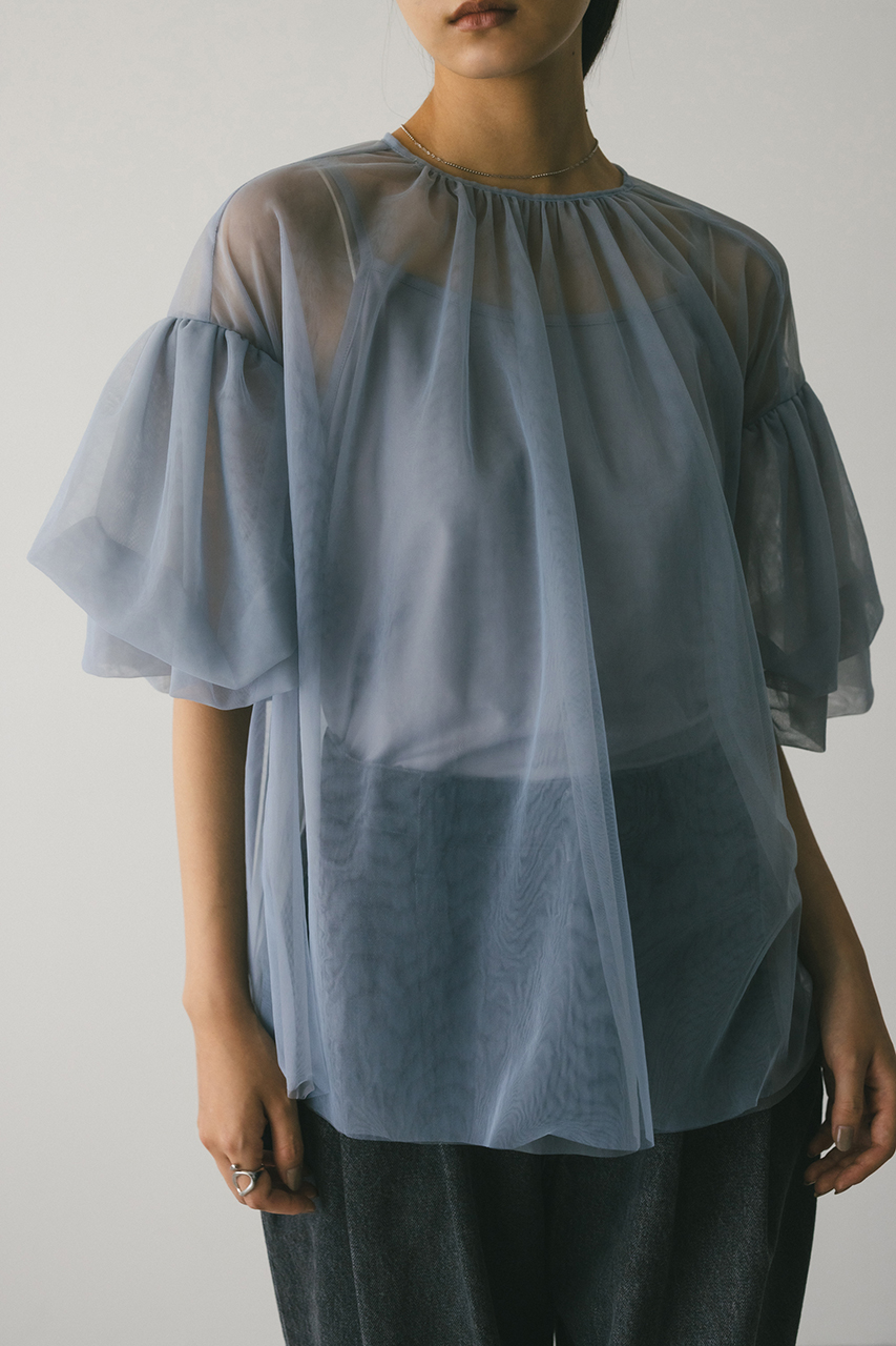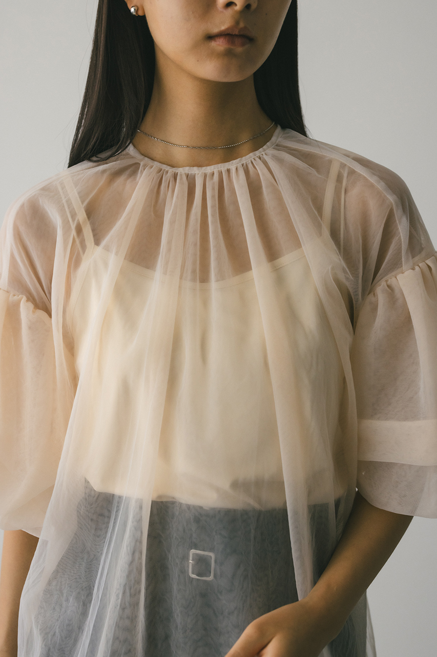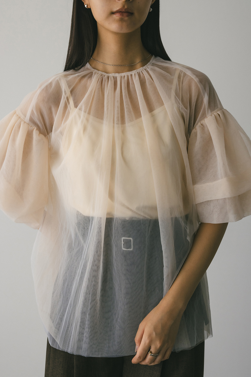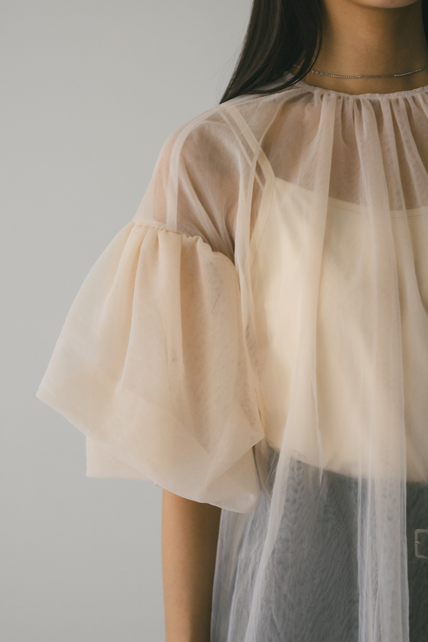 ギャザースリーブチュールトップ