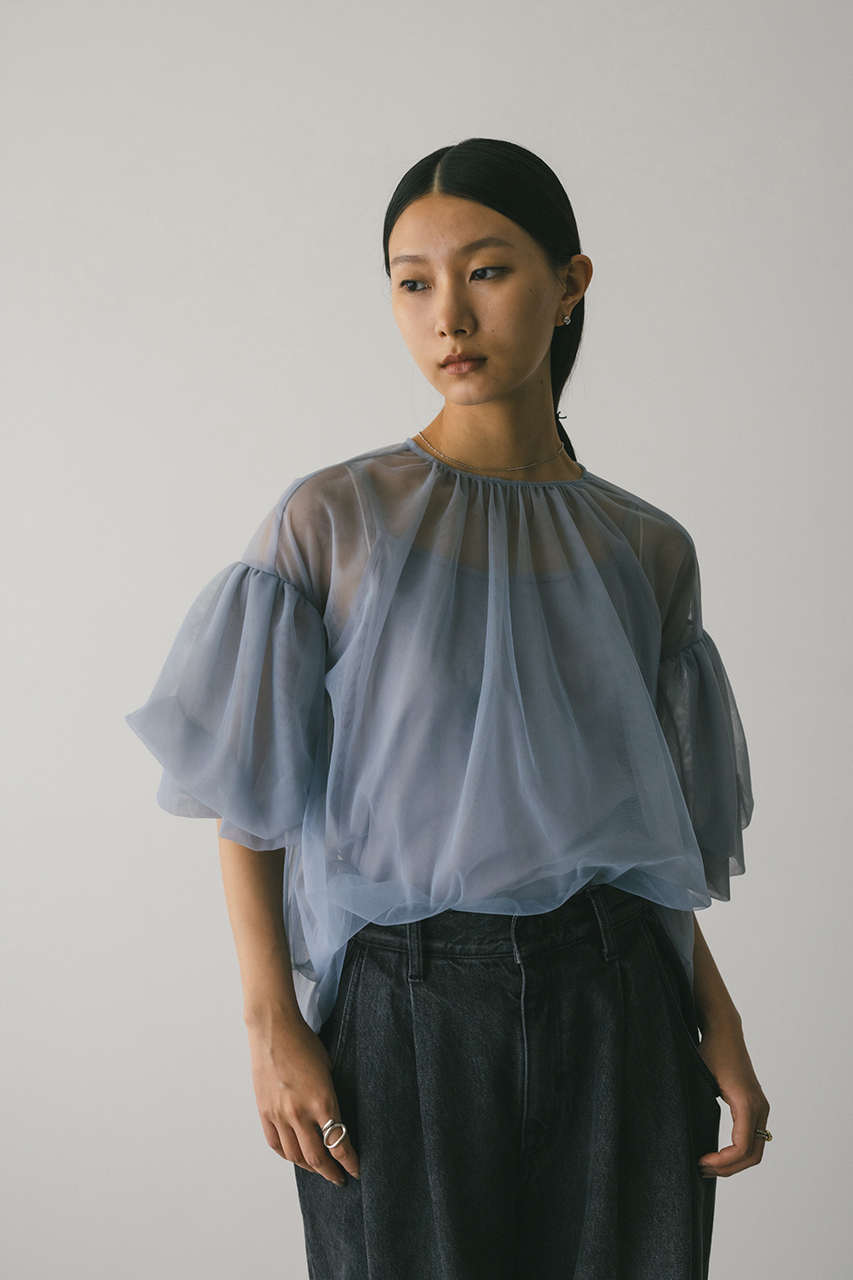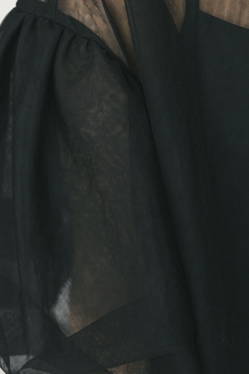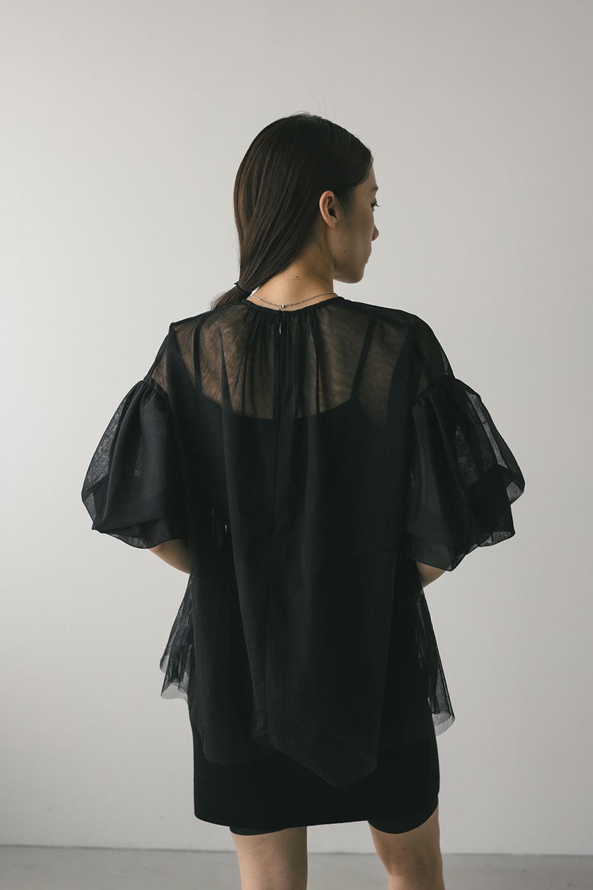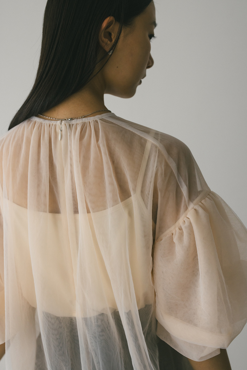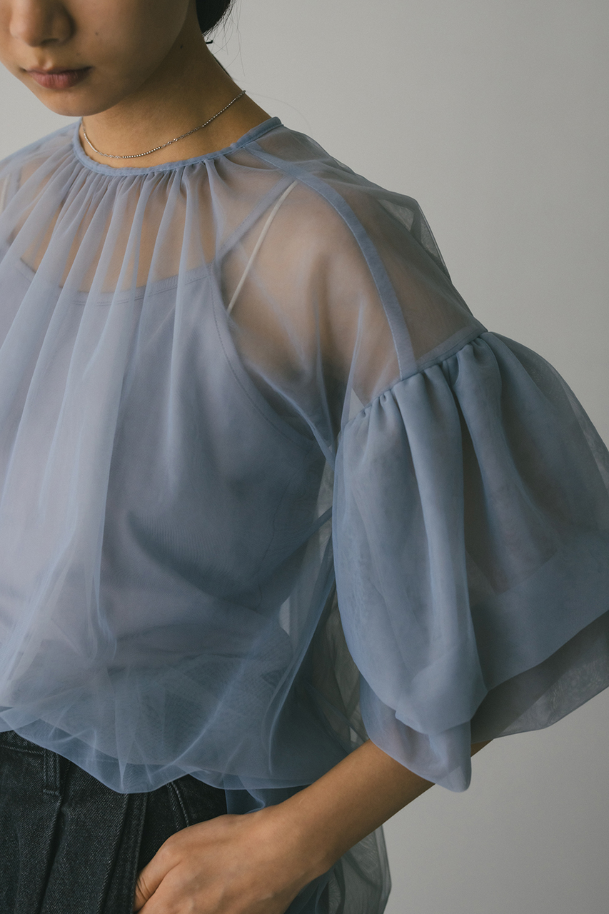 ギャザースリーブチュールトップ