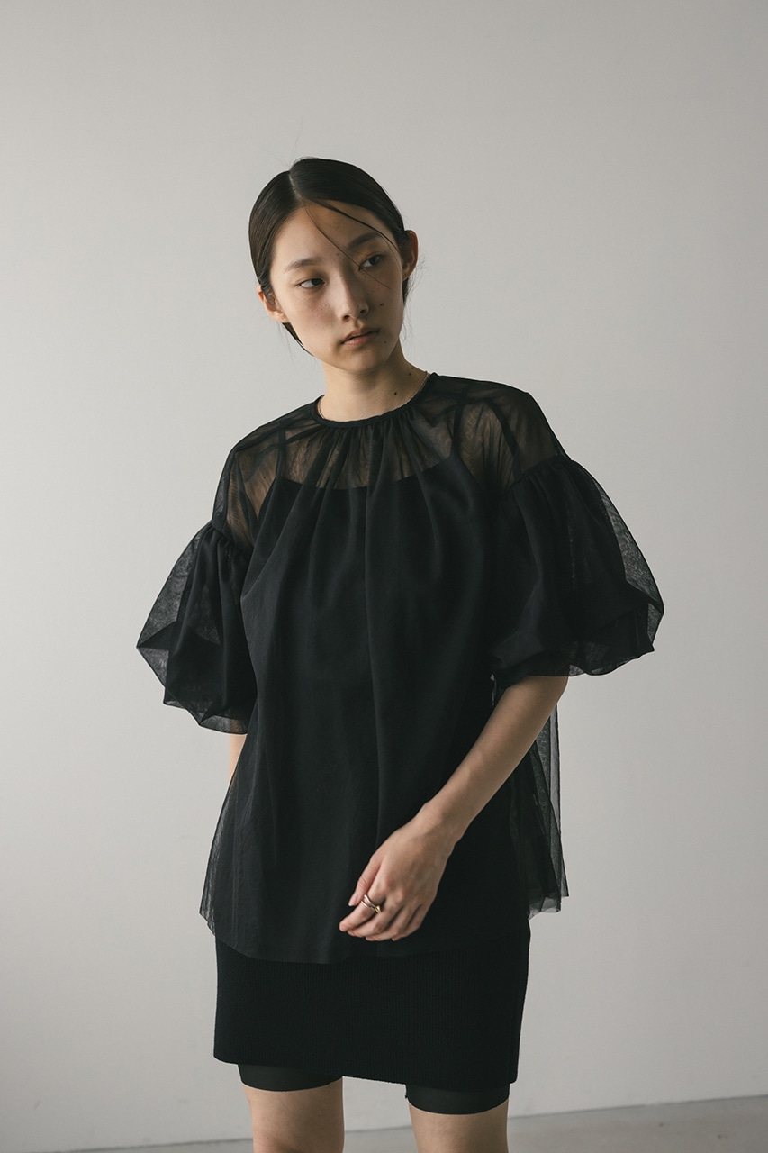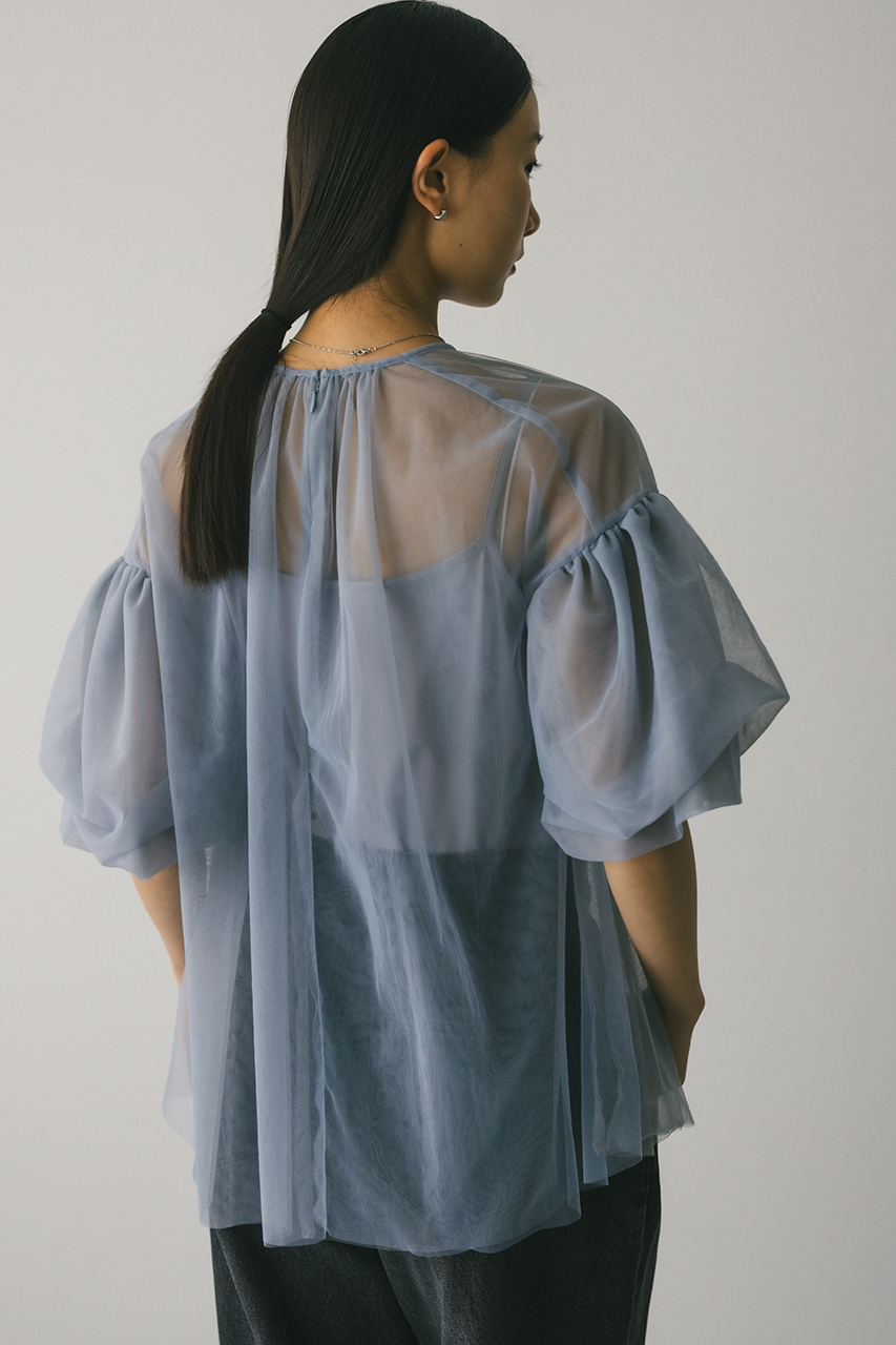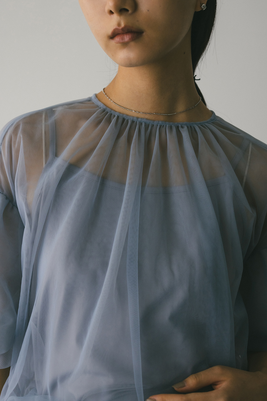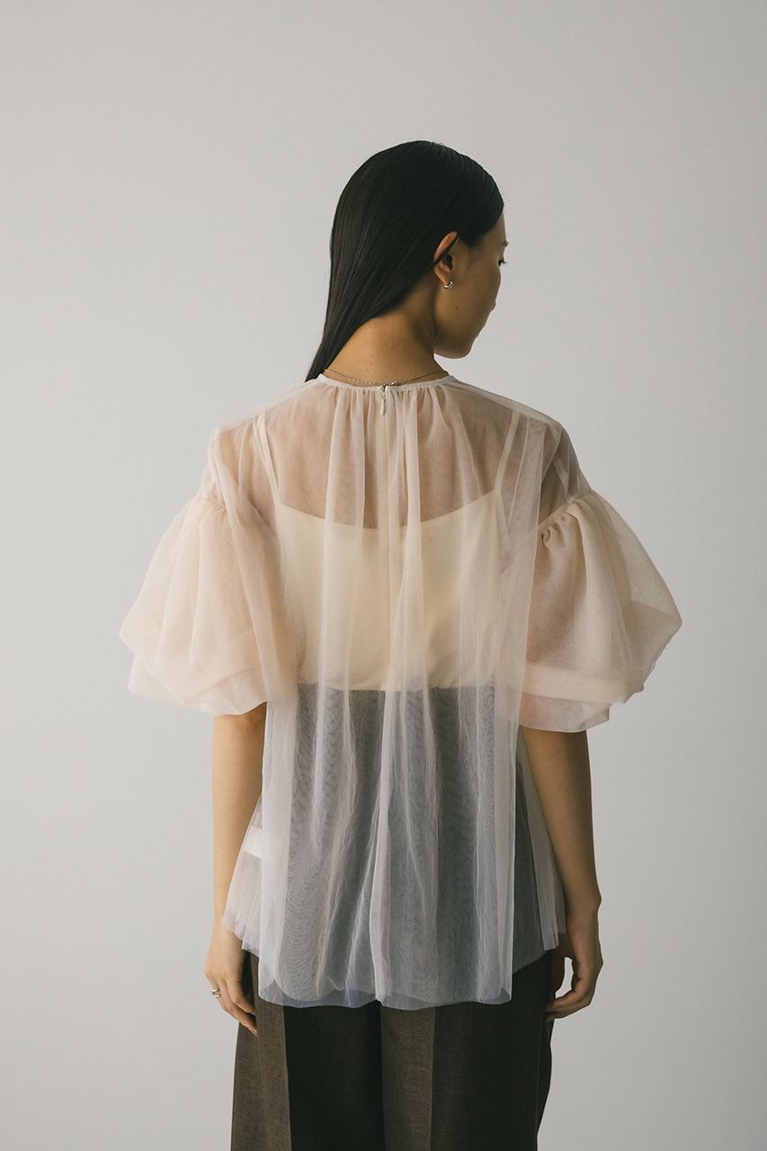 ギャザースリーブチュールトップ
