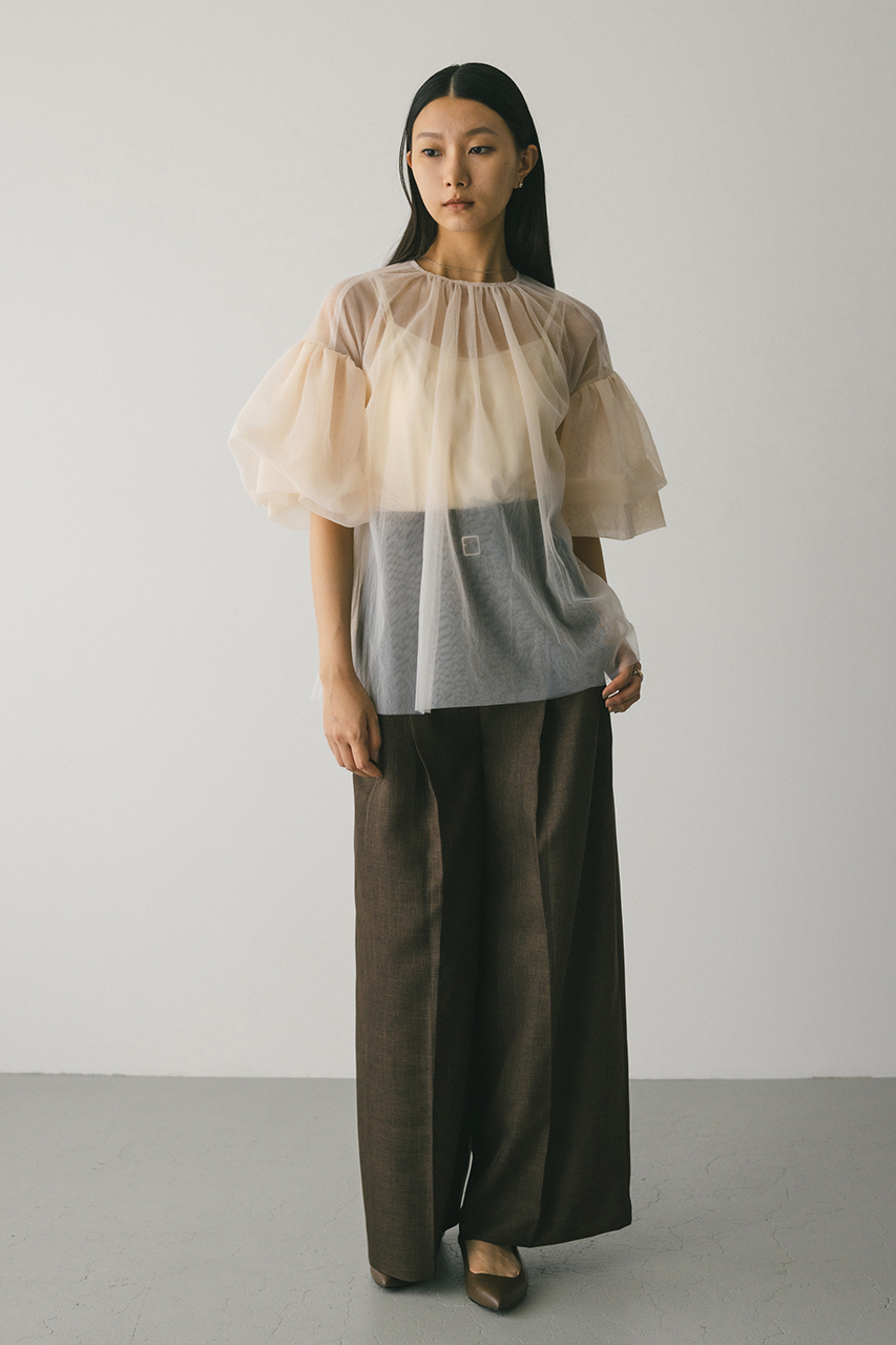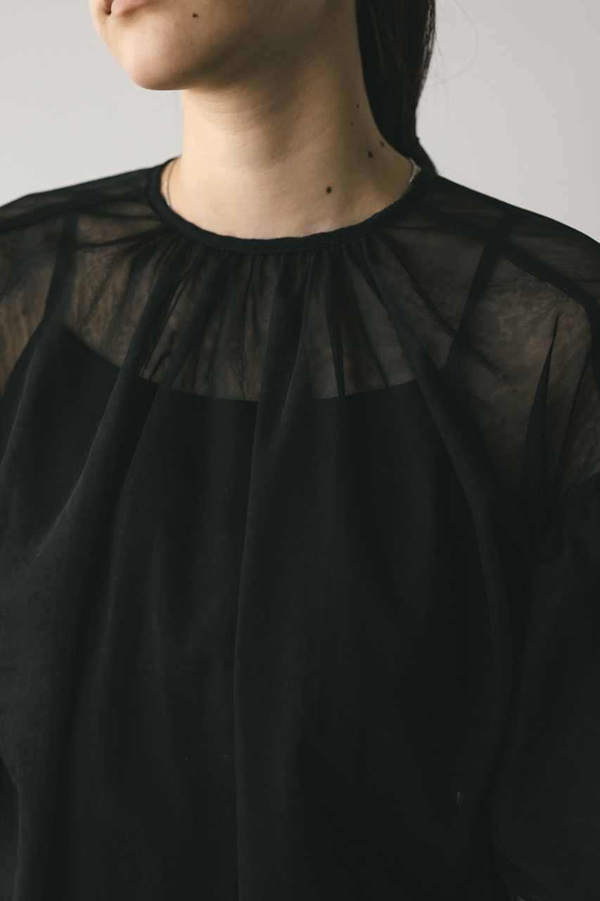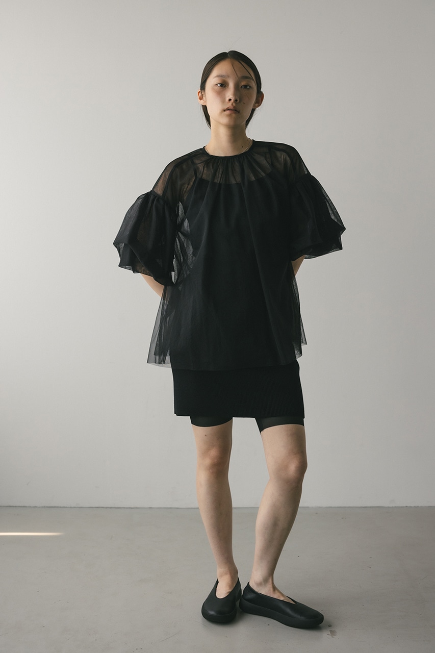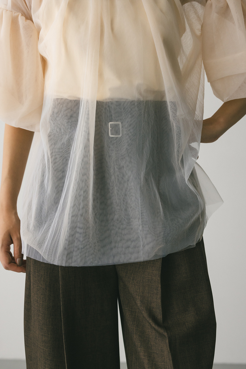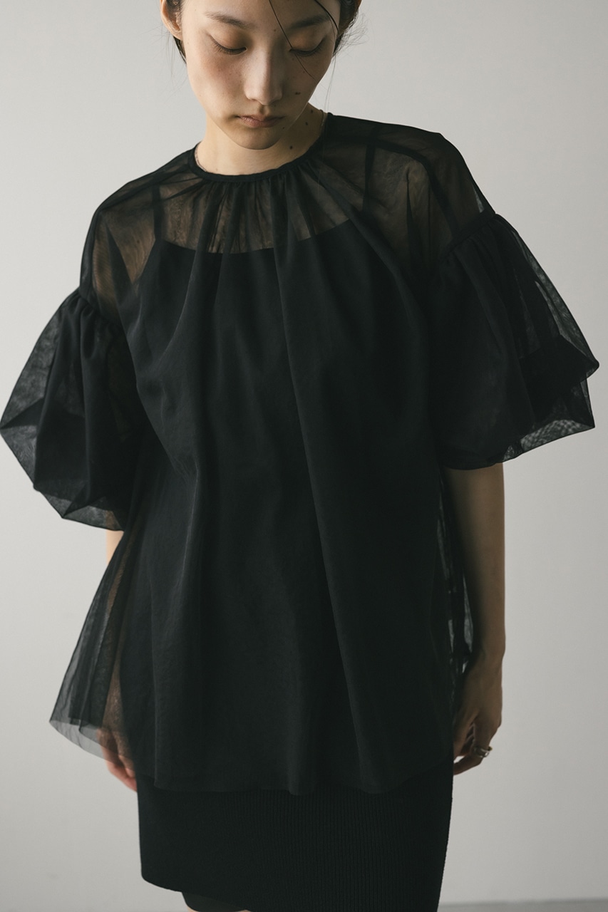 ギャザースリーブチュールトップ