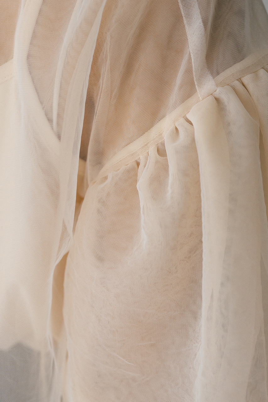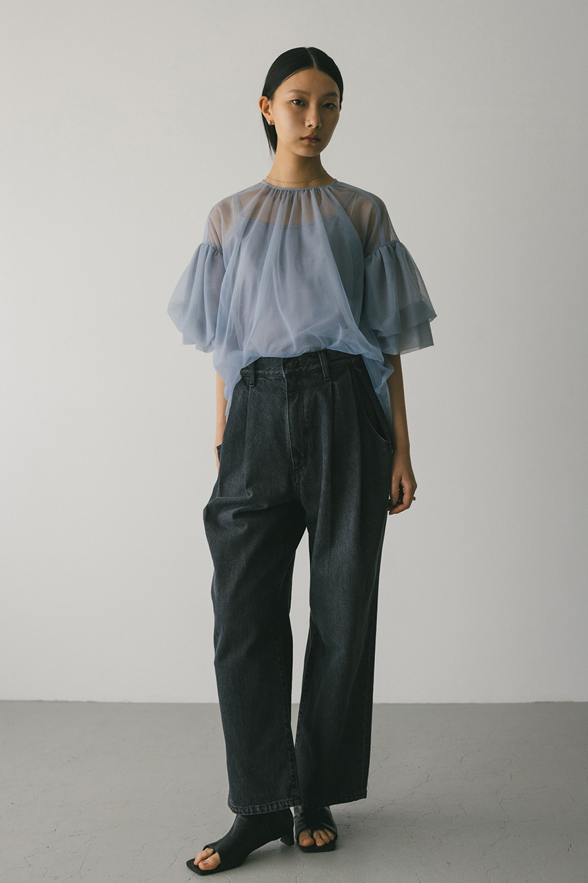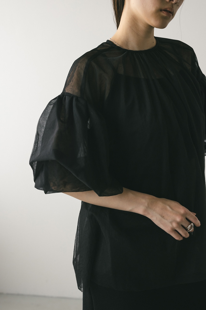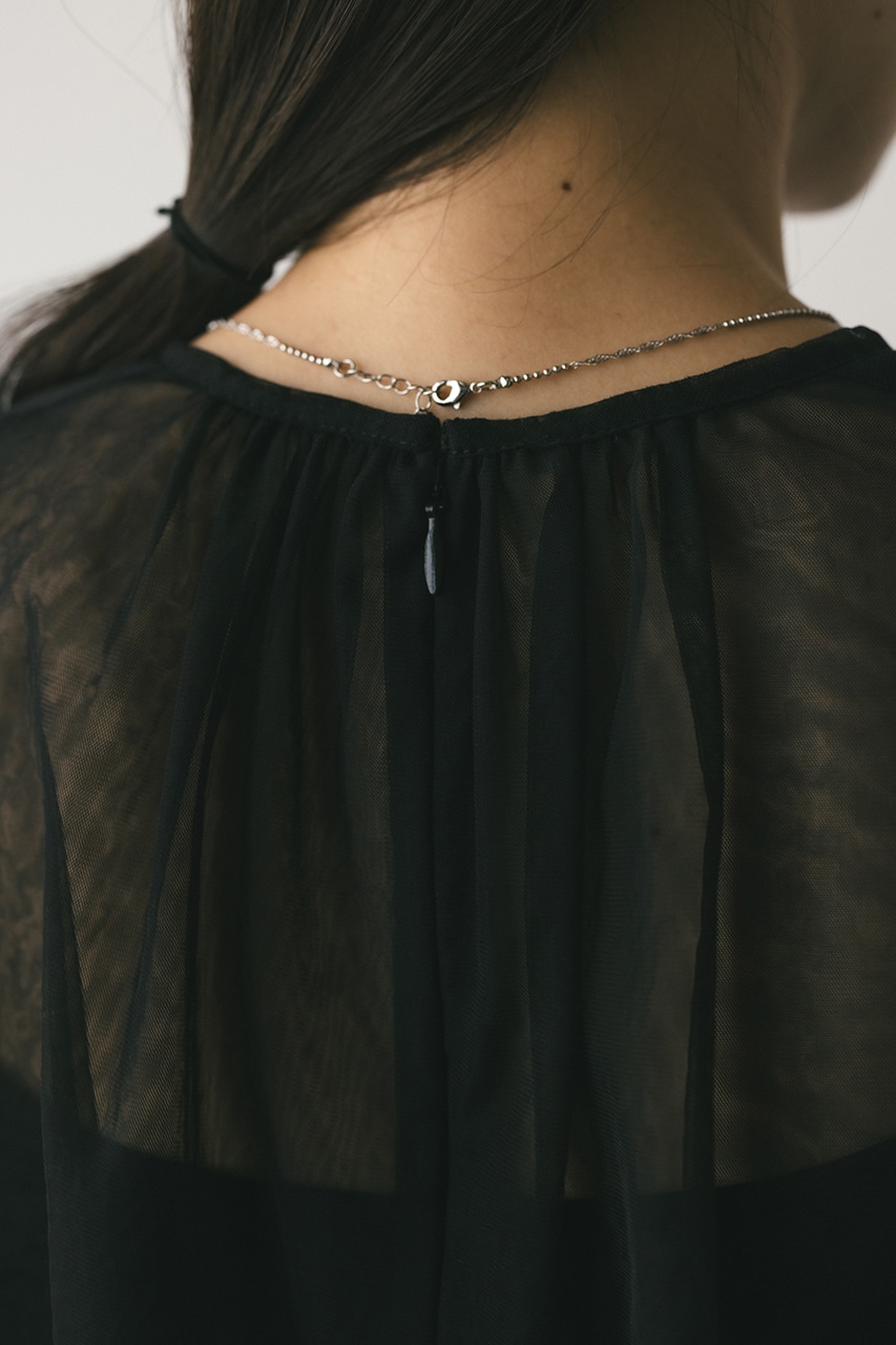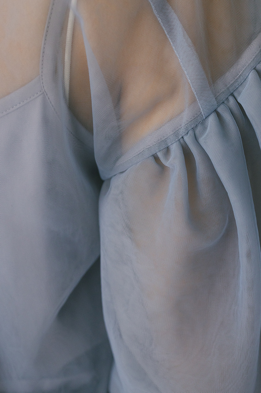 ギャザースリーブチュールトップ