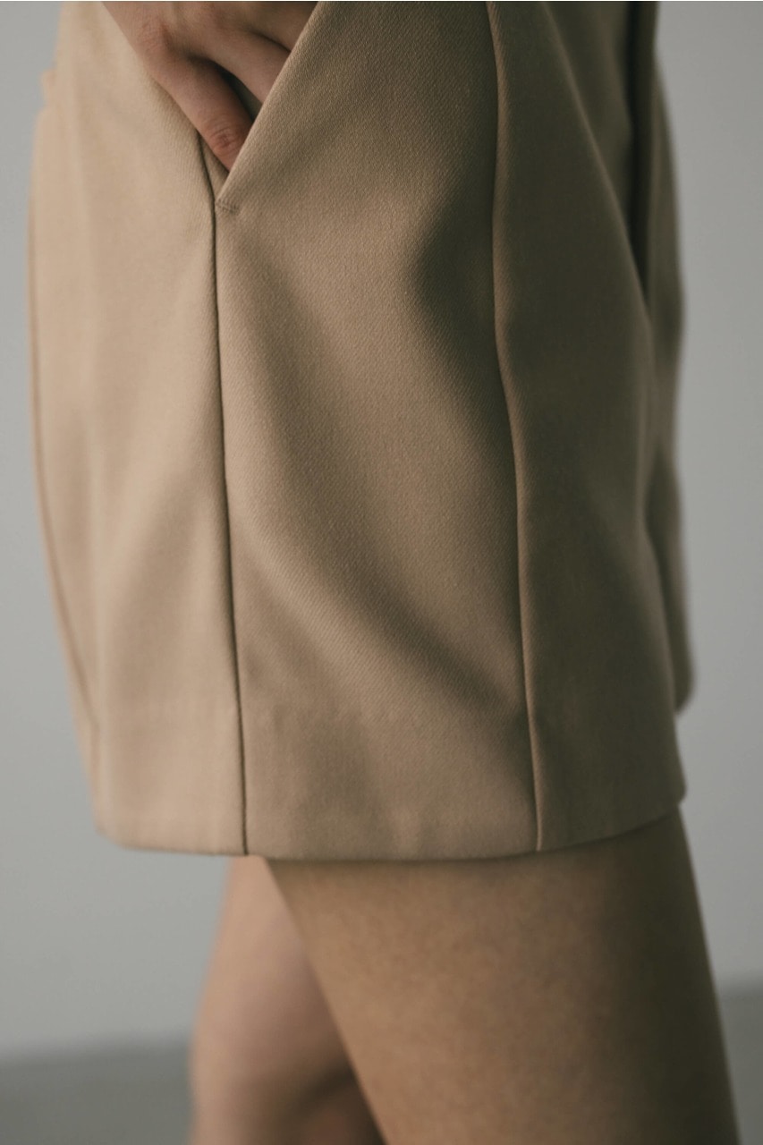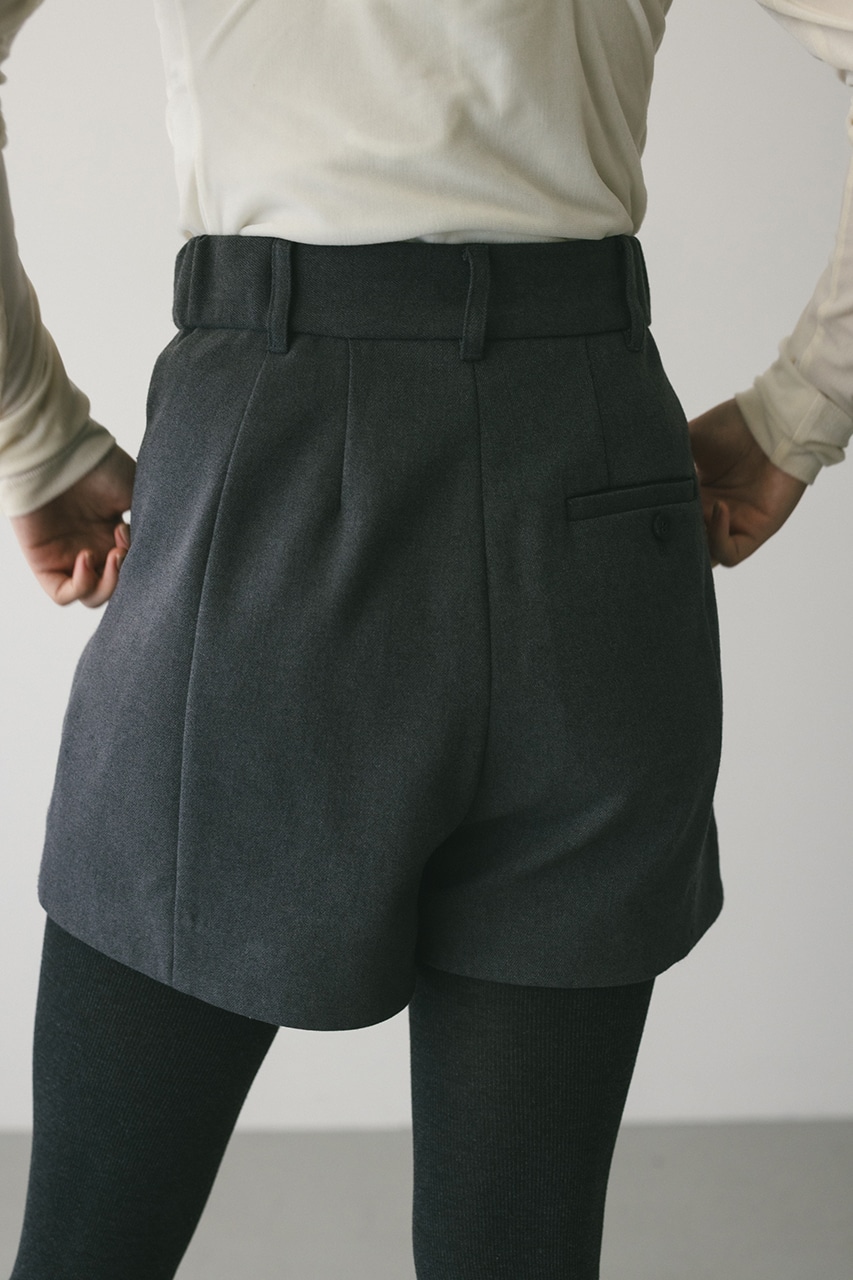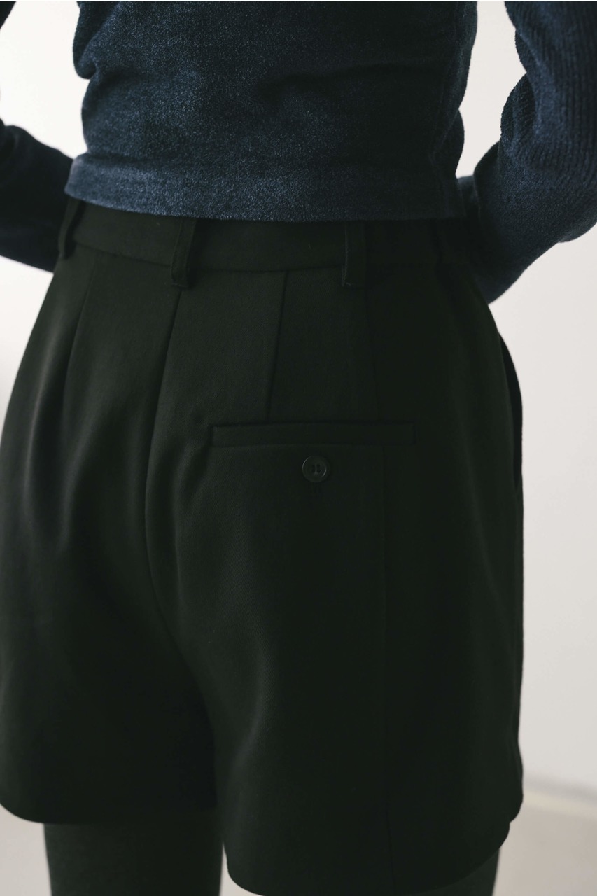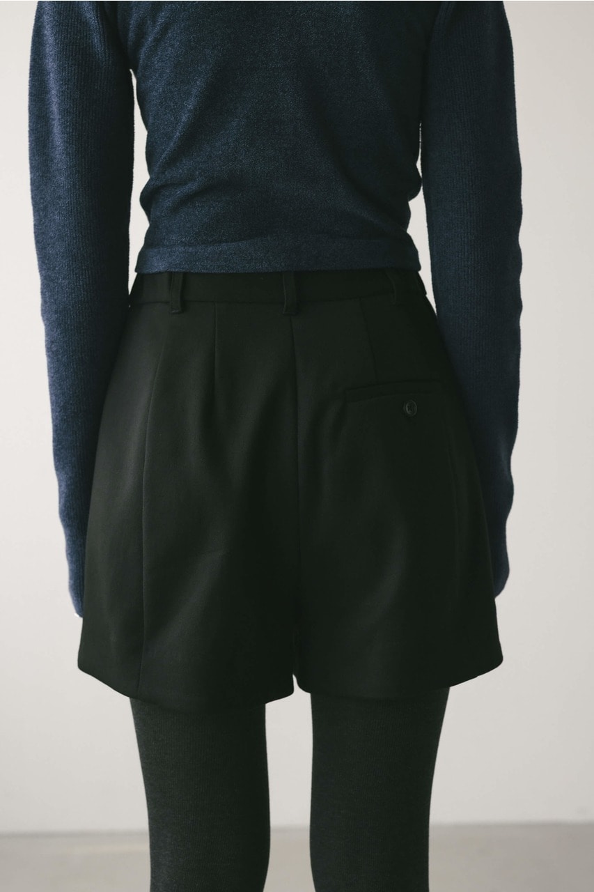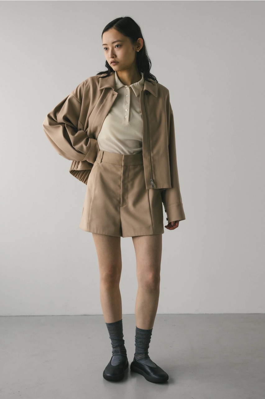 シルエットに膨らみを持たせた大人なショートパンツ。コンパクトなミニ丈とカーブフォルムがデザインポイント。前後差のある足口でヒップラインをしっかりカバーしてくれます。ウエストゴム入り。500IAS30-1161(ワイドスリーブブルゾン)とセットアップ着用可能。透け感なし、ストレッチややあり。