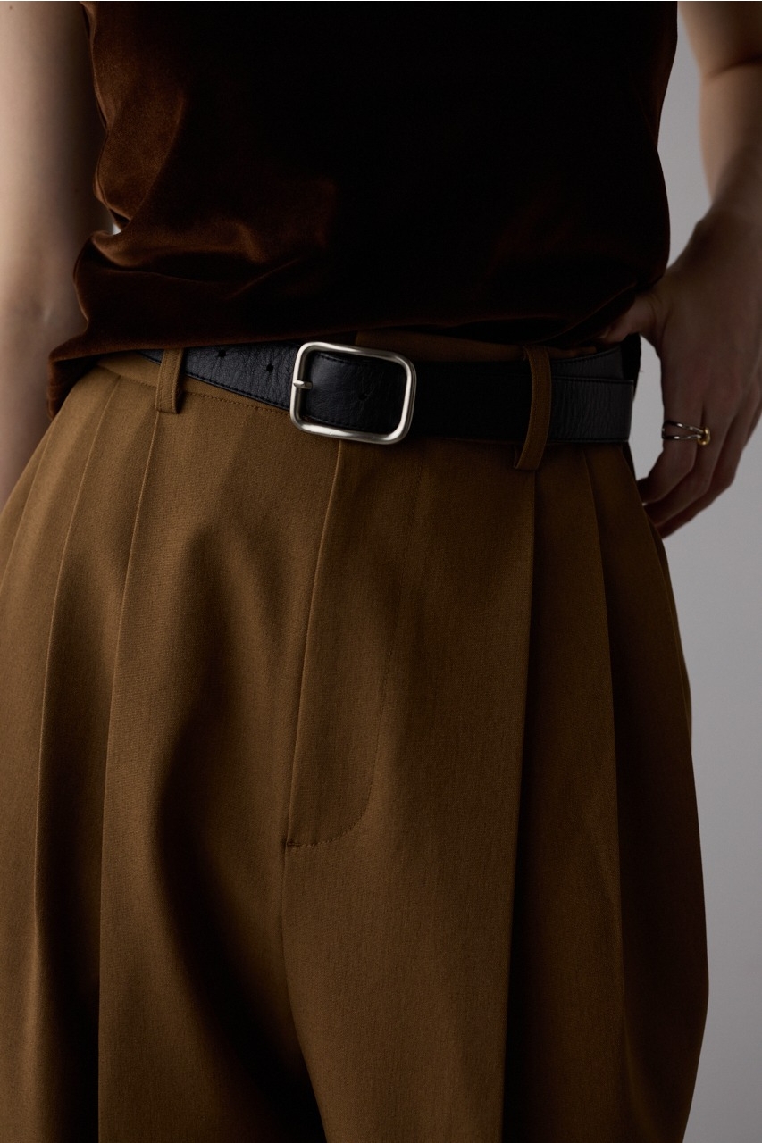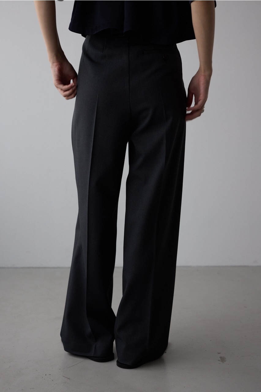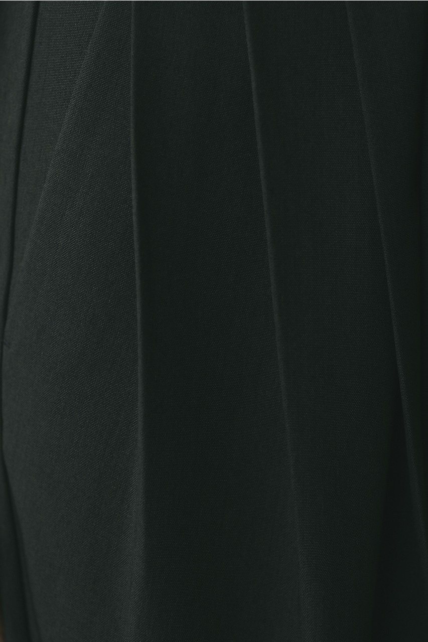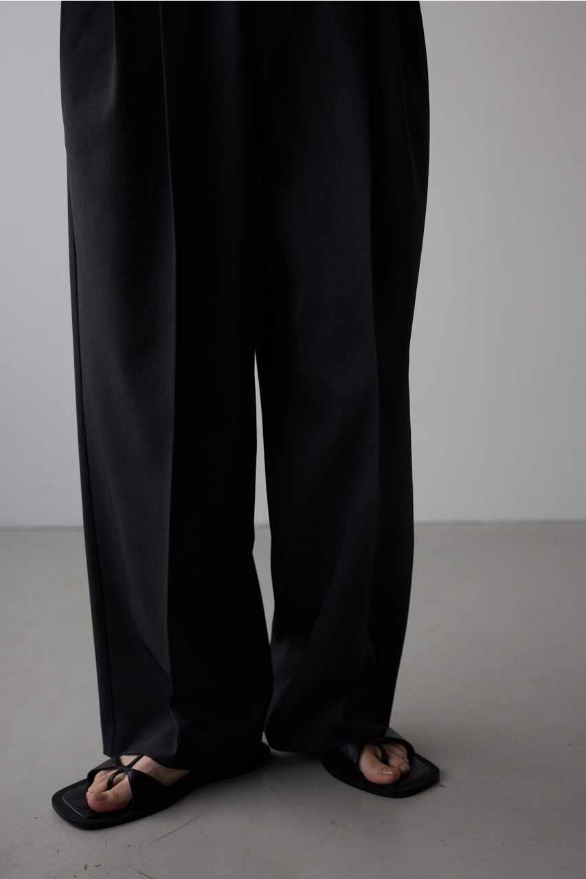 3タックデザインがマニッシュなスタミキの美脚スラックス。微ストレッチでしわになりにくい素材を使用。500HAS31-0191(ショートテーラーベスト)とセットアップ着用可能。透け感IVO裏地付き、ストレッチややあり。ロング丈もご用意しています。(500IAS31-4061 3タックスラックスロング)