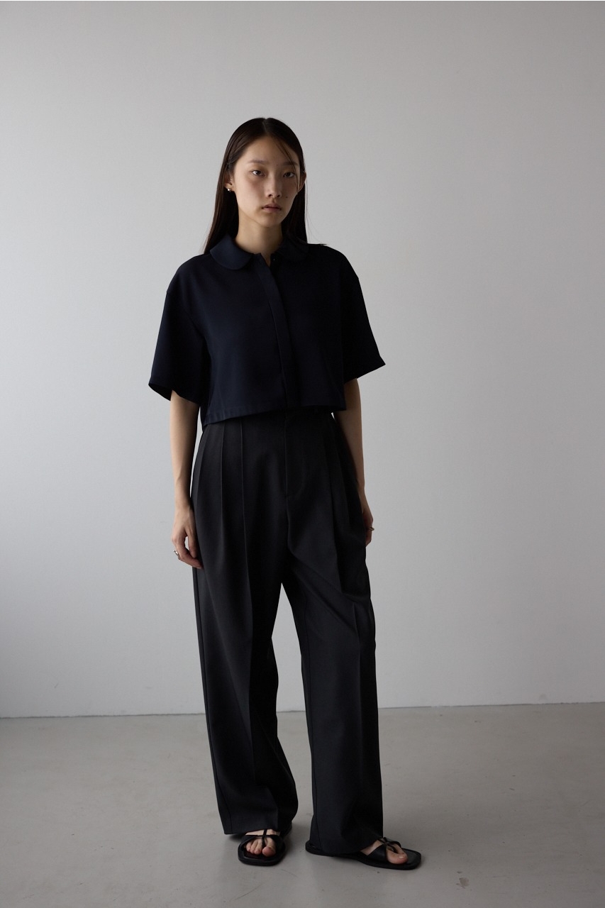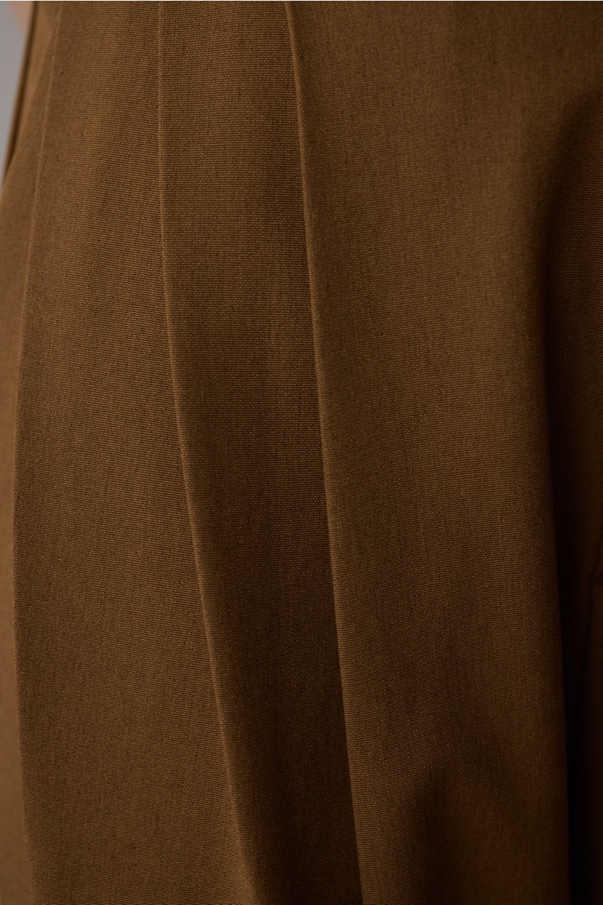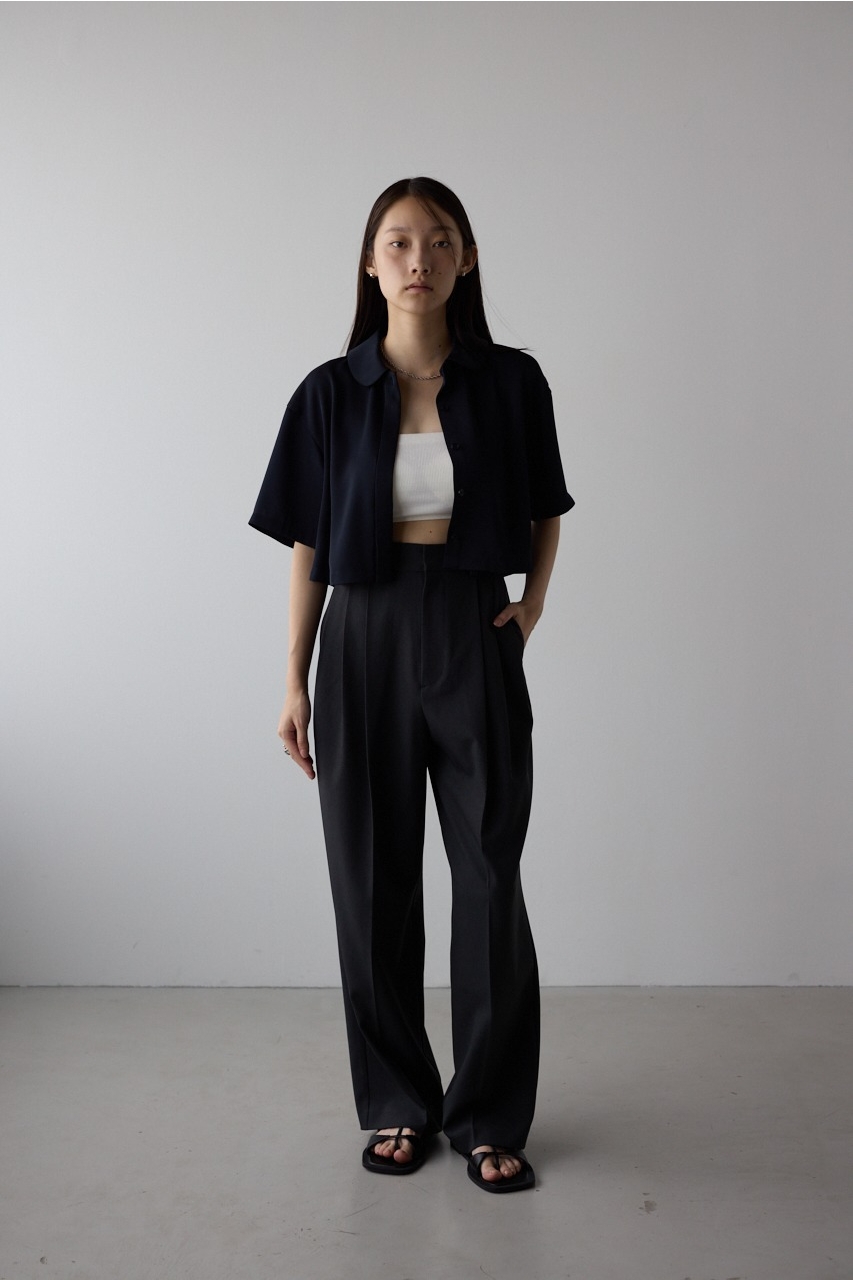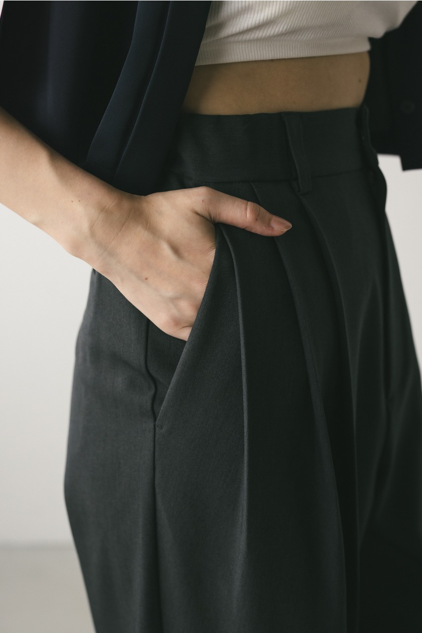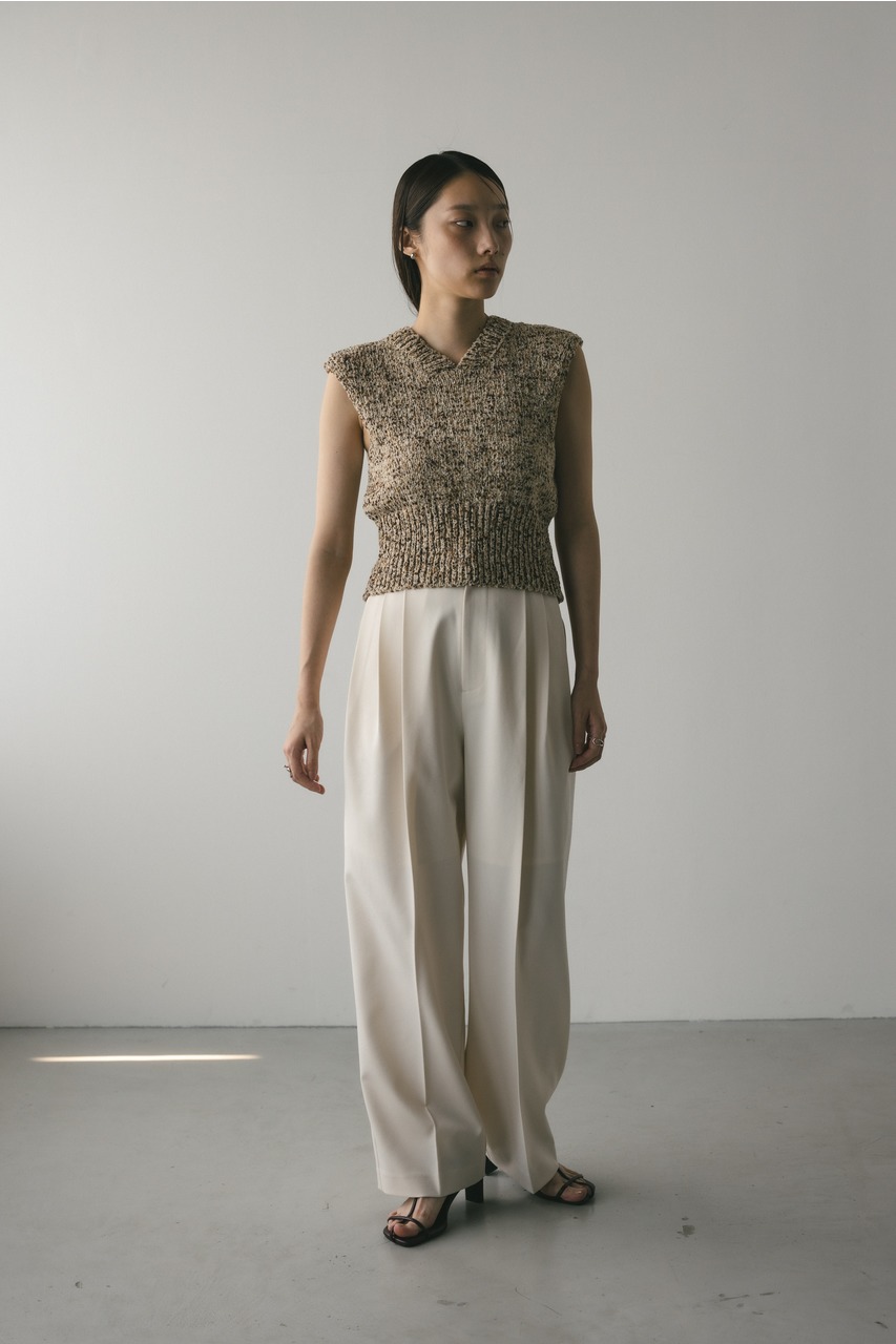 3タックデザインがマニッシュなスタミキの美脚スラックス。微ストレッチでしわになりにくい素材を使用。500HAS31-0191(ショートテーラーベスト)とセットアップ着用可能。透け感IVO裏地付き、ストレッチややあり。ロング丈もご用意しています。(500IAS31-4061 3タックスラックスロング)