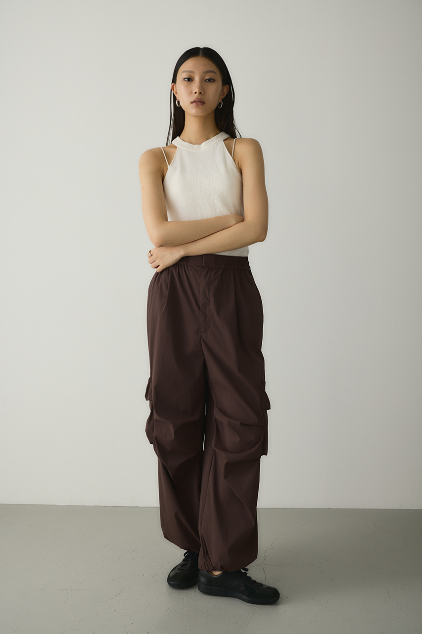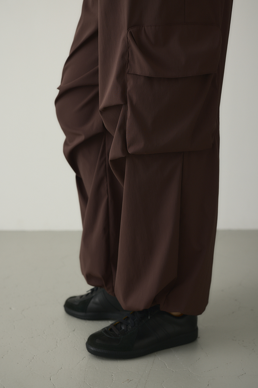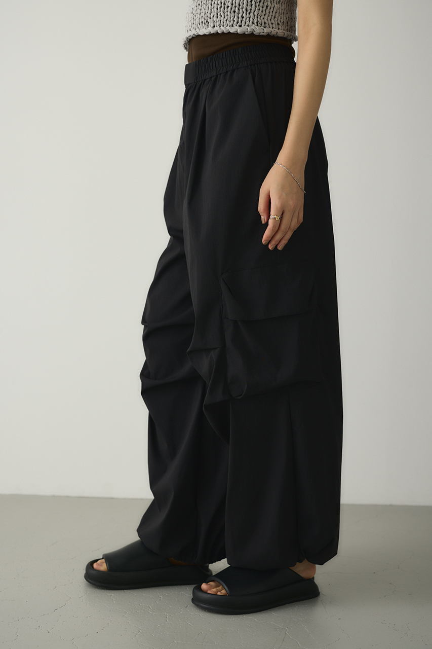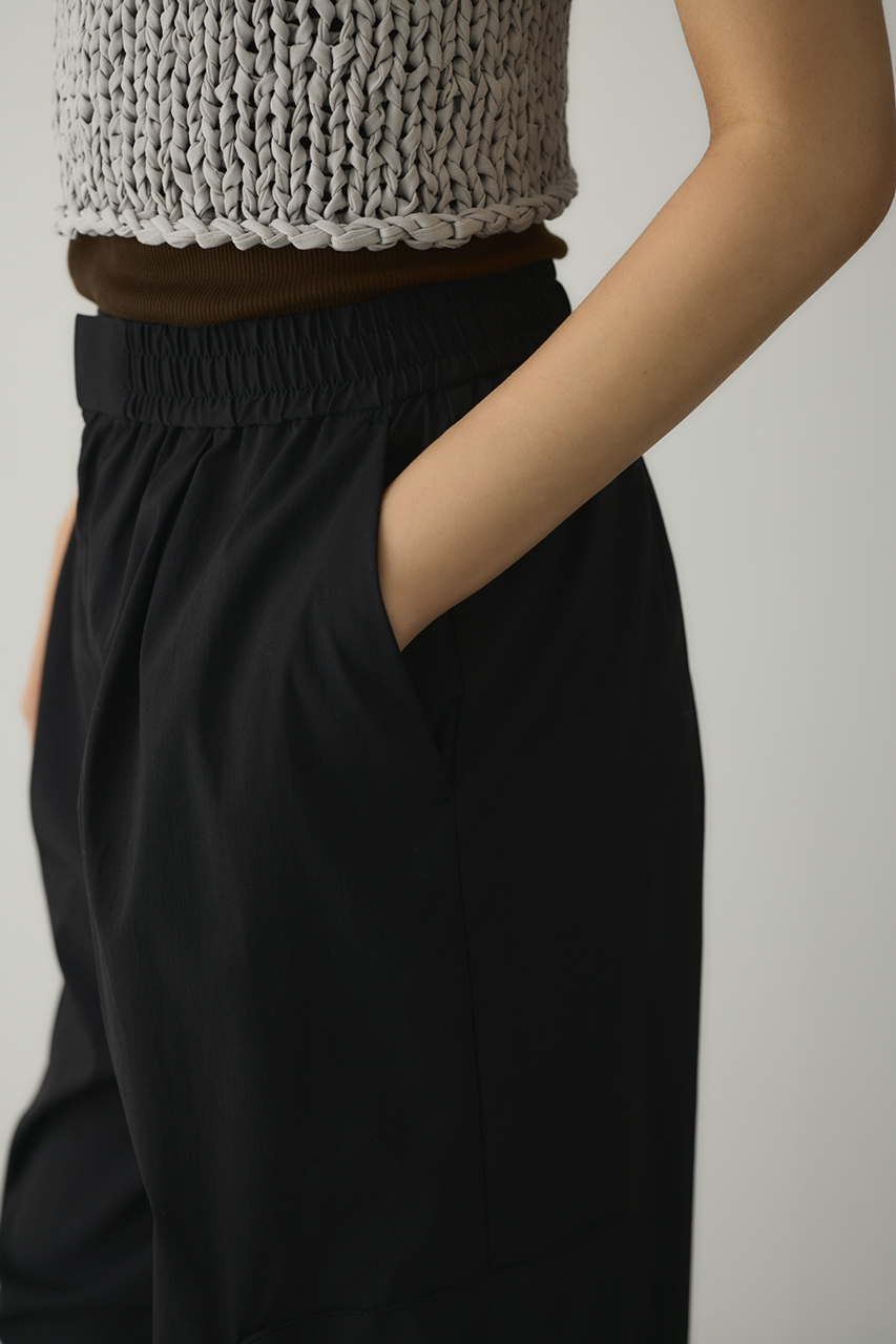 ゆったりとしたワイドシルエットとビックアウトポケット、ダーツデザインが可愛いアクティブパンツ。裾はドロストコードデティールでバルーンシルエットにも調整可能。スタイリングやシーンに合わせて変えられます。ウエストゴム仕様。ストレッチややあり、透け感なし。