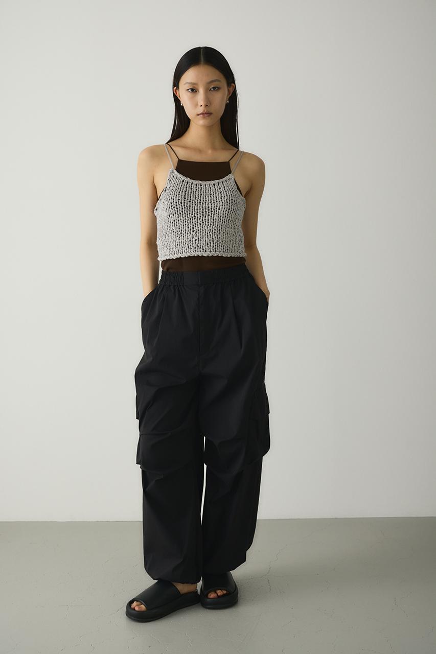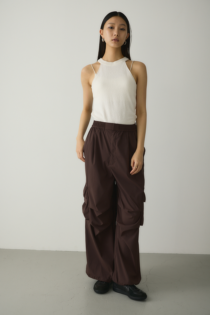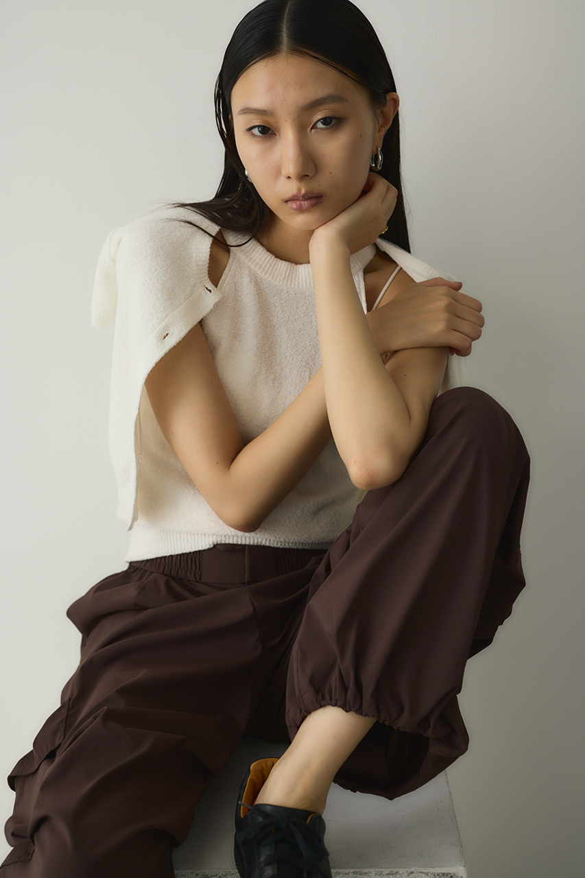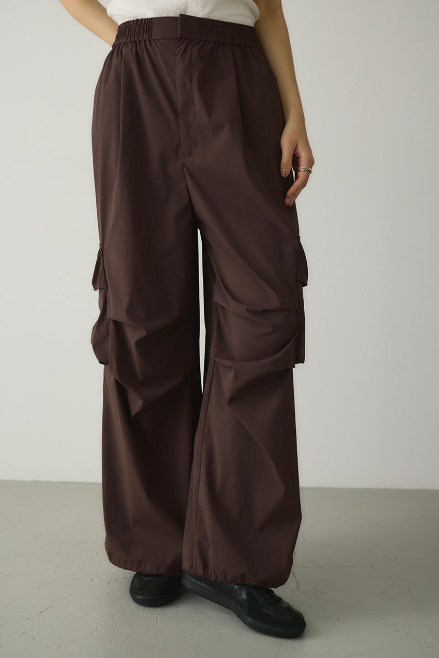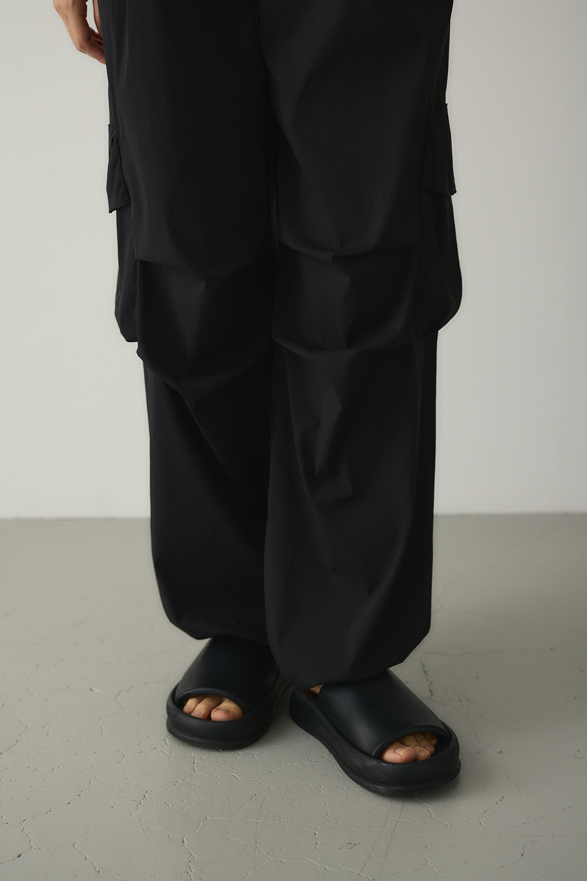 ゆったりとしたワイドシルエットとビックアウトポケット、ダーツデザインが可愛いアクティブパンツ。裾はドロストコードデティールでバルーンシルエットにも調整可能。スタイリングやシーンに合わせて変えられます。ウエストゴム仕様。ストレッチややあり、透け感なし。