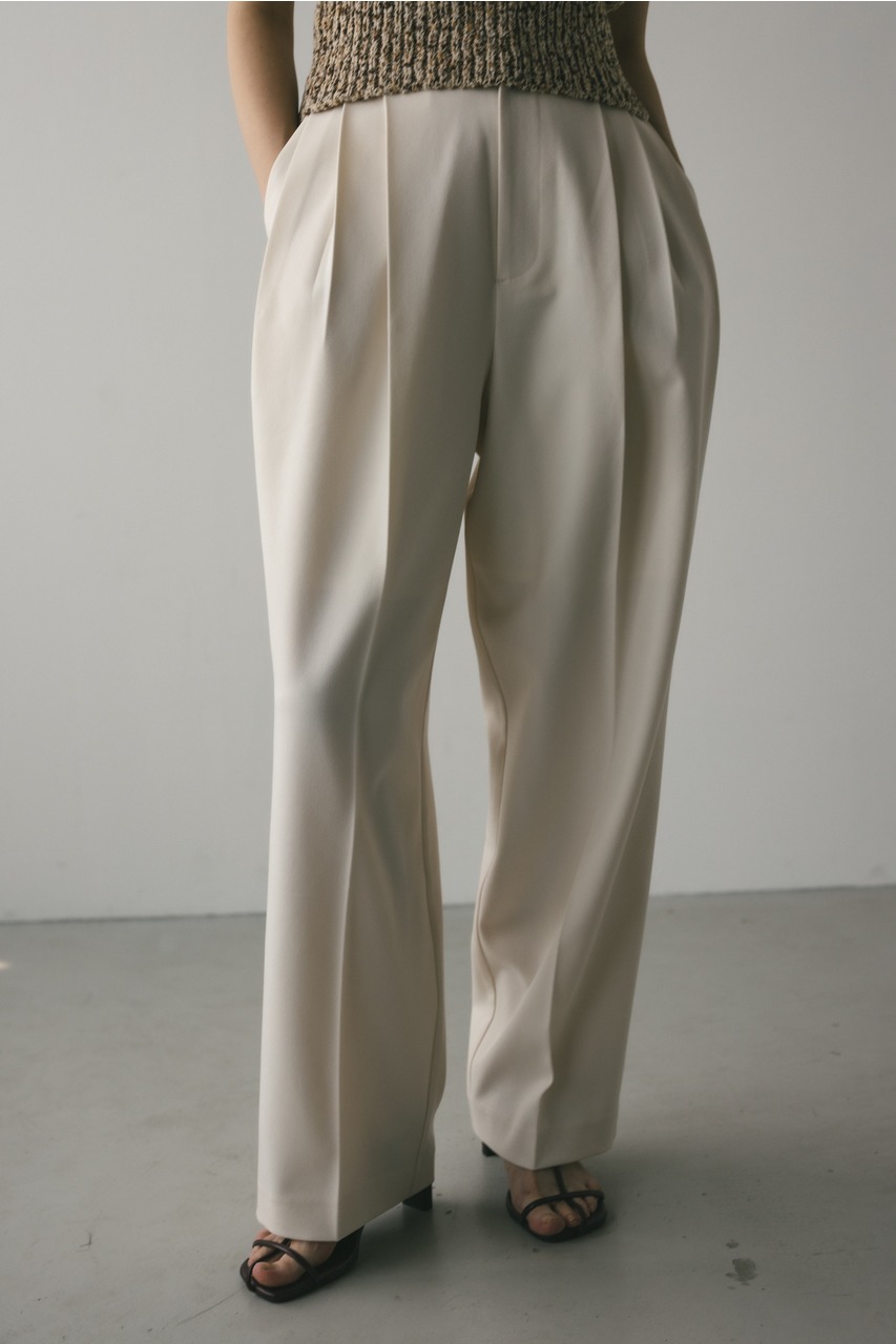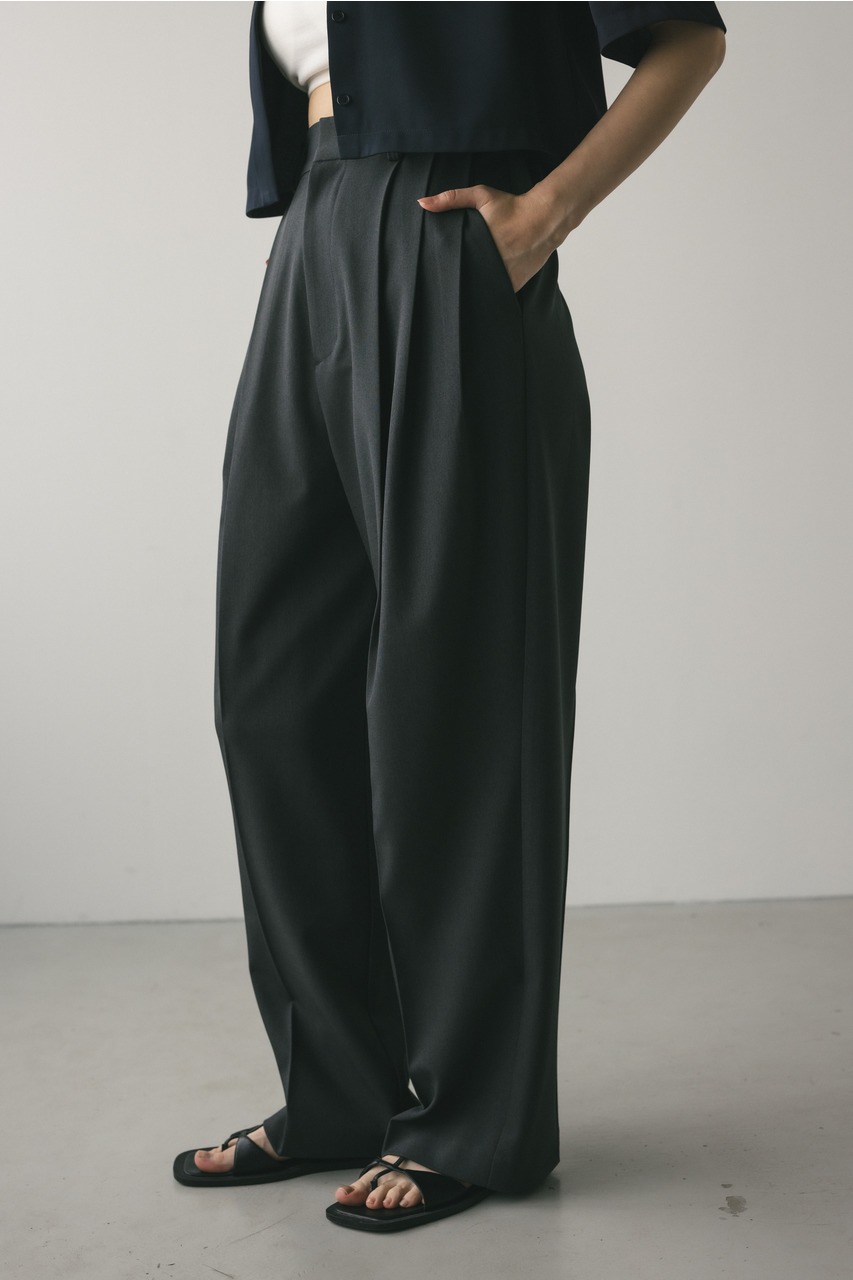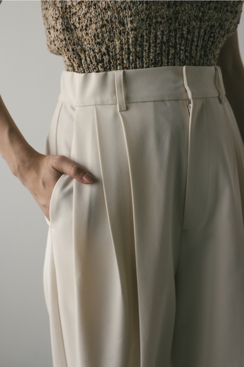 3タックデザインがマニッシュなスタミキの美脚スラックス。、微ストレッチでしわになりにくい素材を使用。500HAS31-0191(ショートテーラーベスト)とセットアップ着用可能。透け感IVO裏地付き、ストレッチややあり。パンツ丈通常もご用意しています。(500IAS31-1401 3タックスラックス)