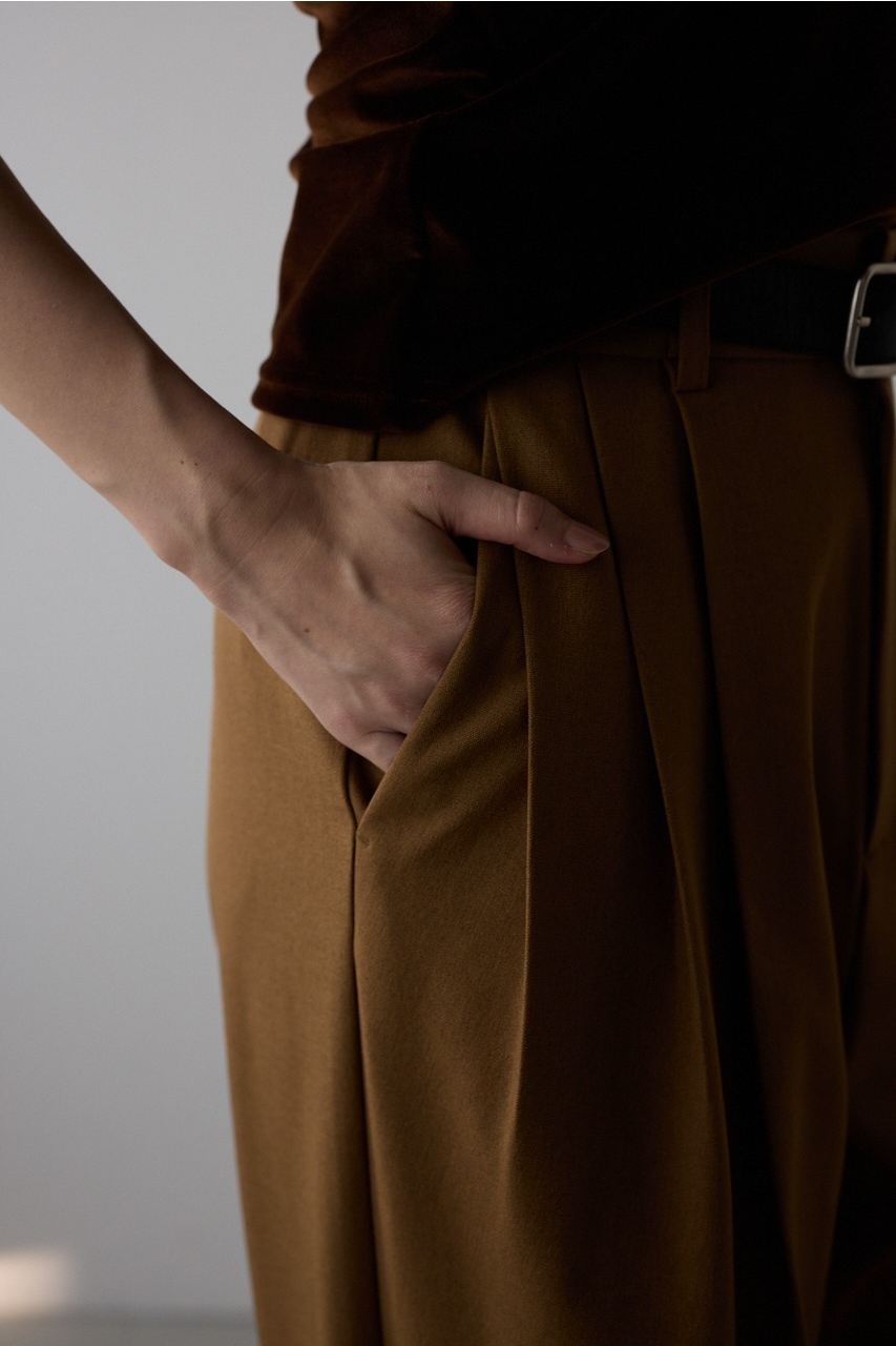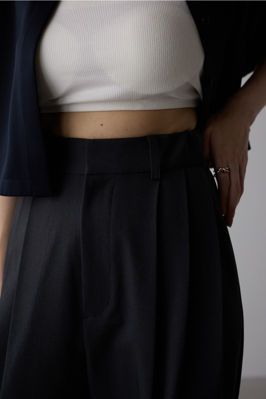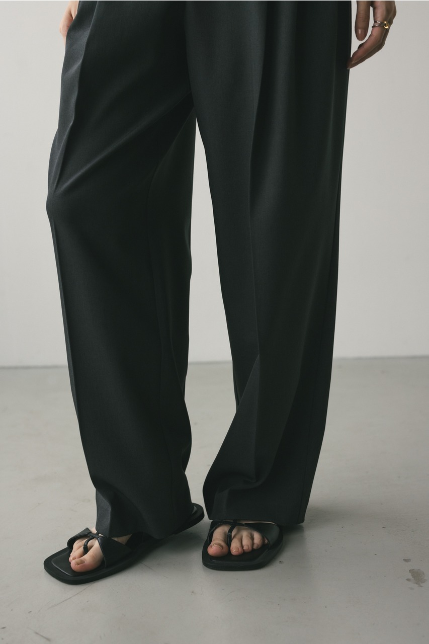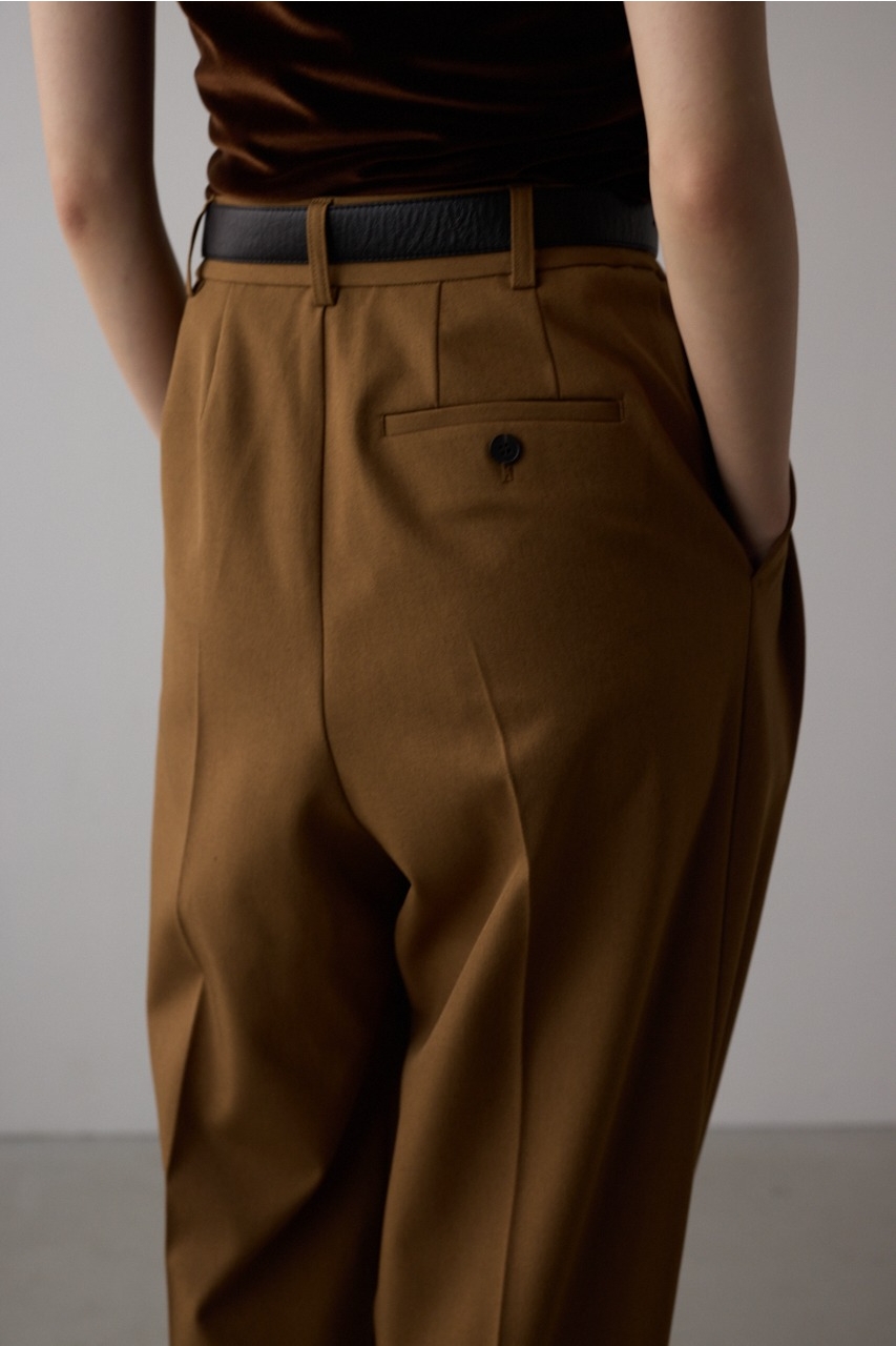 3タックデザインがマニッシュなスタミキの美脚スラックス。、微ストレッチでしわになりにくい素材を使用。500HAS31-0191(ショートテーラーベスト)とセットアップ着用可能。透け感IVO裏地付き、ストレッチややあり。パンツ丈通常もご用意しています。(500IAS31-1401 3タックスラックス)
