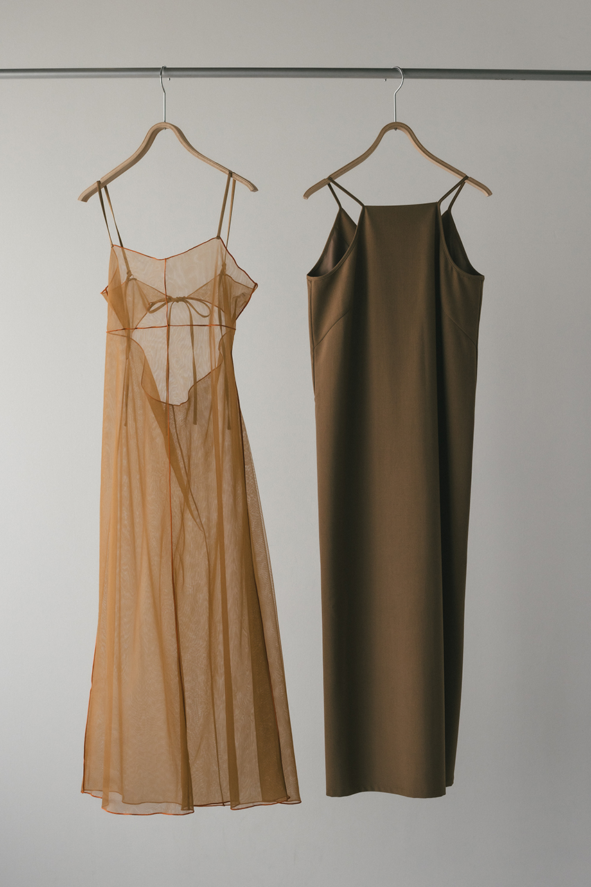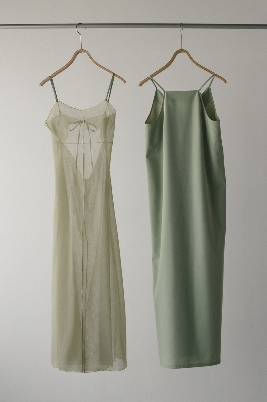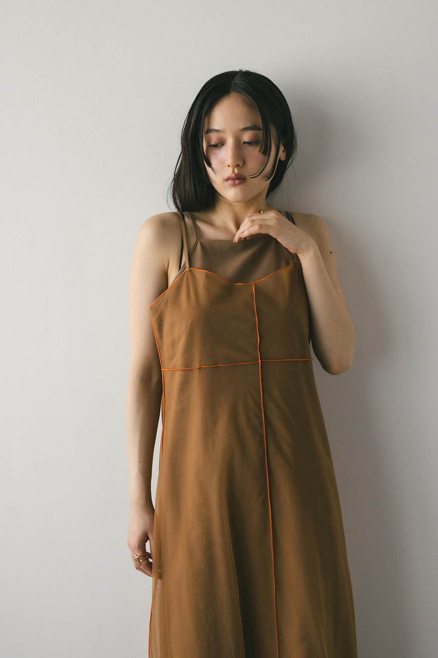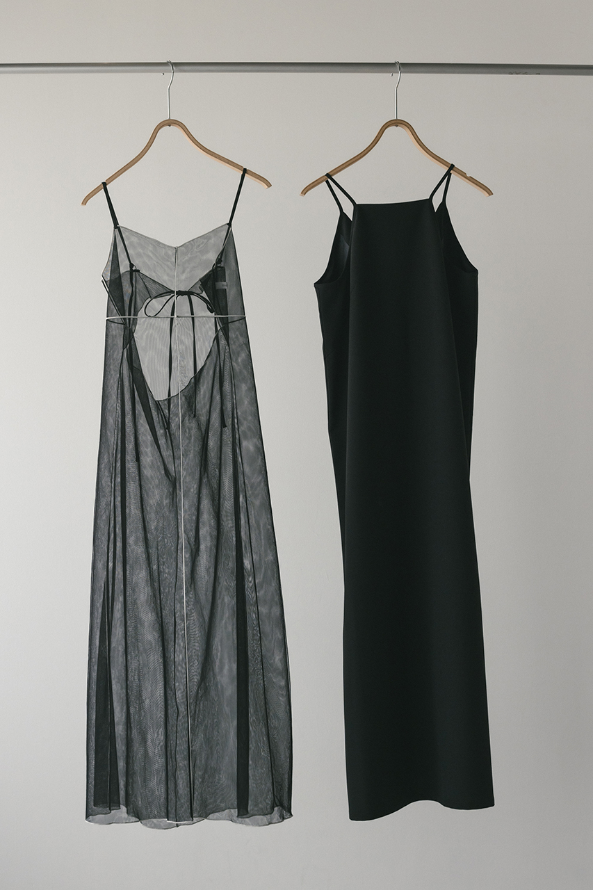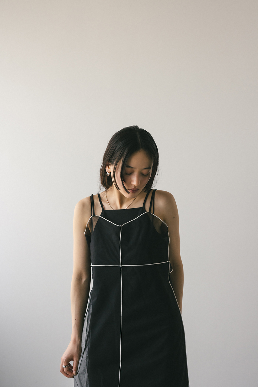 映えるチュールコンビワンピース。すとんとした美しいラインで仕上げたインナーワンピースはスクエアネックとバックVネックがデザインポイント。重ねるチュールワンピースは、配色メローがポイント。ニュアンスのある表情感が可愛い一枚です。チュールワンピースはデニムやスラックスなどと合わせての着用もおすすめです。透け感あり(チュールワンピース)、ストレッチあり(インナーワンピース)。