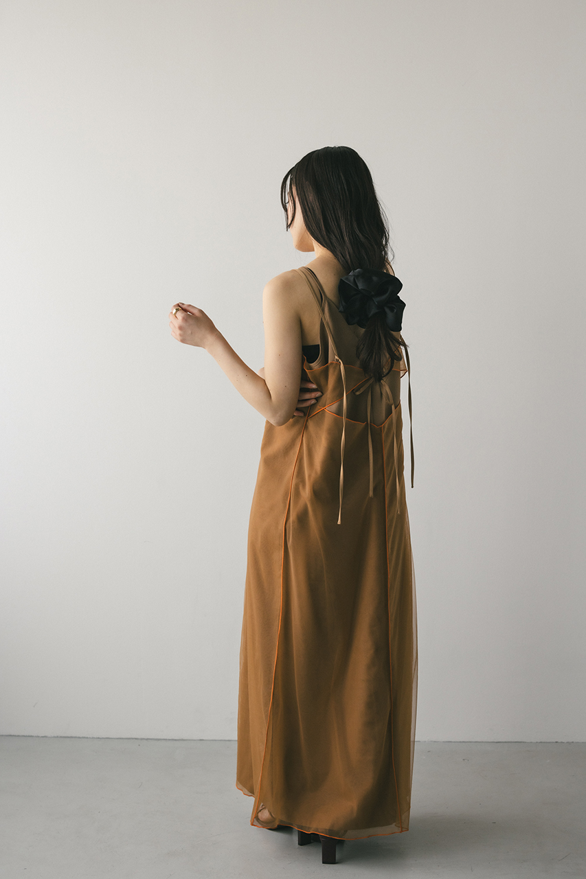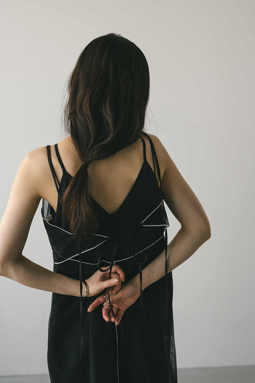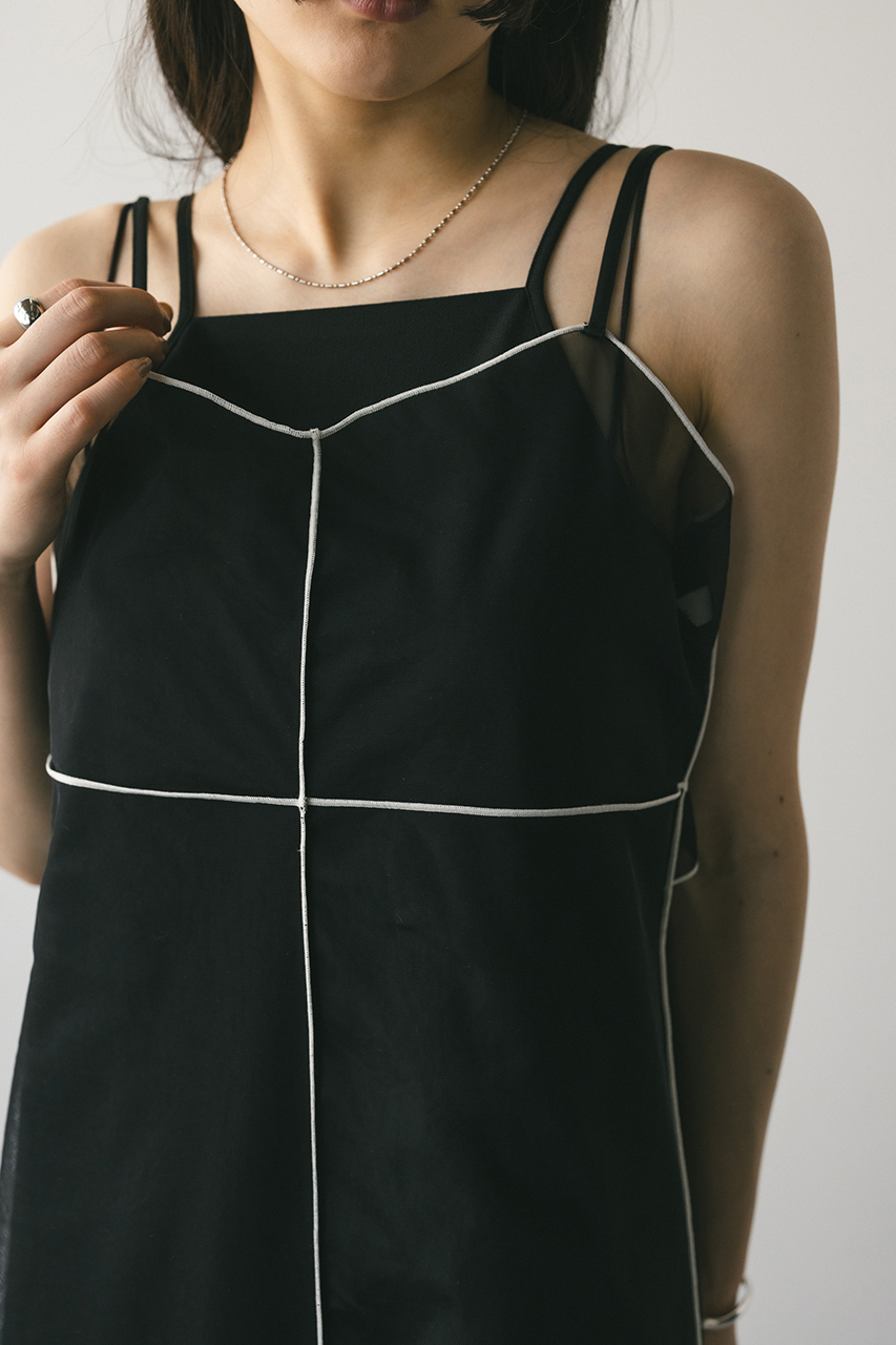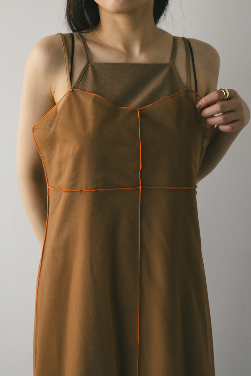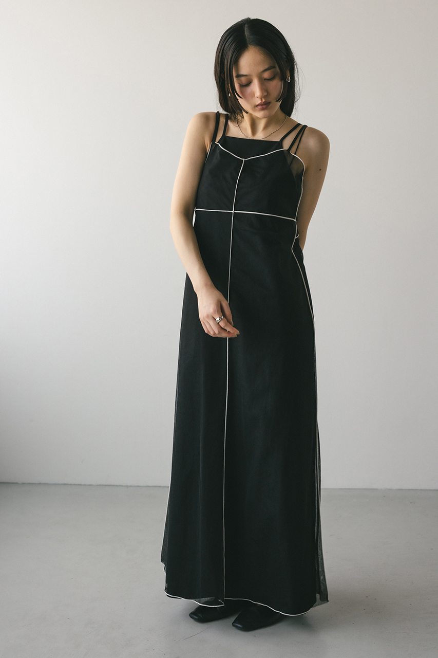 映えるチュールコンビワンピース。すとんとした美しいラインで仕上げたインナーワンピースはスクエアネックとバックVネックがデザインポイント。重ねるチュールワンピースは、配色メローがポイント。ニュアンスのある表情感が可愛い一枚です。チュールワンピースはデニムやスラックスなどと合わせての着用もおすすめです。透け感あり(チュールワンピース)、ストレッチあり(インナーワンピース)。