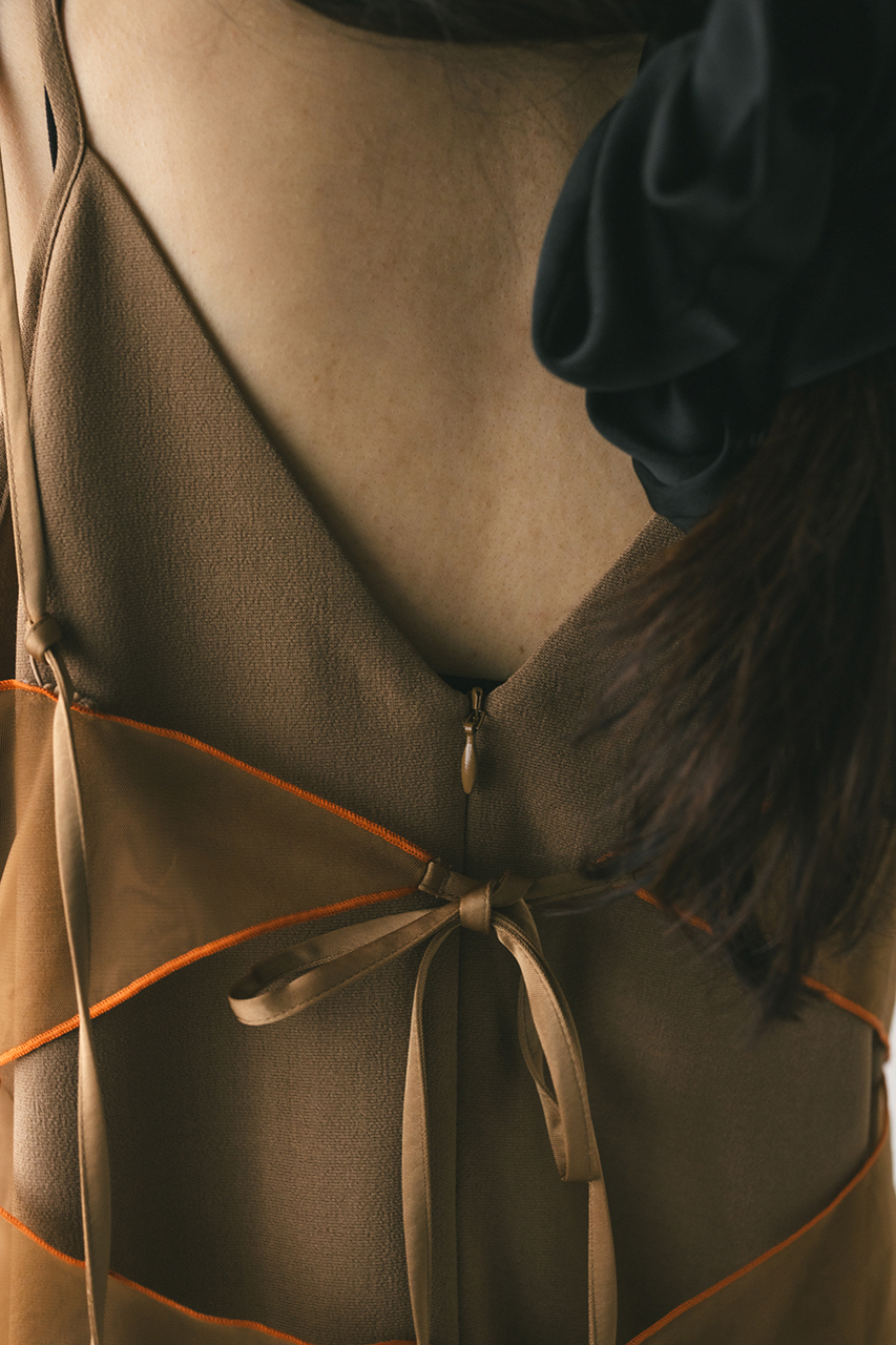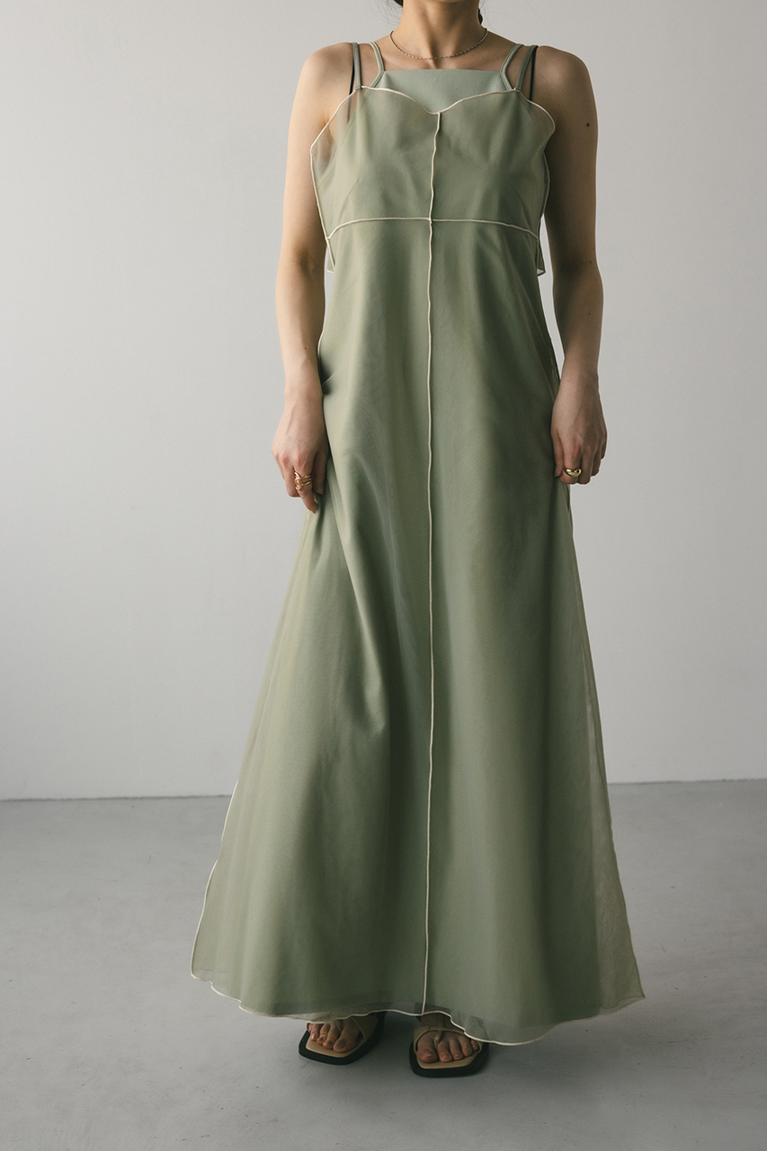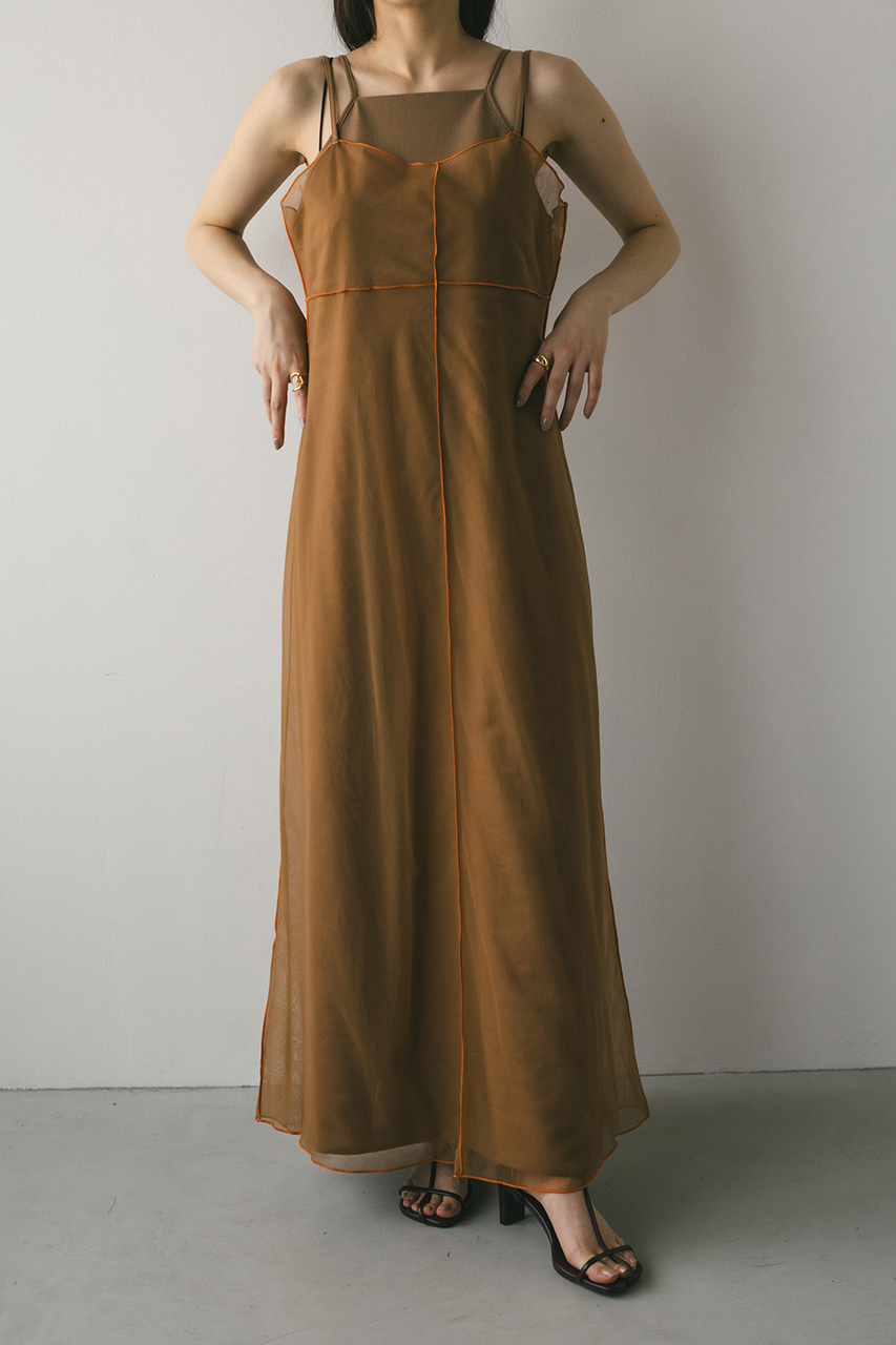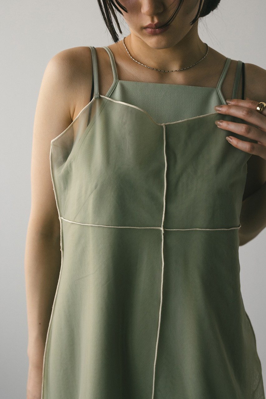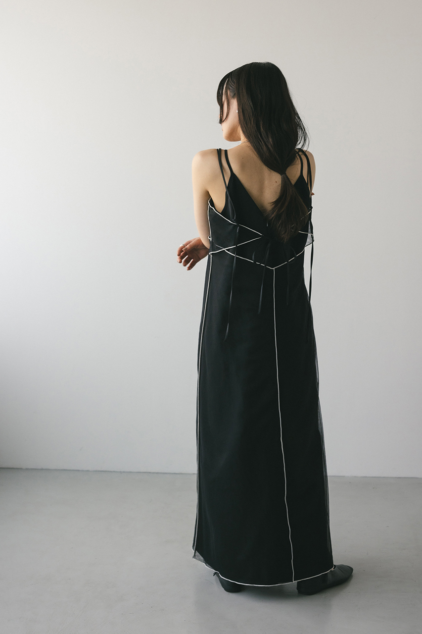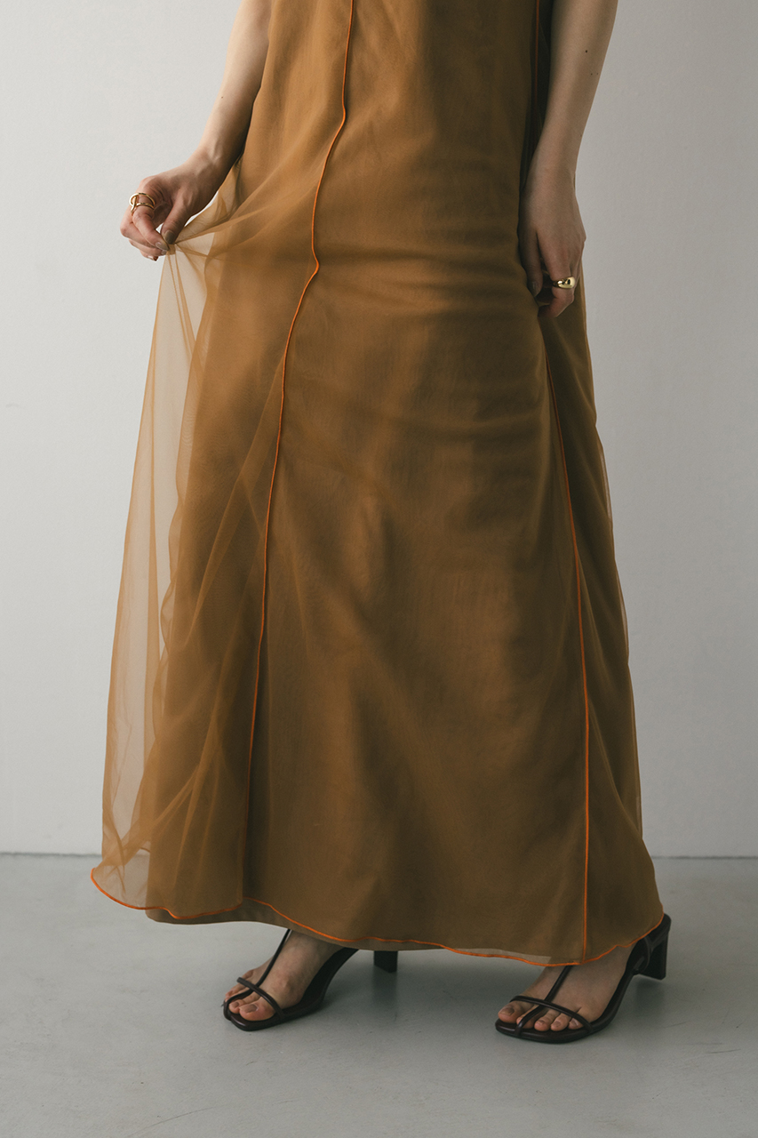 映えるチュールコンビワンピース。すとんとした美しいラインで仕上げたインナーワンピースはスクエアネックとバックVネックがデザインポイント。重ねるチュールワンピースは、配色メローがポイント。ニュアンスのある表情感が可愛い一枚です。チュールワンピースはデニムやスラックスなどと合わせての着用もおすすめです。透け感あり(チュールワンピース)、ストレッチあり(インナーワンピース)。