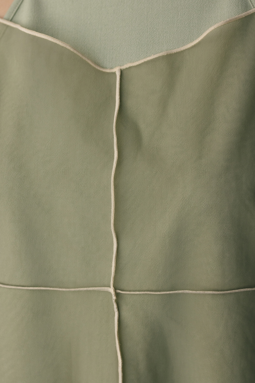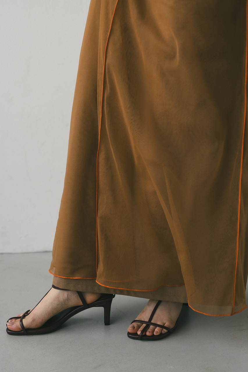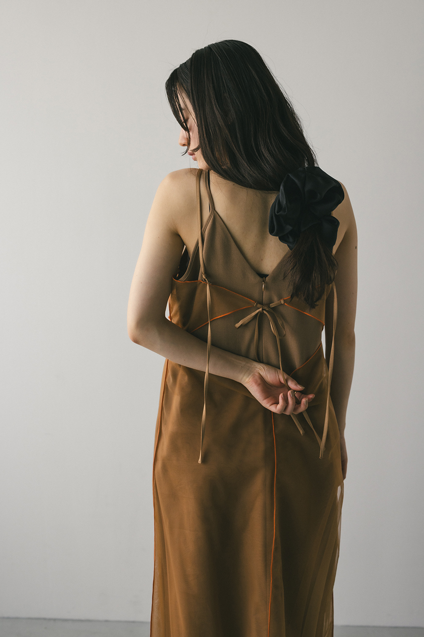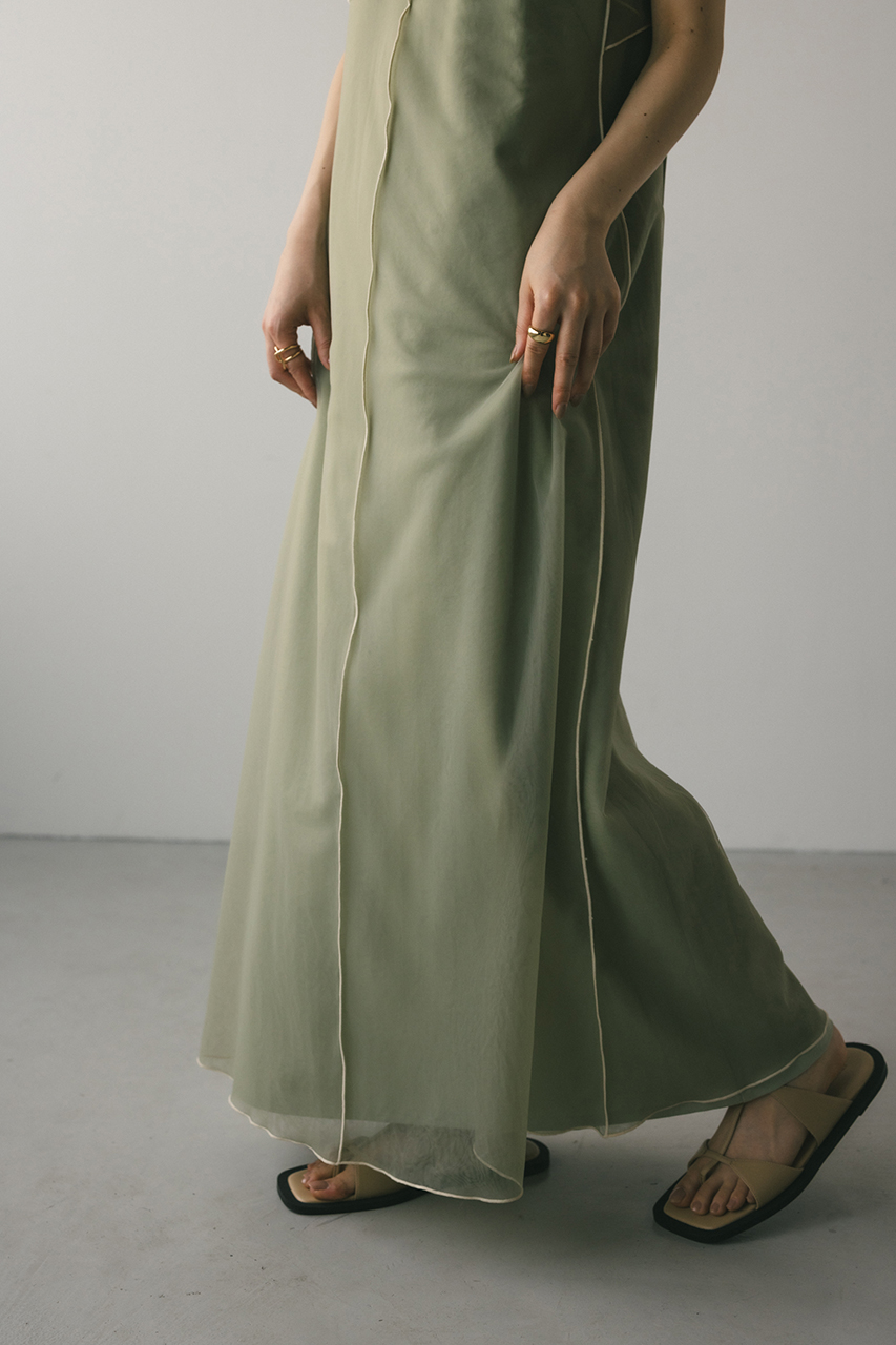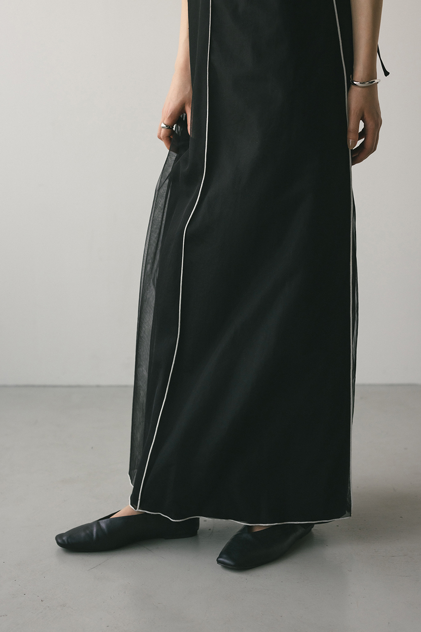 映えるチュールコンビワンピース。すとんとした美しいラインで仕上げたインナーワンピースはスクエアネックとバックVネックがデザインポイント。重ねるチュールワンピースは、配色メローがポイント。ニュアンスのある表情感が可愛い一枚です。チュールワンピースはデニムやスラックスなどと合わせての着用もおすすめです。透け感あり(チュールワンピース)、ストレッチあり(インナーワンピース)。