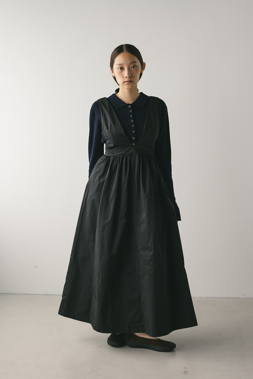 ハリ感が可愛い素材感で仕立てたスタイルアップボリュームジャンパースカート。バックリボンがデザインポイント。深いカーブネックで女性らしい抜け感をプラスしたメリハリのあるシルエットでスタイルアップ見せが叶う一枚です。透け感なし、ストレッチなし。