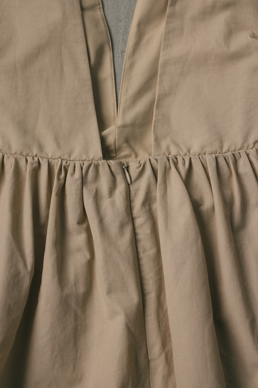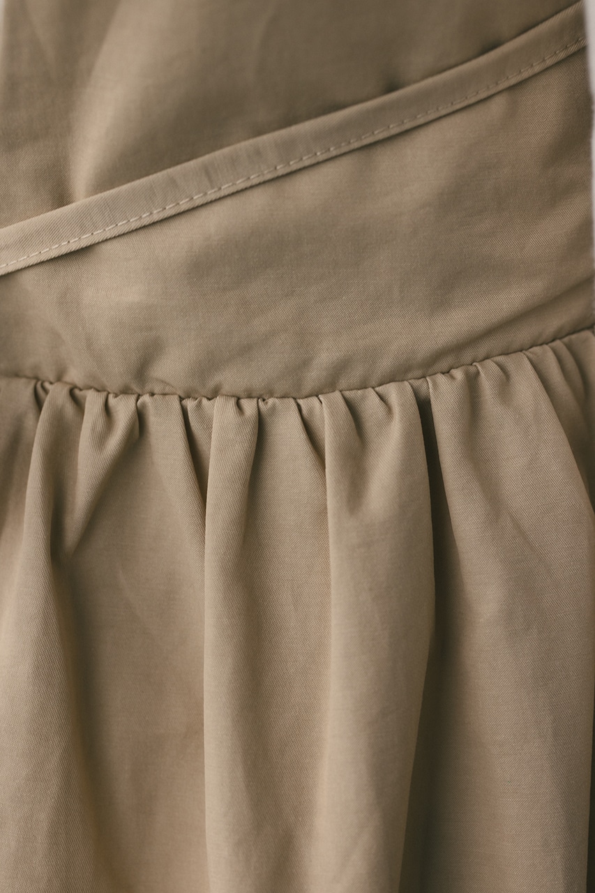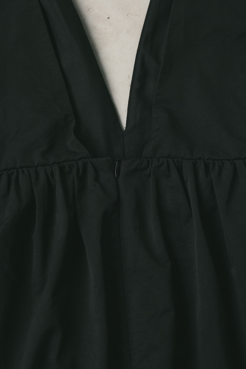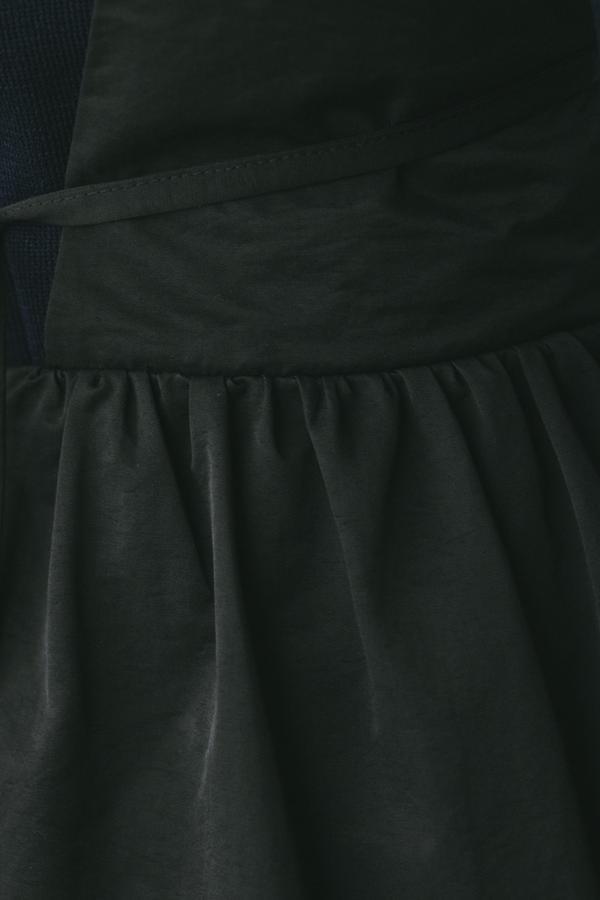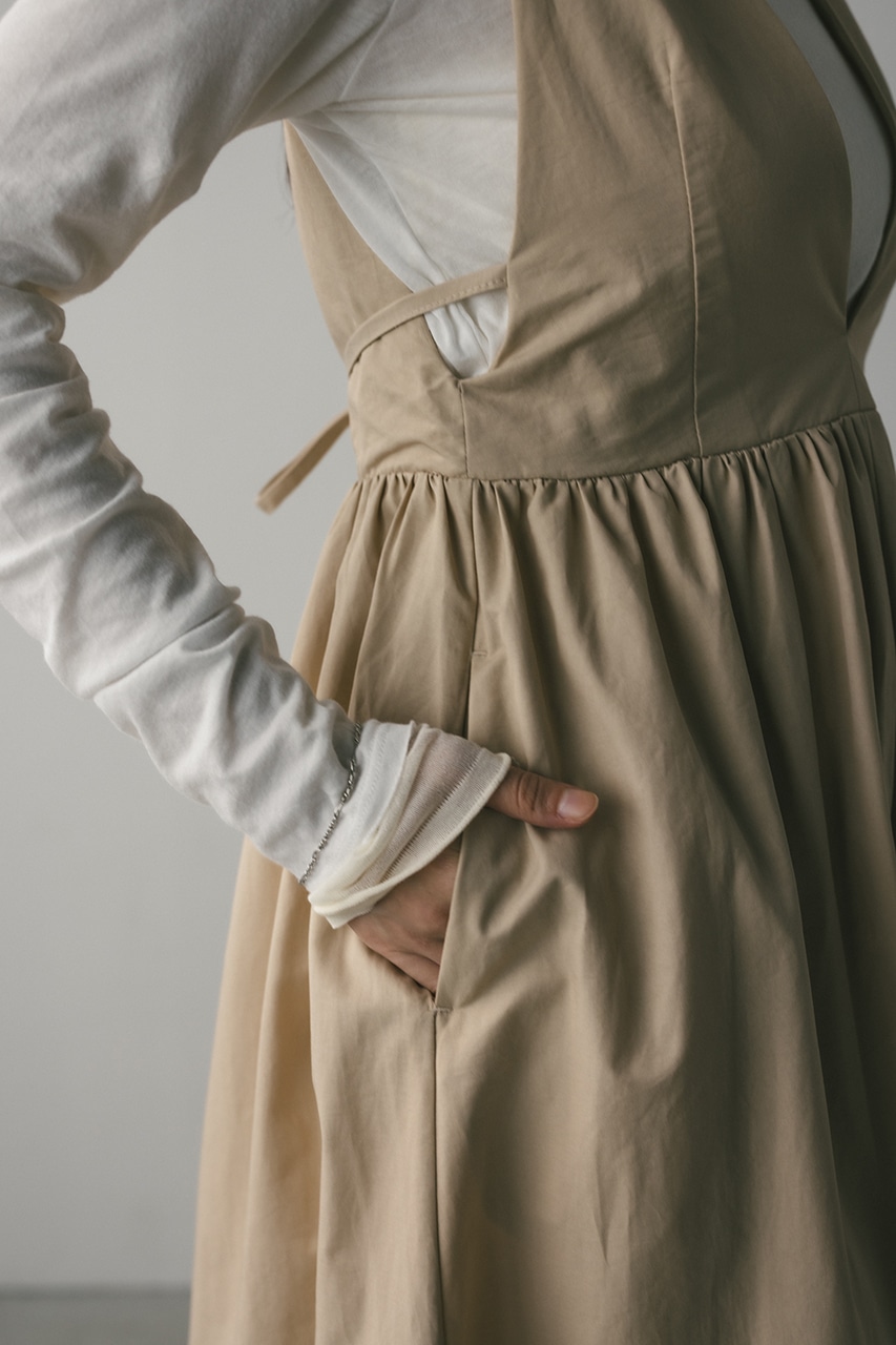 ハリ感が可愛い素材感で仕立てたスタイルアップボリュームジャンパースカート。バックリボンがデザインポイント。深いカーブネックで女性らしい抜け感をプラスしたメリハリのあるシルエットでスタイルアップ見せが叶う一枚です。透け感なし、ストレッチなし。