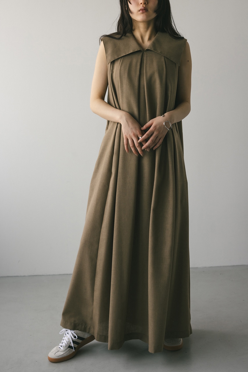 ビックカラーと縦に落ちるタックがスタイルアップを叶えるワンピース。バックオープンデザインで映える一枚です。軽い素材感でしわになりにくいのも魅力です。透け感IVOあり、ストレッチなし。