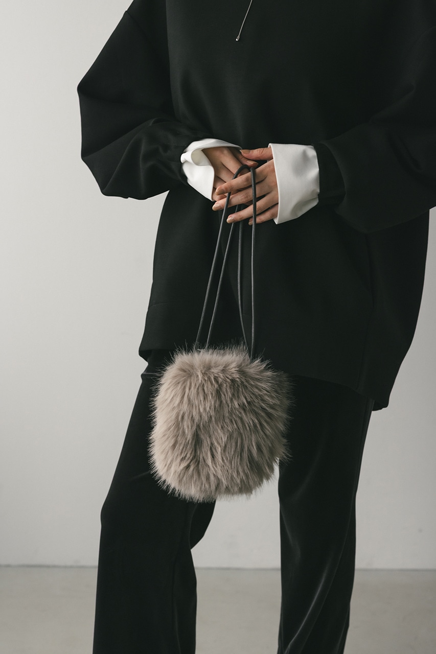 ミニマムでころんとしたフォルムのフェイクファーバッグ。柔らかな手触りとふわっとした見た目がコーディネートのアクセントになります。持ち手のフェイクレザーの丸紐仕立てなので上品な印象のうえ、肩にかけやすく実用性にも優れています。