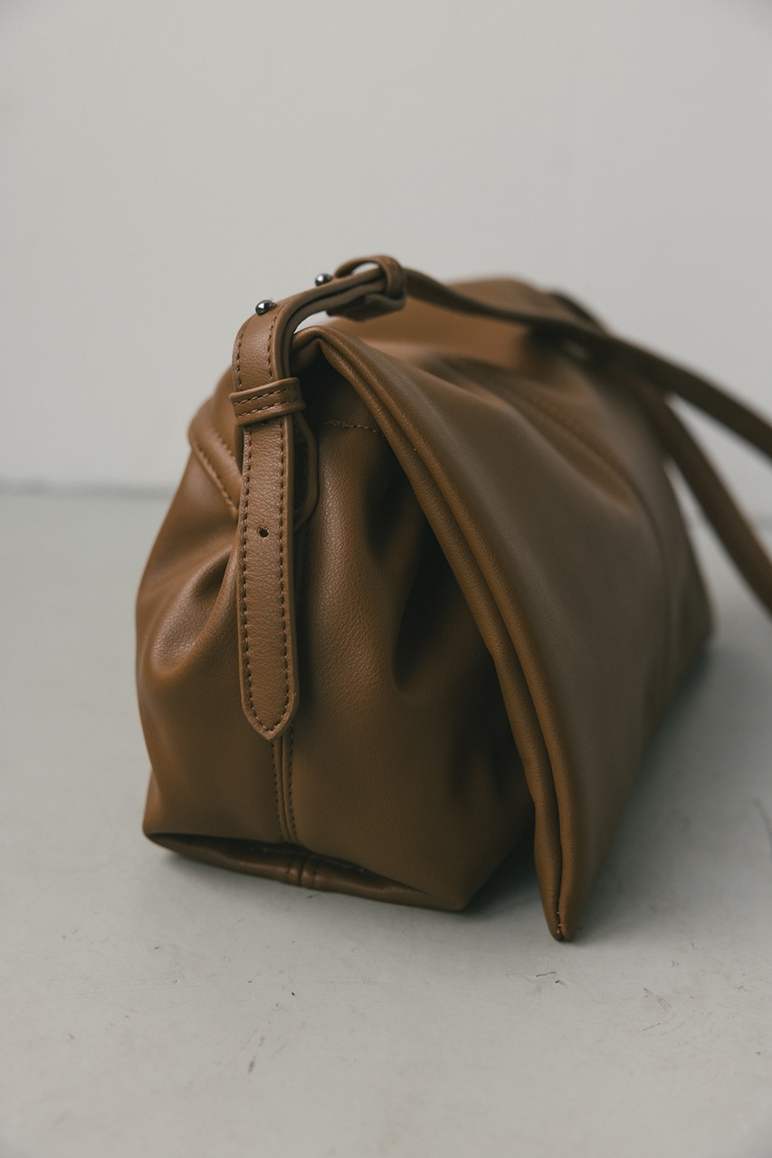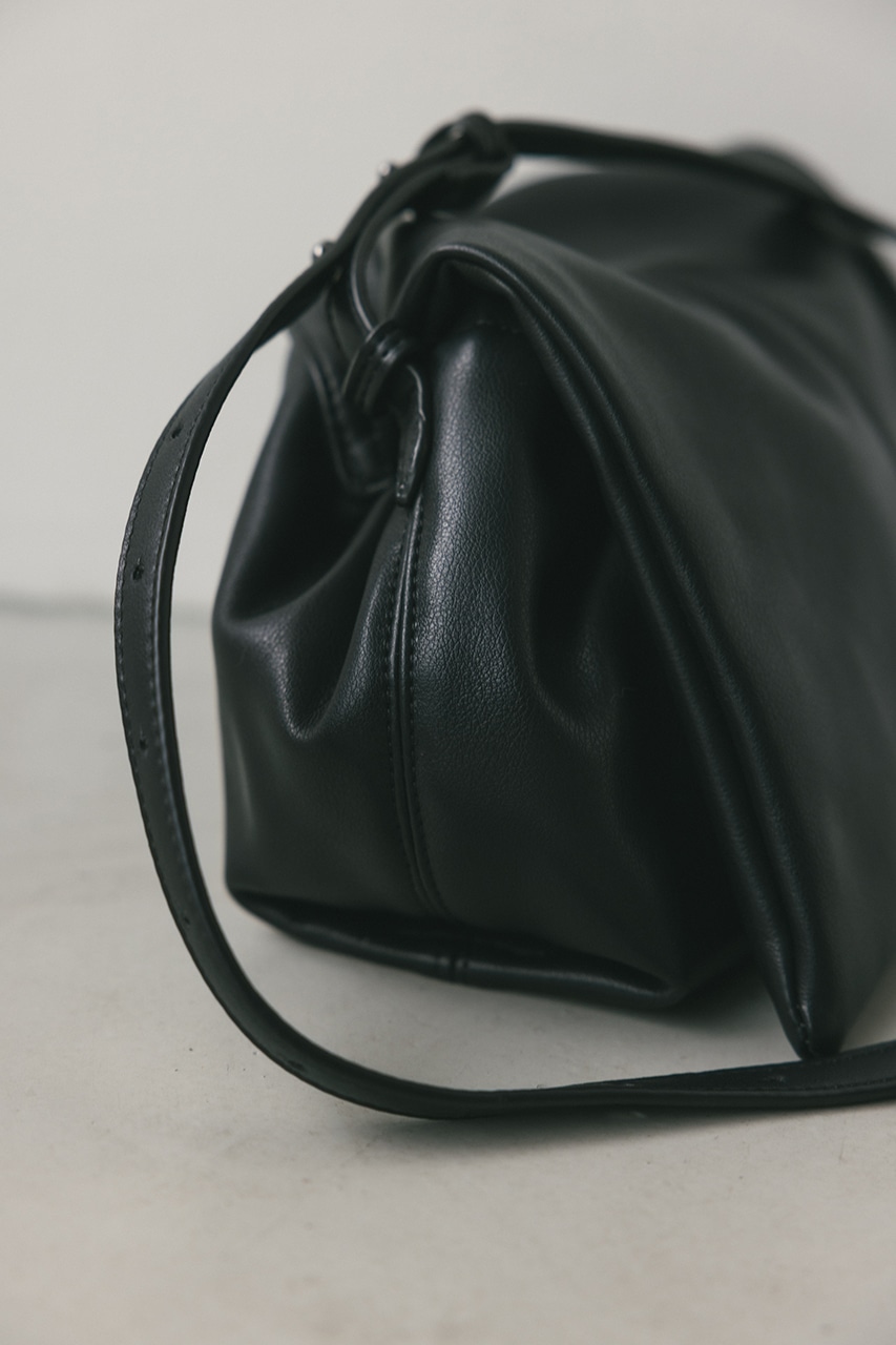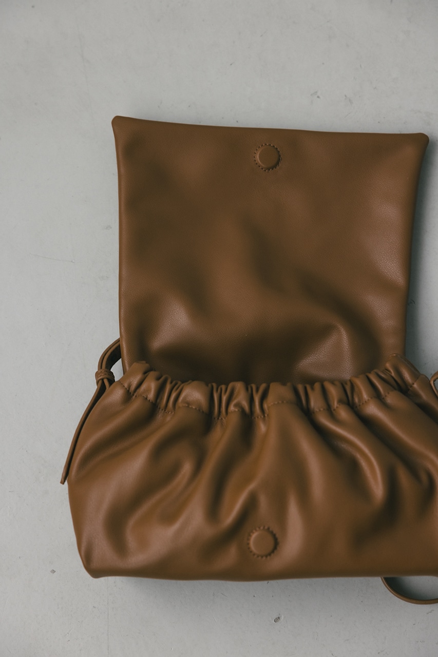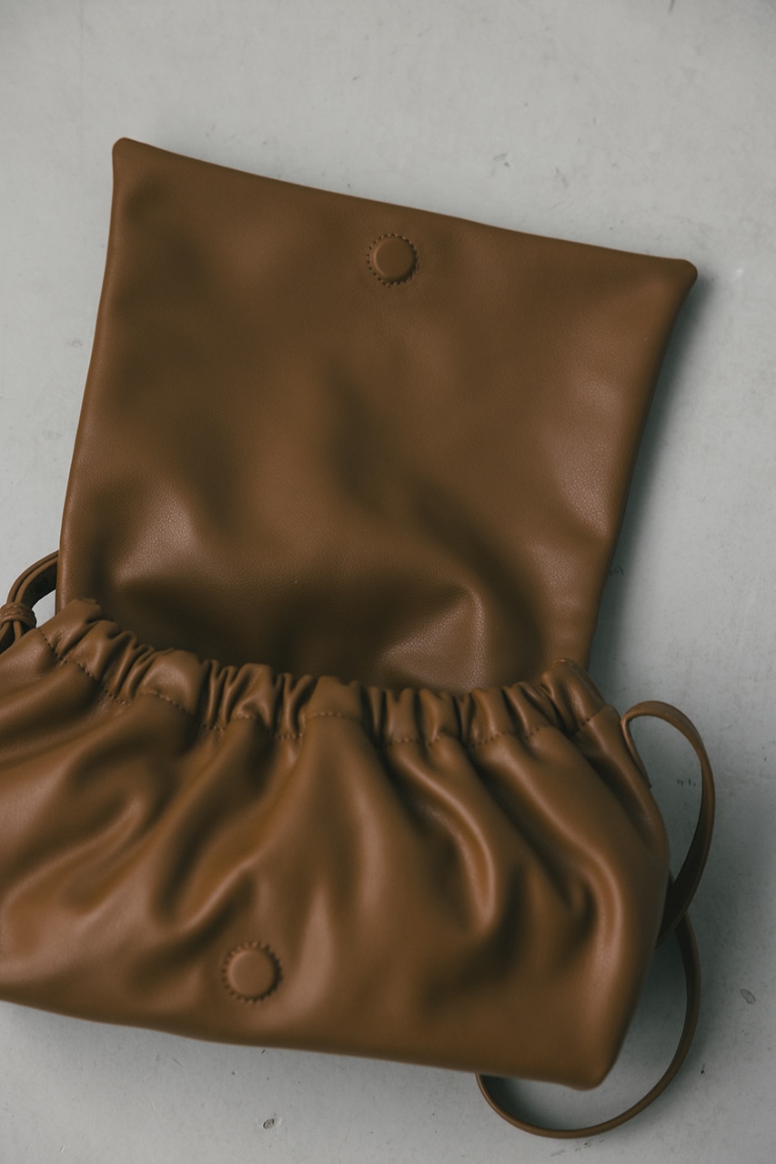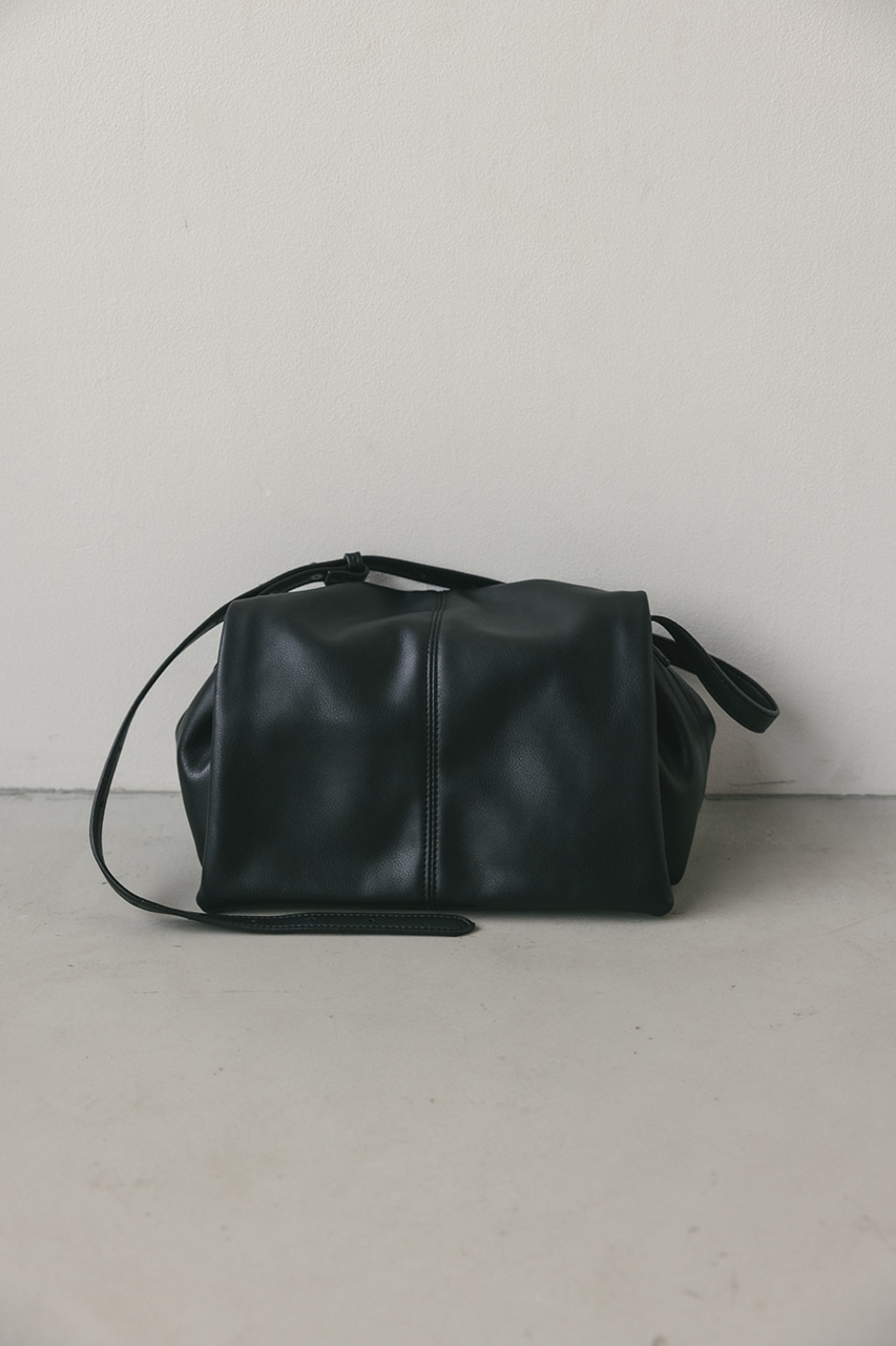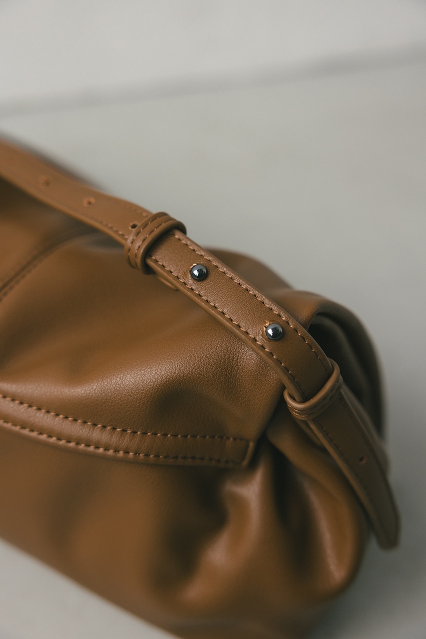 マットで上品なフェイクレザーを使用した、綺麗目にもカジュアルにも馴染むショルダーバッグ。コロンとフォルムとギャザー口が使いやすい便利なマグフラップ仕様。ショルダーは調整可能です。