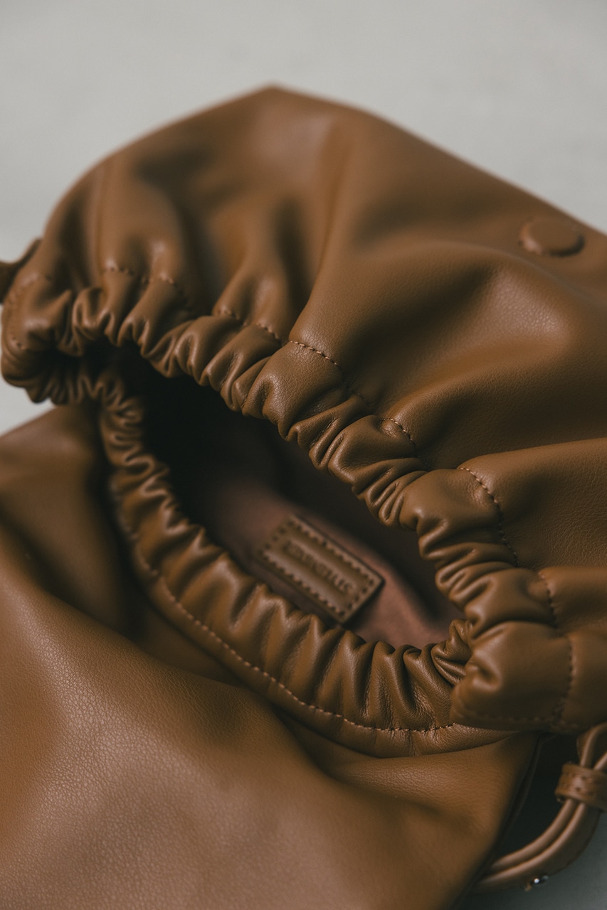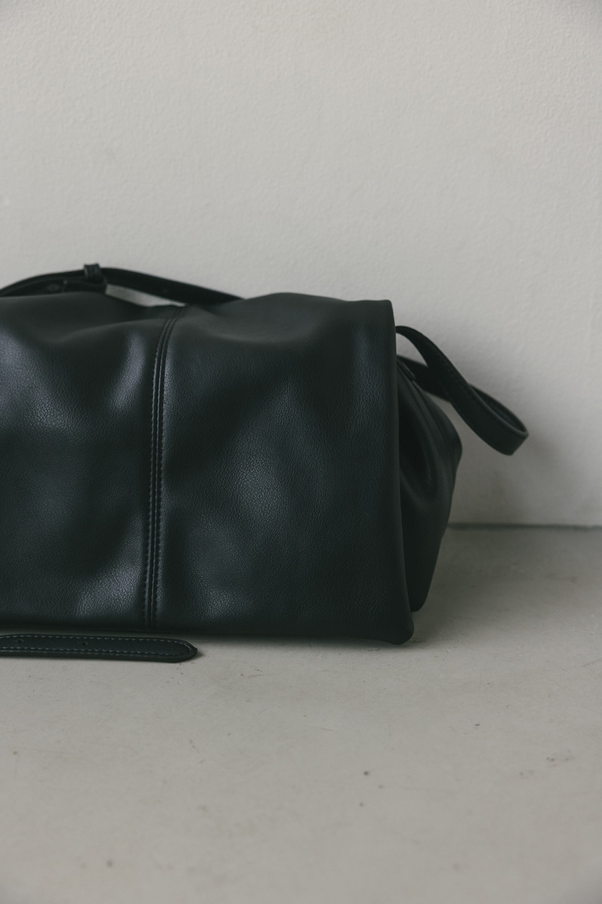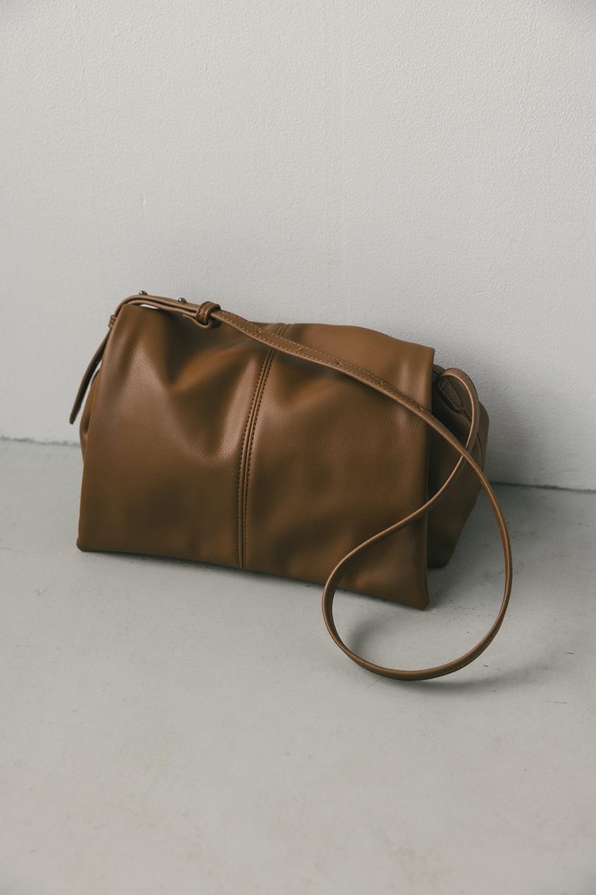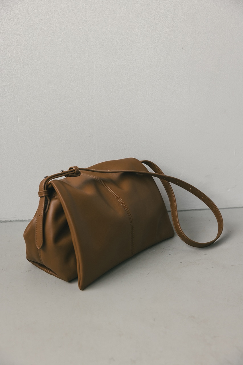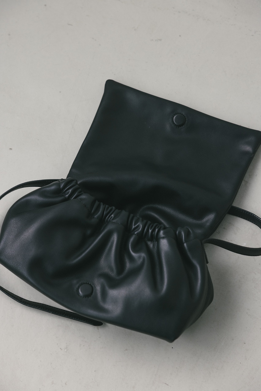 マットで上品なフェイクレザーを使用した、綺麗目にもカジュアルにも馴染むショルダーバッグ。コロンとフォルムとギャザー口が使いやすい便利なマグフラップ仕様。ショルダーは調整可能です。
