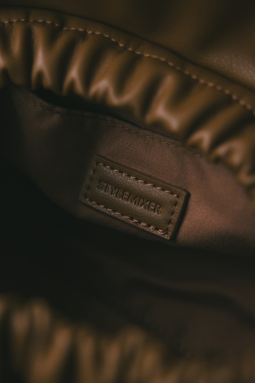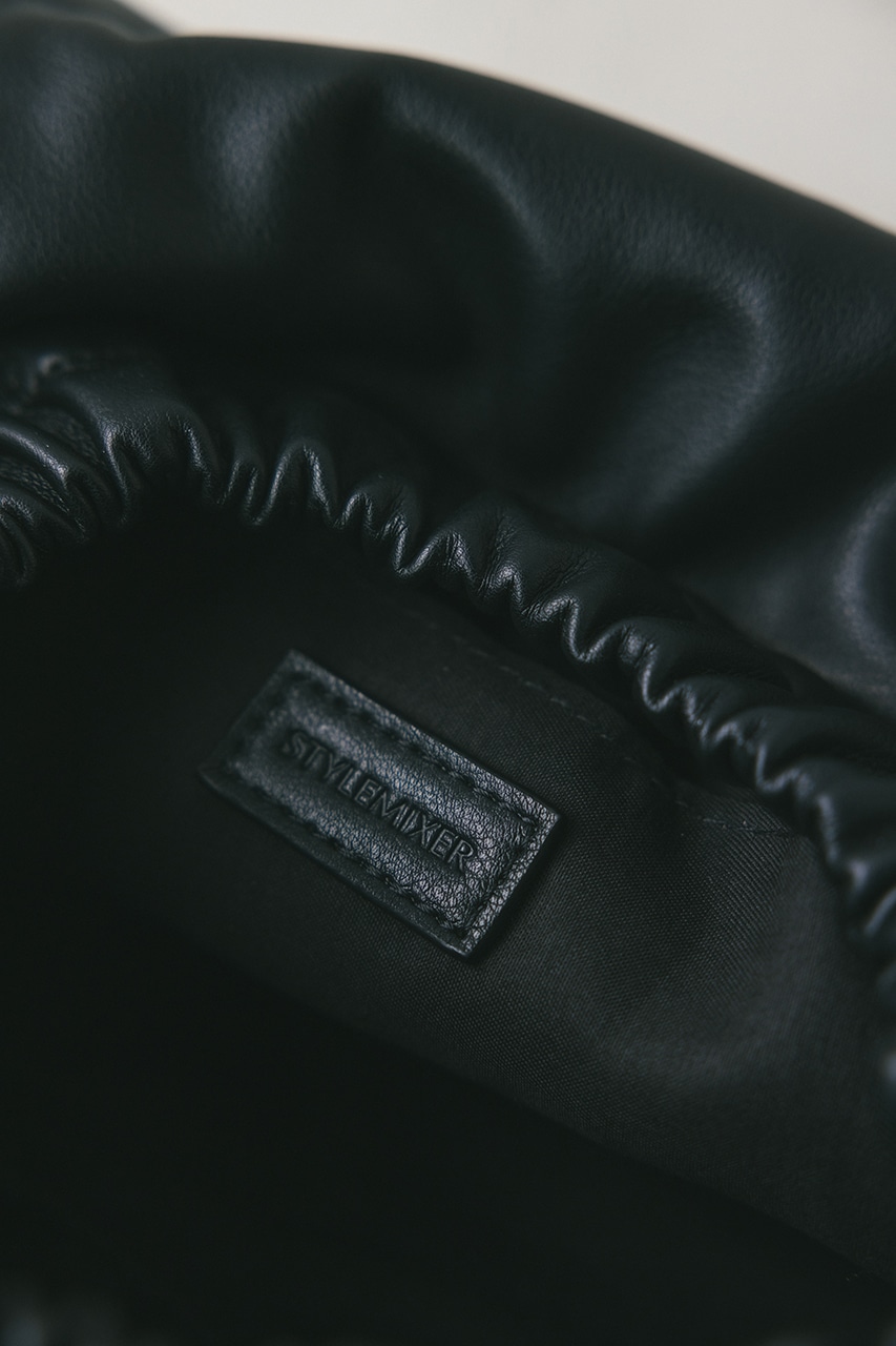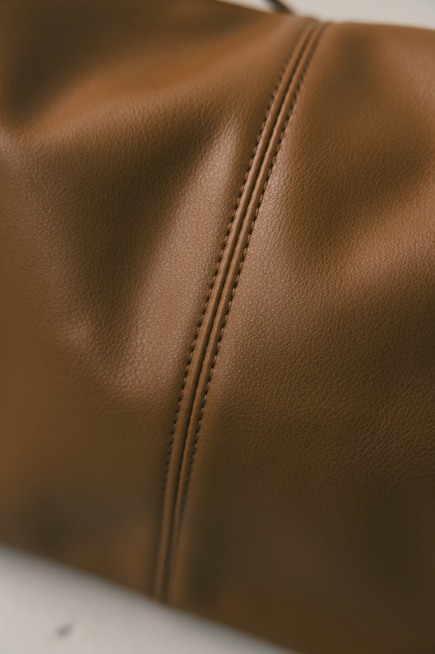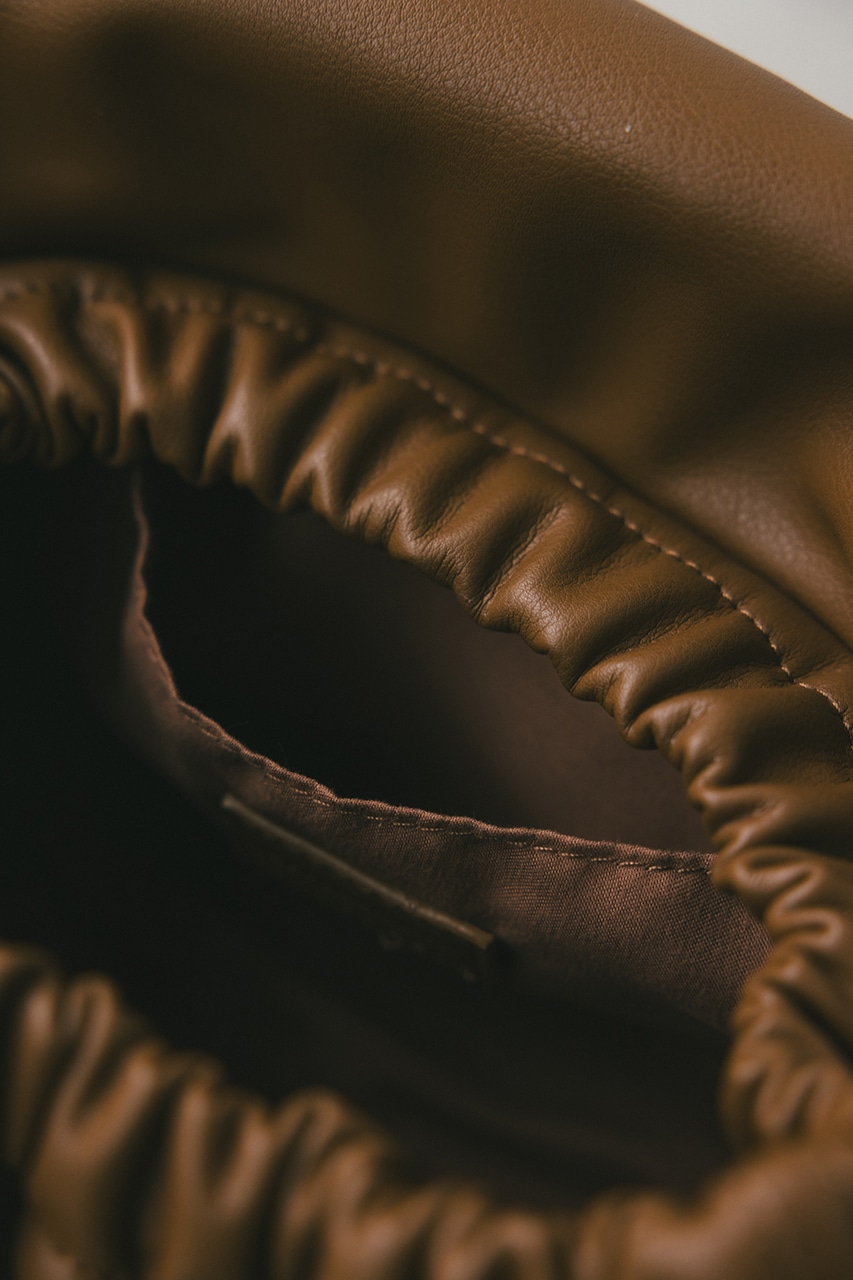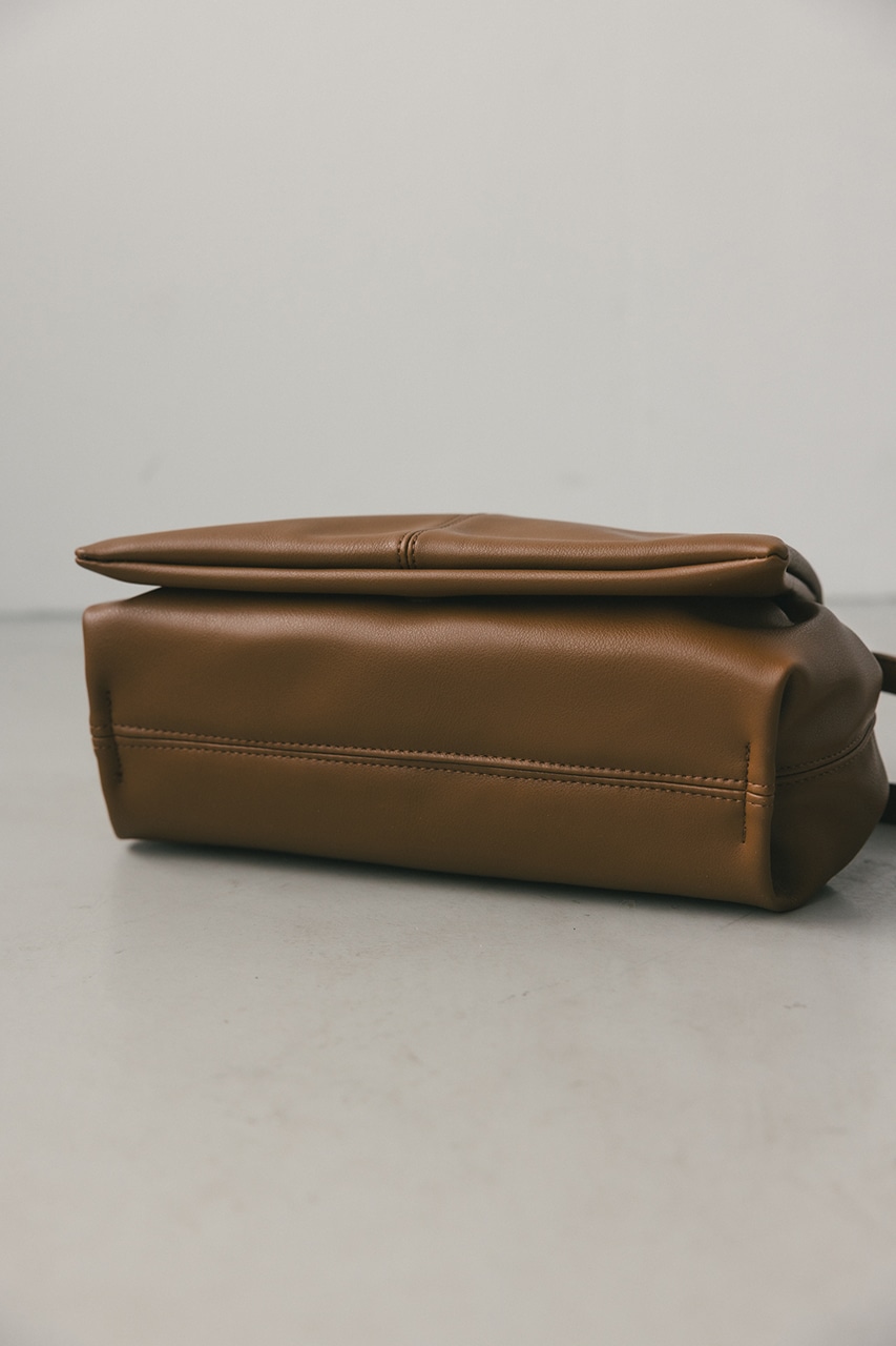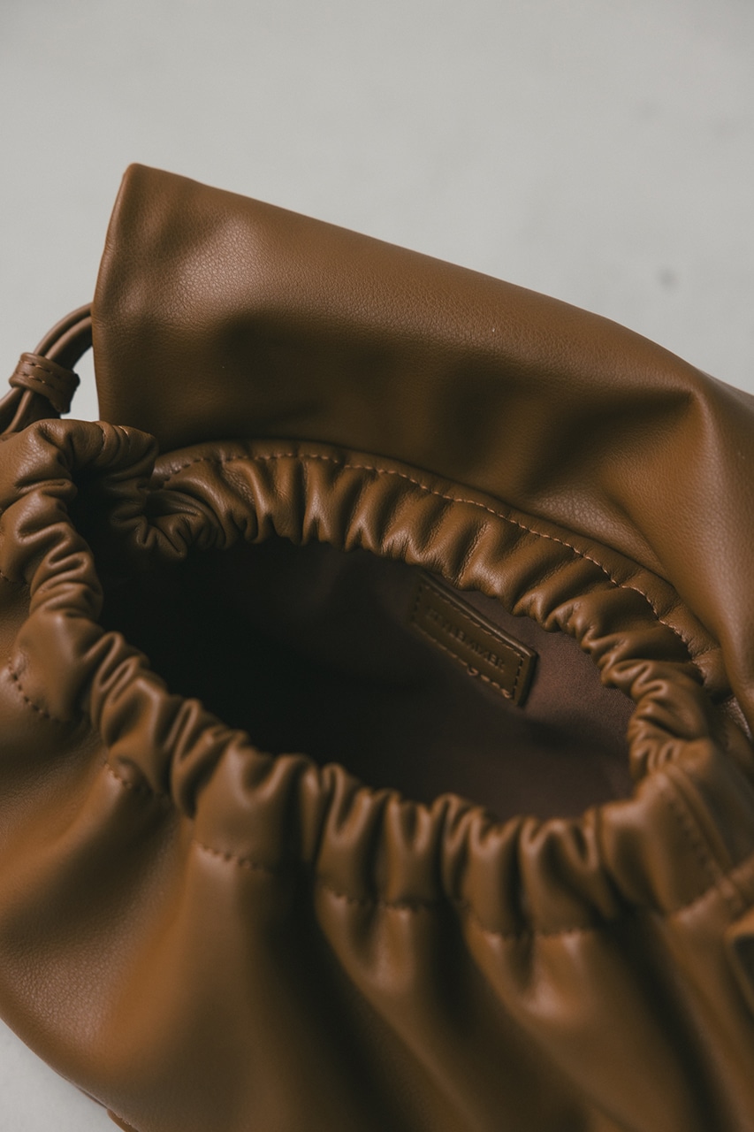 マットで上品なフェイクレザーを使用した、綺麗目にもカジュアルにも馴染むショルダーバッグ。コロンとフォルムとギャザー口が使いやすい便利なマグフラップ仕様。ショルダーは調整可能です。