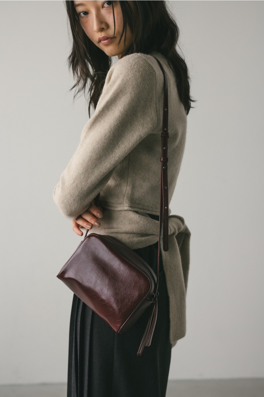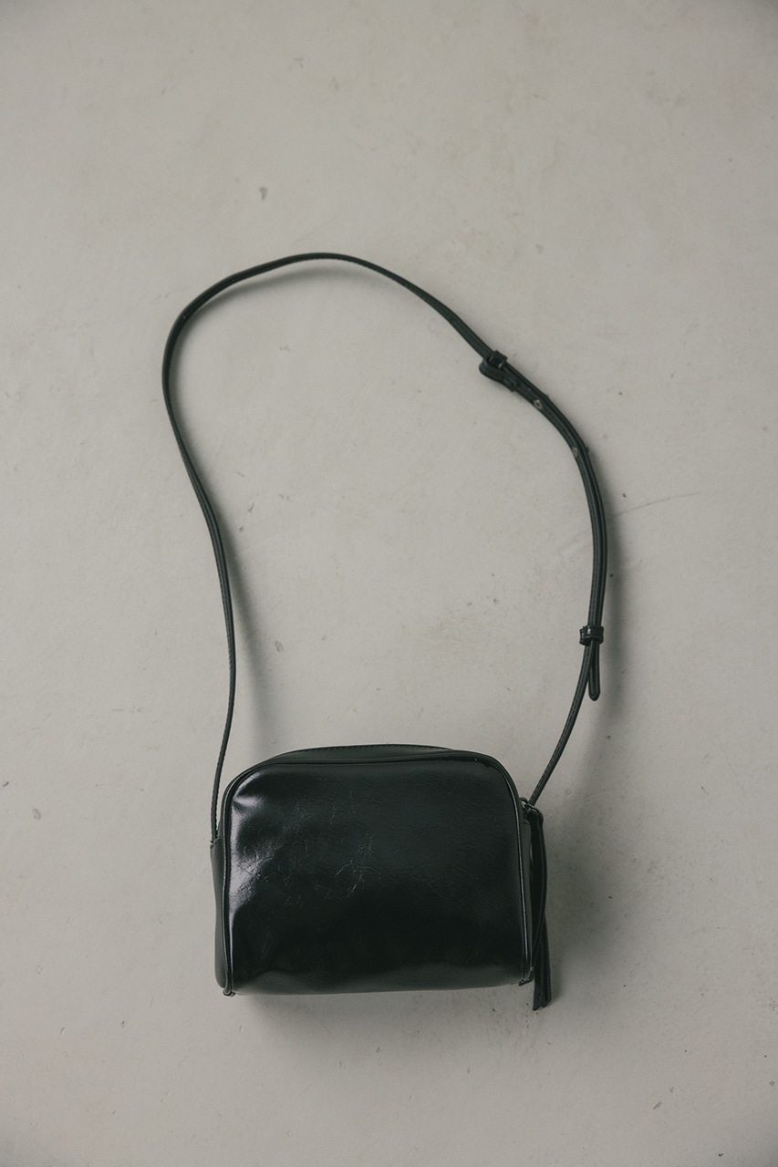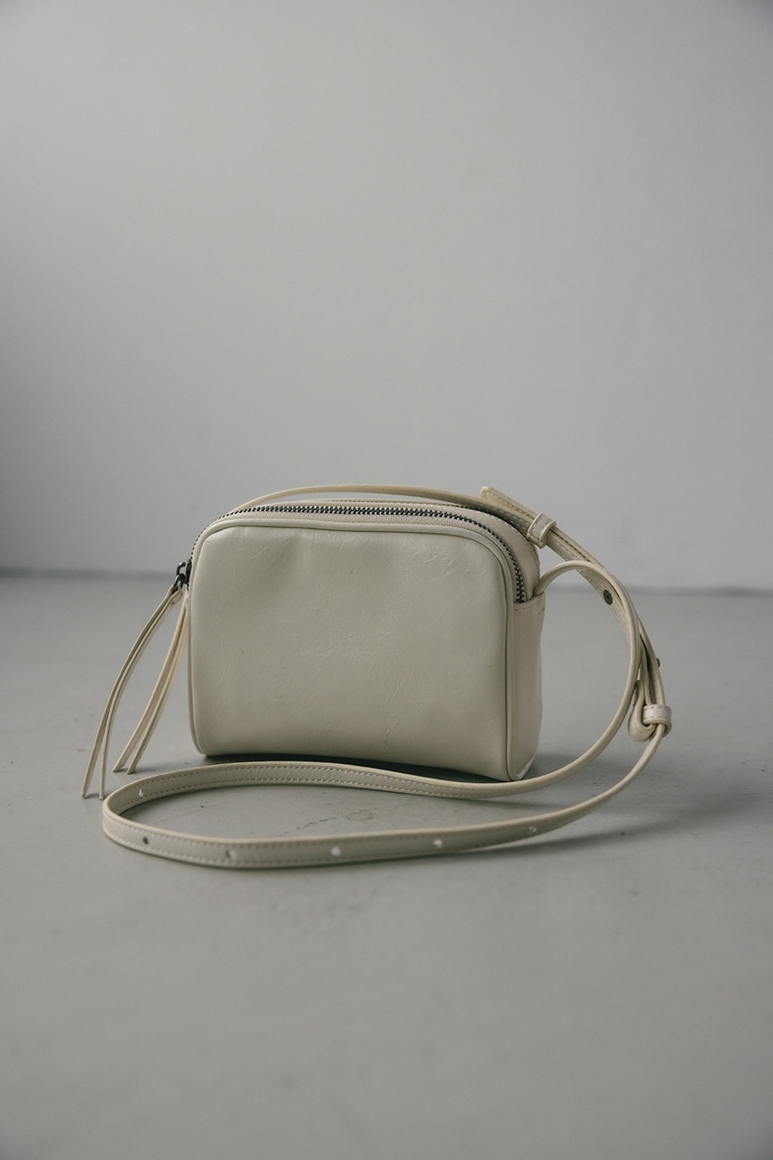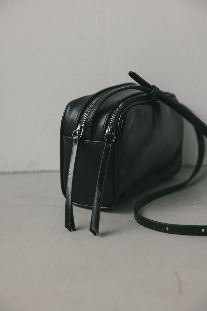 ダブルジップがポイントのコンパクトなスクエア型のショルダーバッグ。カジュアル、モード、綺麗めなどどんなスタイリングにもはまるサイズ感がポイント。トップジッパーで開閉可能。ショルダー長さは調整頂けます。