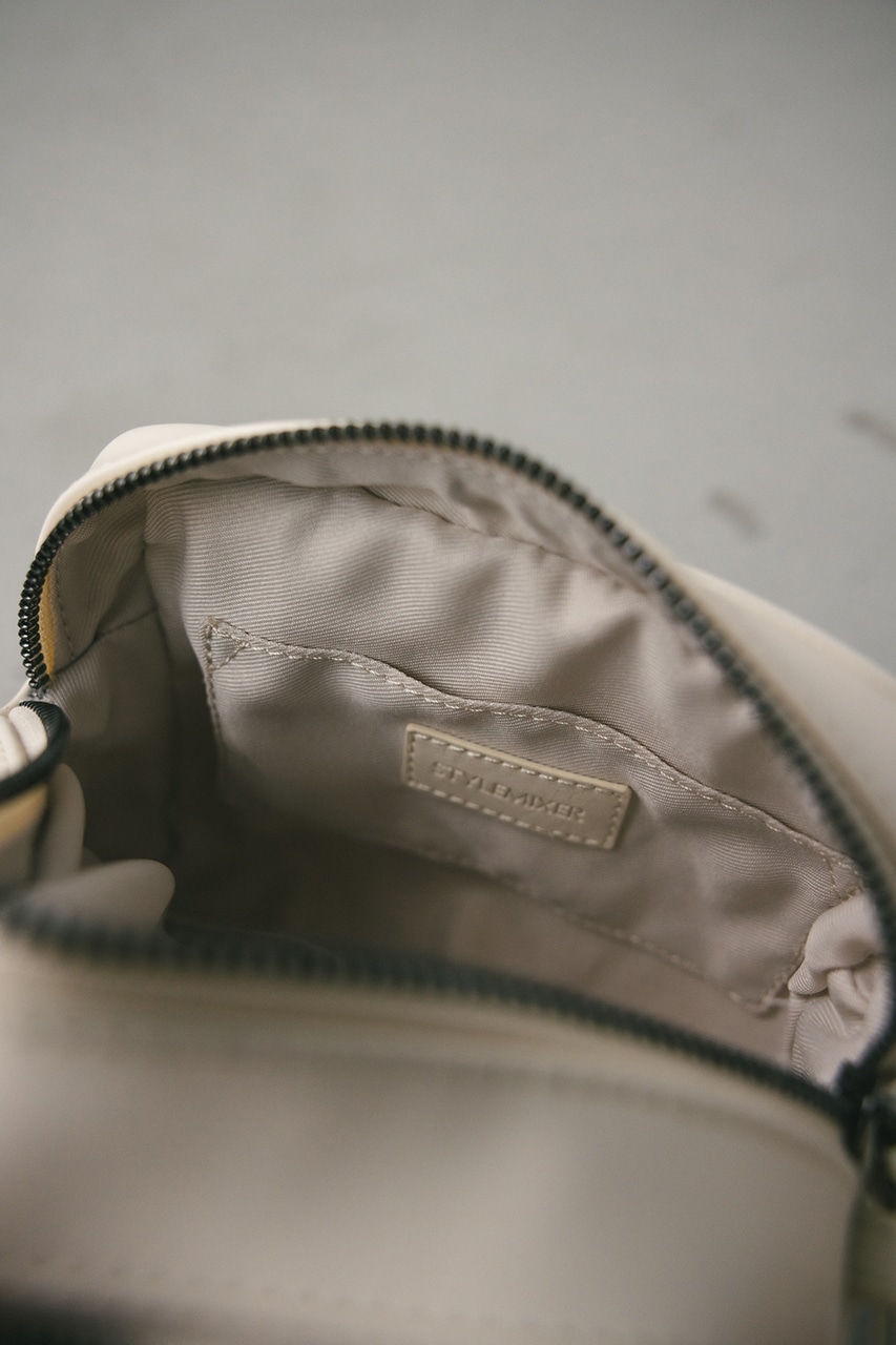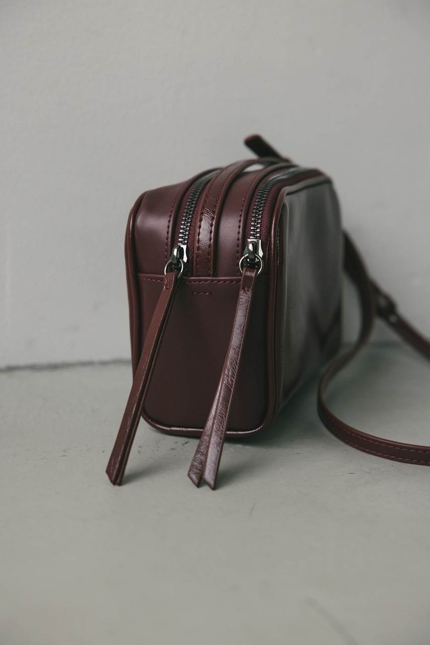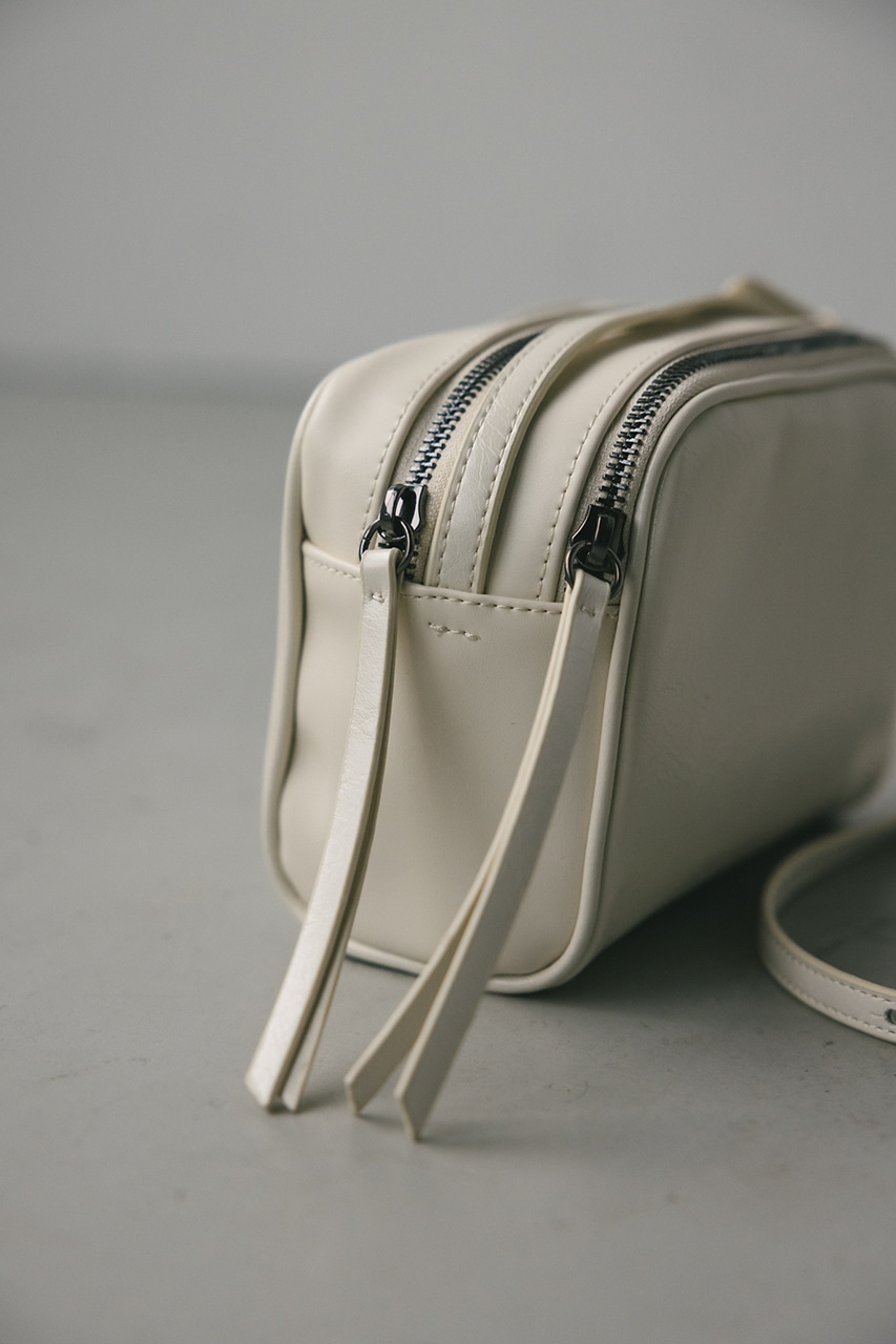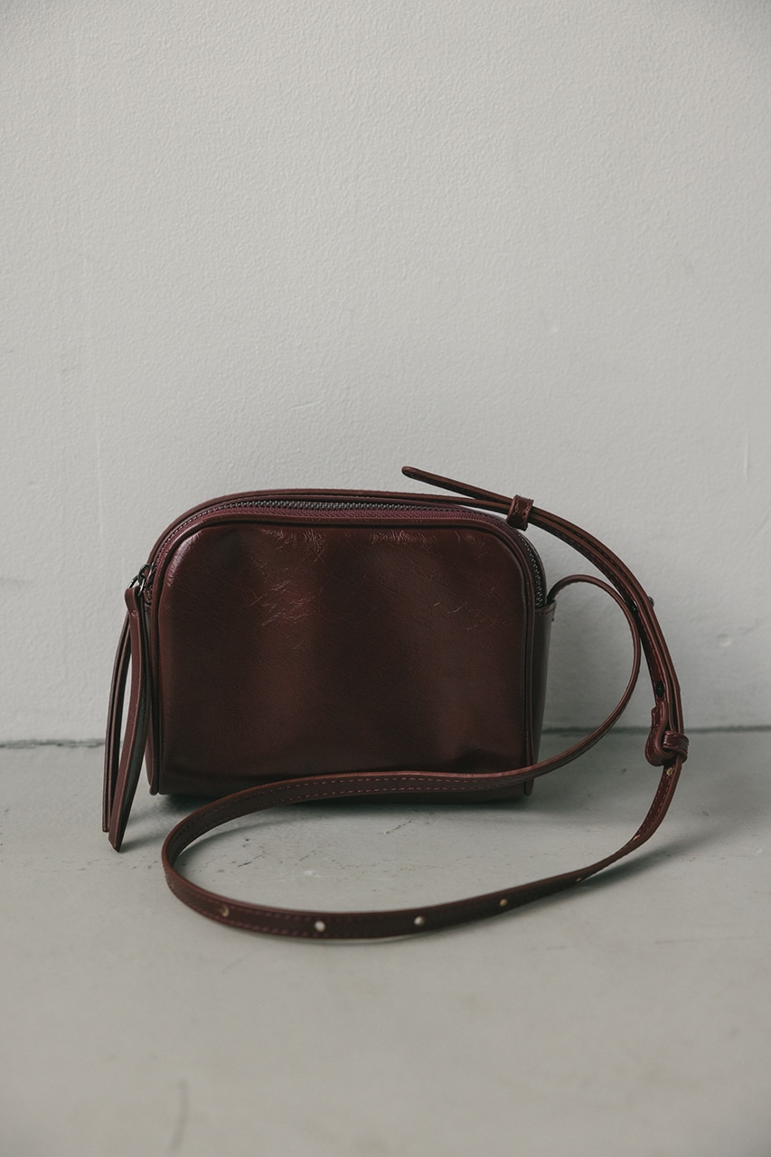 ダブルジップがポイントのコンパクトなスクエア型のショルダーバッグ。カジュアル、モード、綺麗めなどどんなスタイリングにもはまるサイズ感がポイント。トップジッパーで開閉可能。ショルダー長さは調整頂けます。