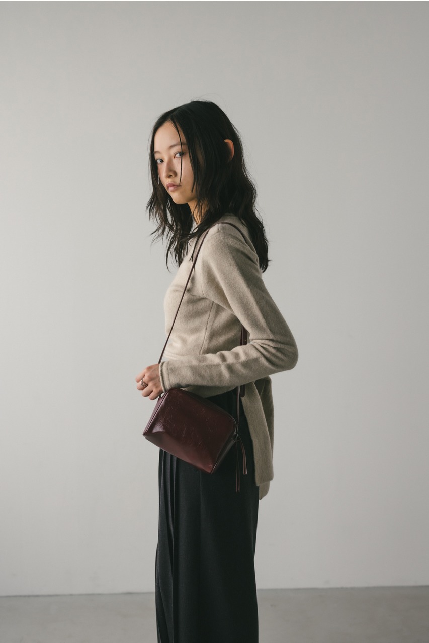 ダブルジップがポイントのコンパクトなスクエア型のショルダーバッグ。カジュアル、モード、綺麗めなどどんなスタイリングにもはまるサイズ感がポイント。トップジッパーで開閉可能。ショルダー長さは調整頂けます。