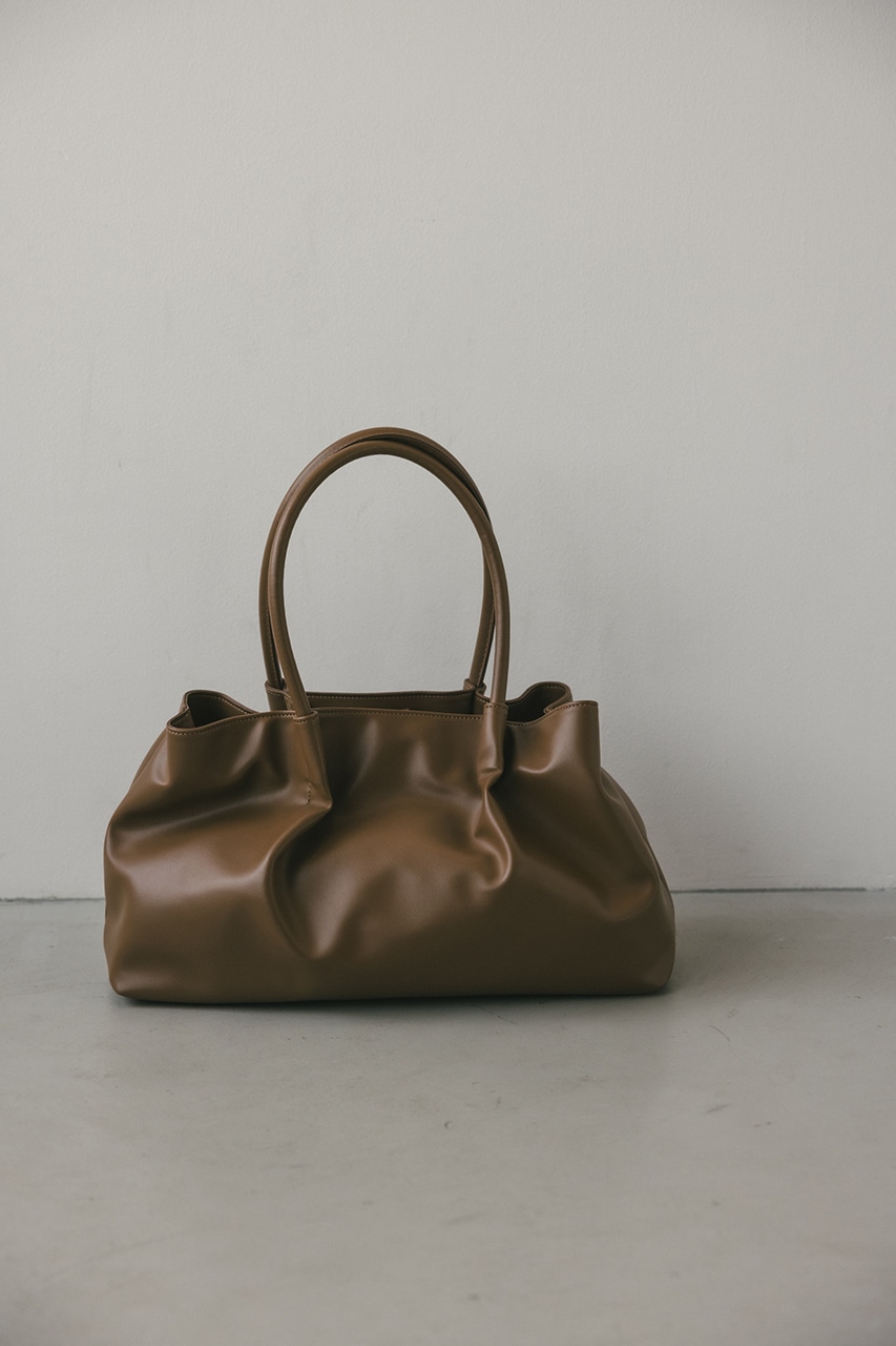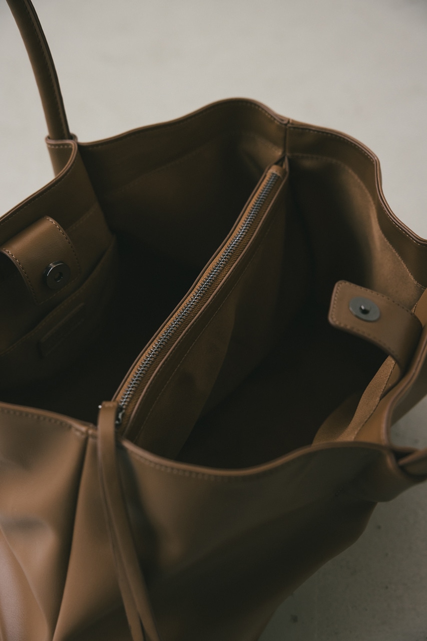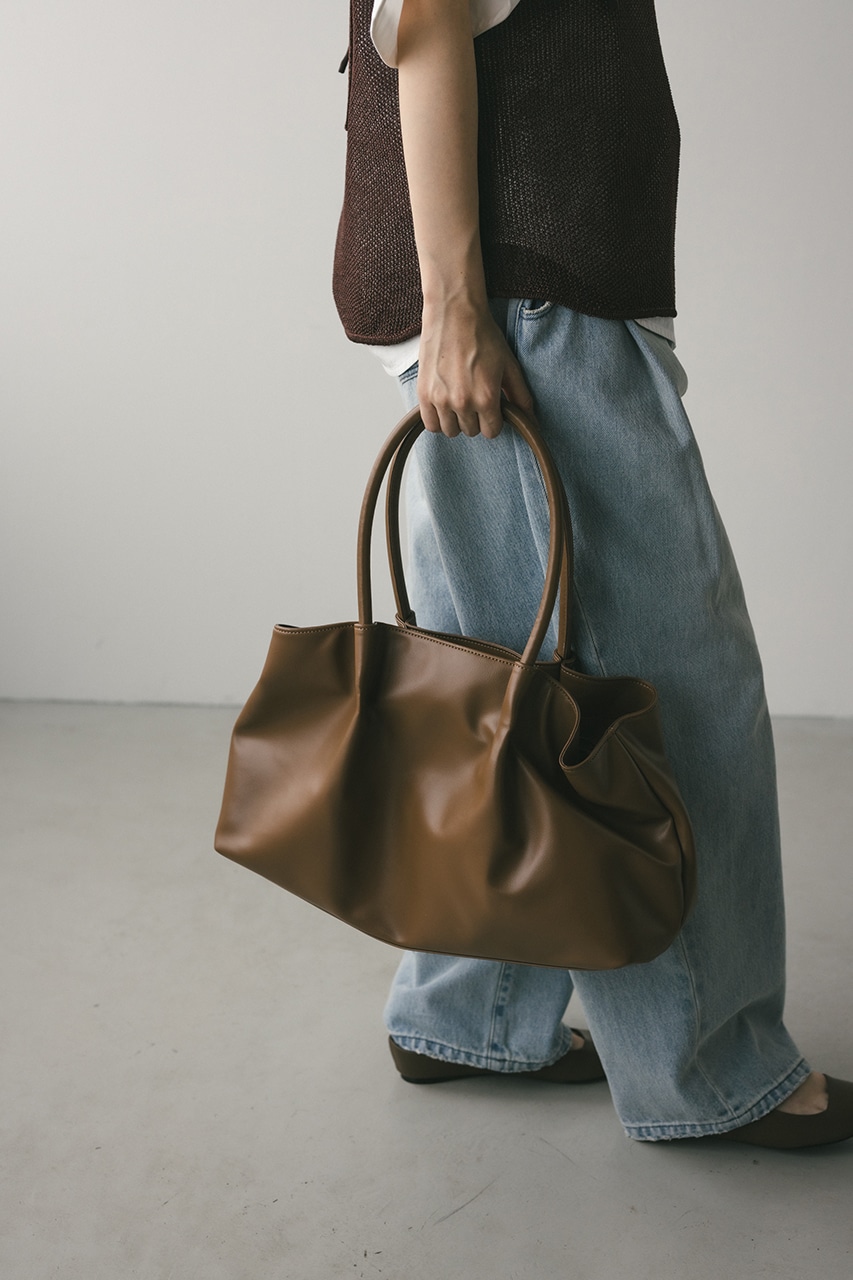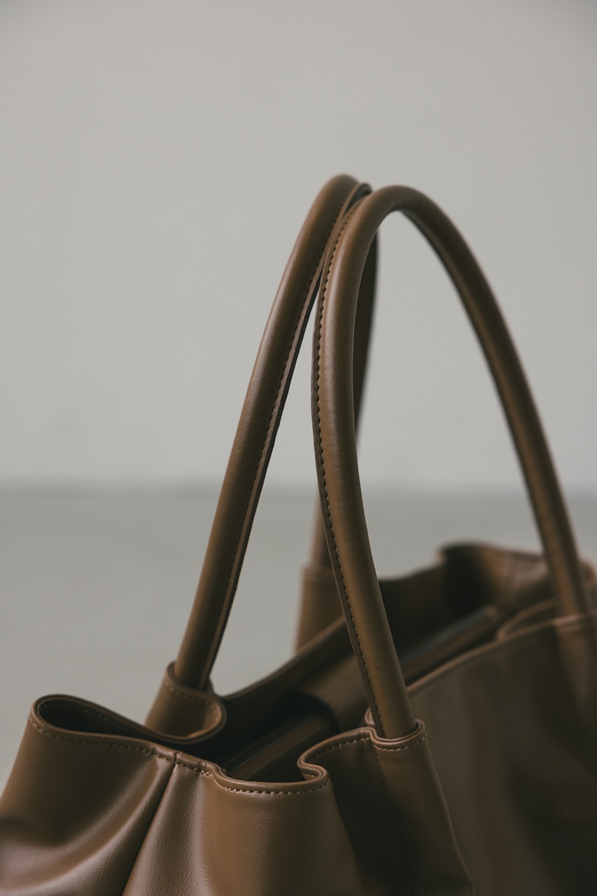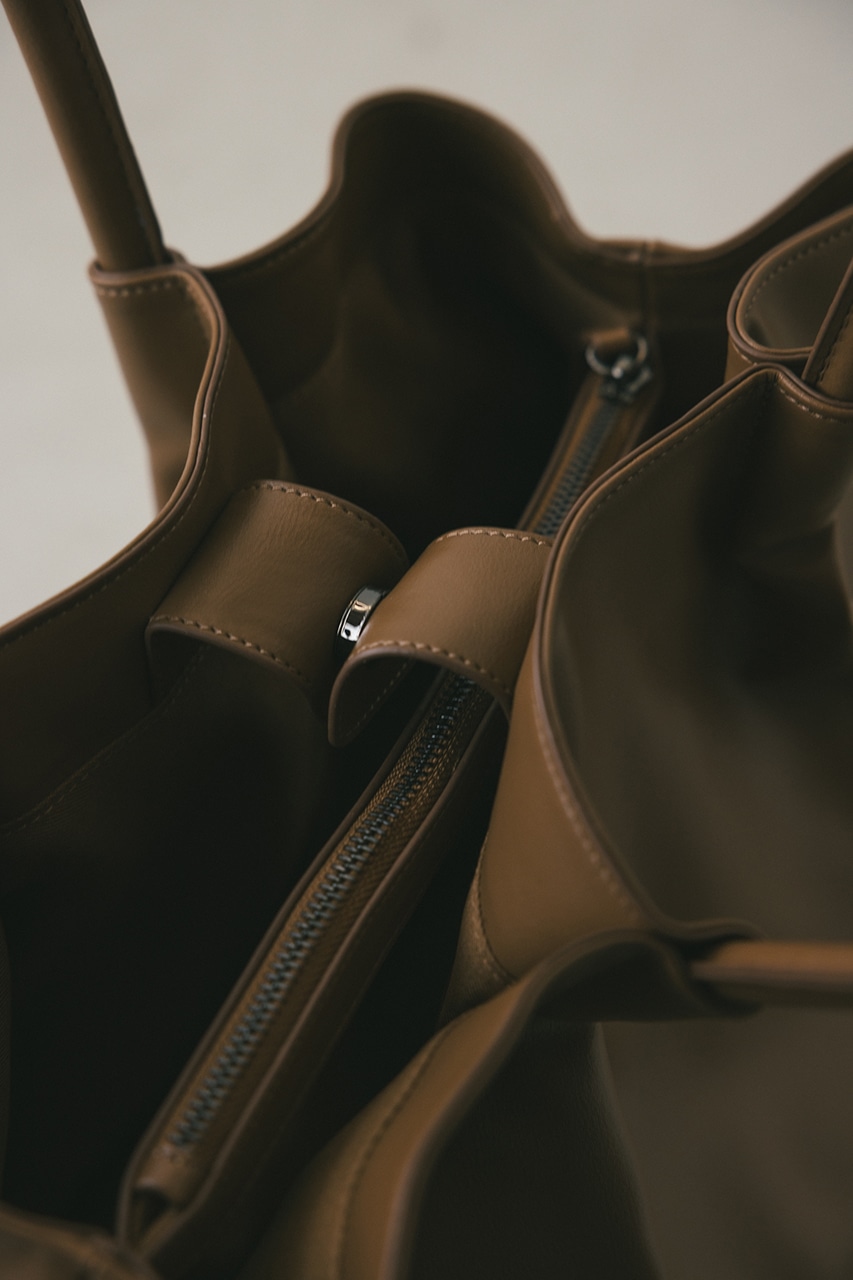 インハンドルデティールが可愛いボストンバッグ。A4サイズが収納可能な大きめなサイズ感がポイント。3部屋仕立てで使いやすく、様々なスタイリングに馴染みます。