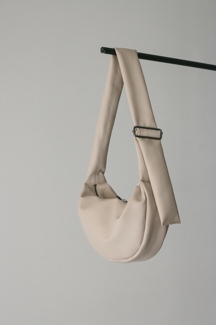 しなやかな上品艶のフェイクレザーに薄い板綿を入れたスタミキ大人気のマンドリンバッグ。ハンドル調整可能でショルダーにも斜め掛けにもできます。