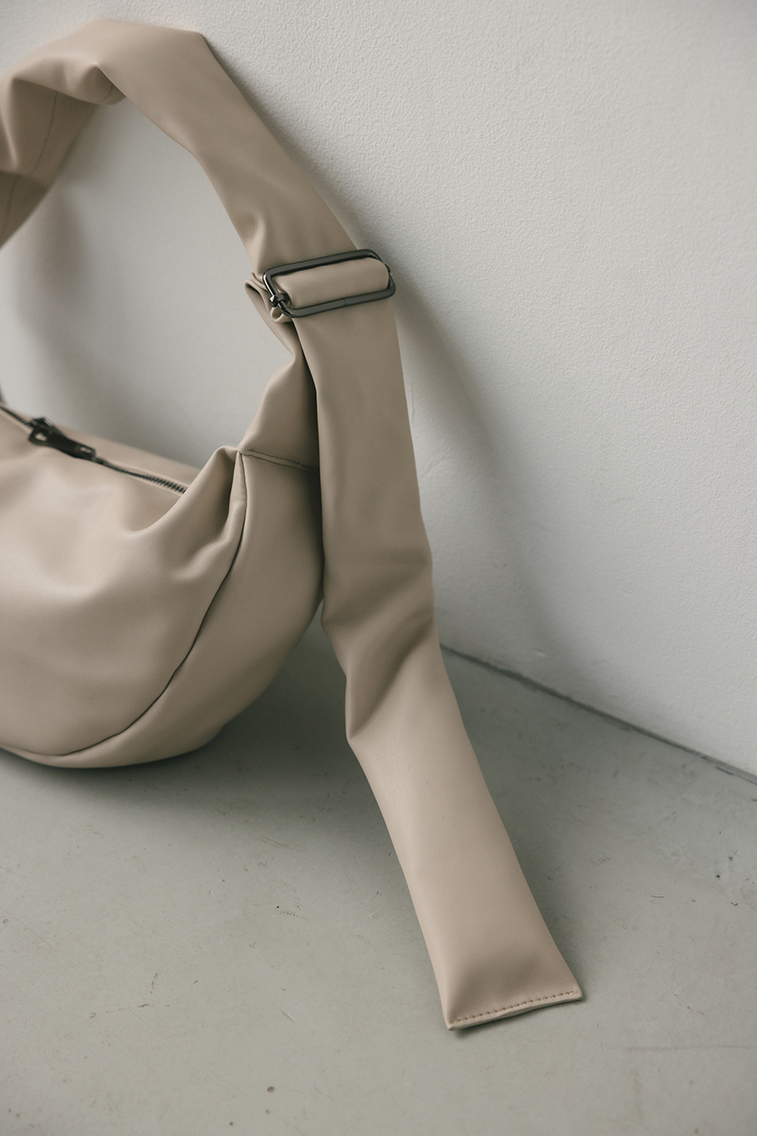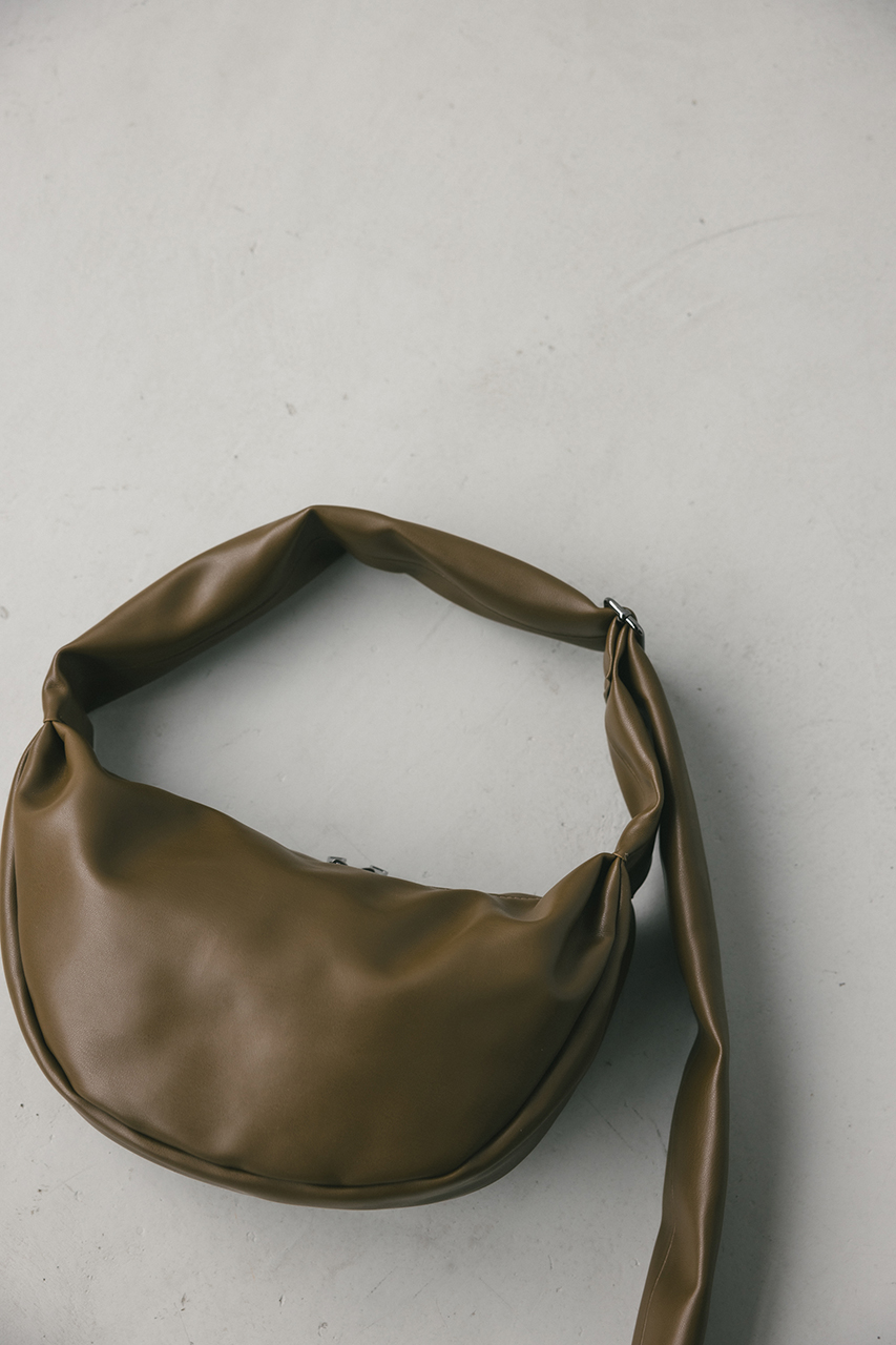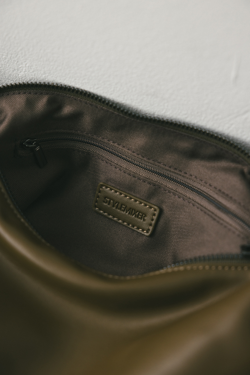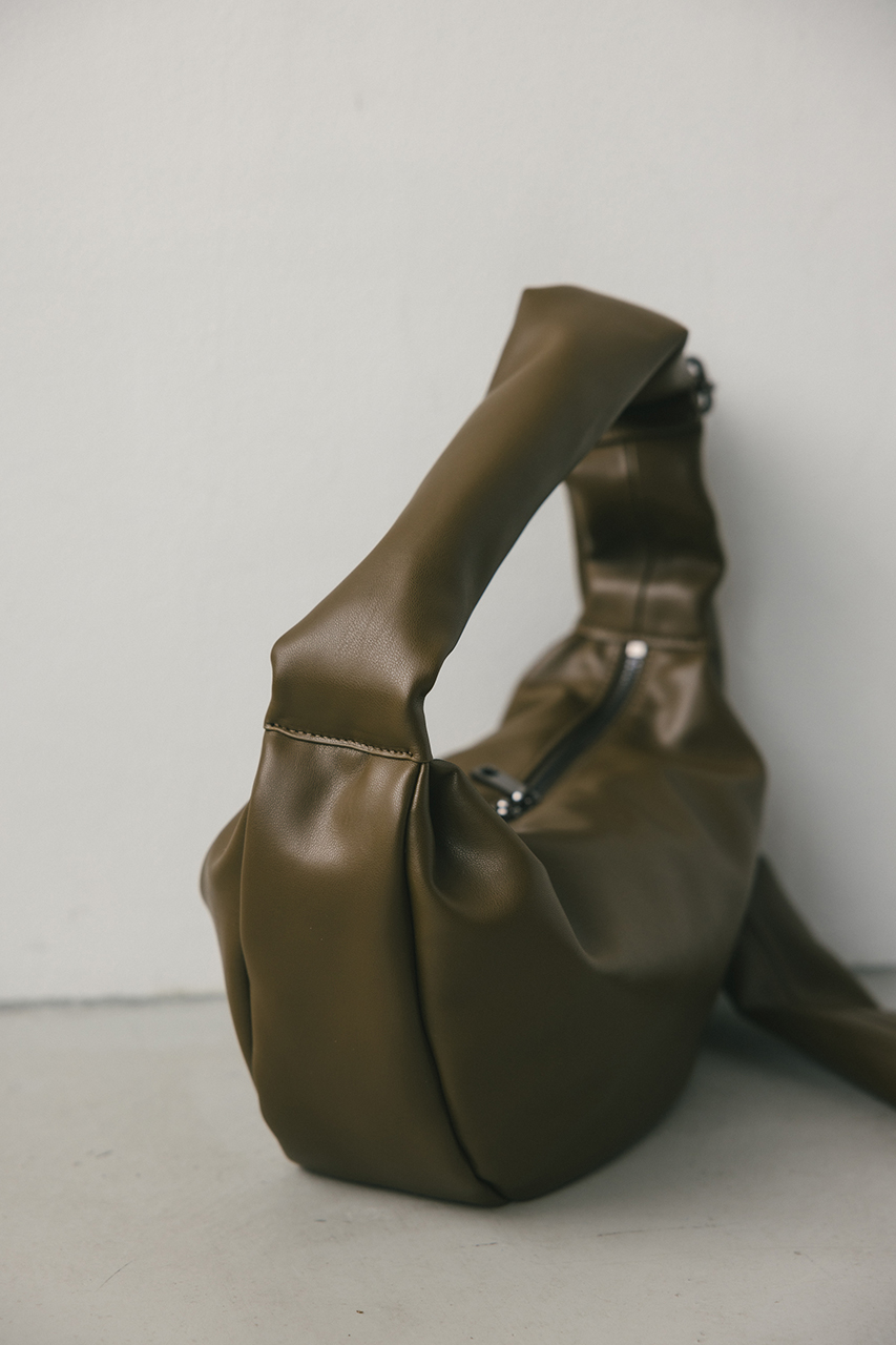 しなやかな上品艶のフェイクレザーに薄い板綿を入れたスタミキ大人気のマンドリンバッグ。ハンドル調整可能でショルダーにも斜め掛けにもできます。