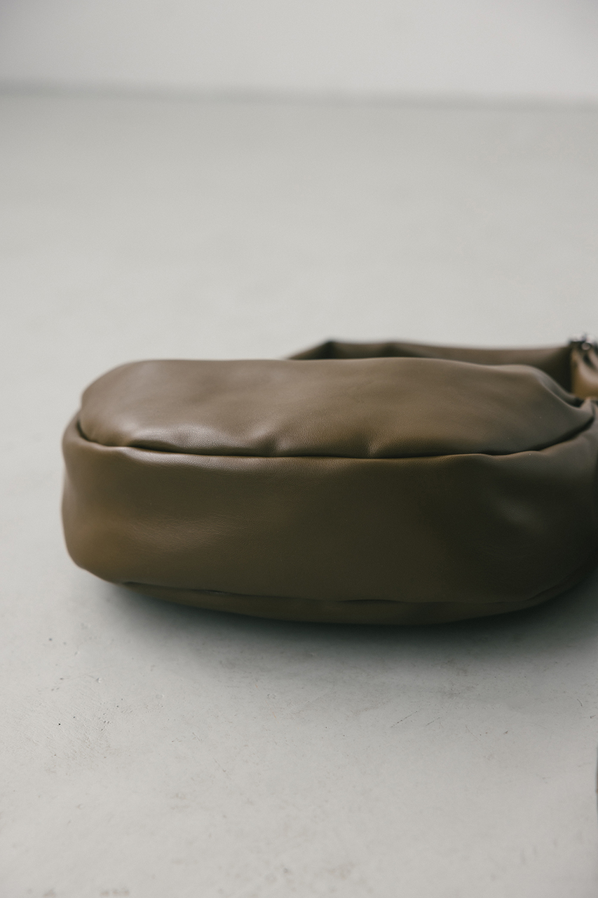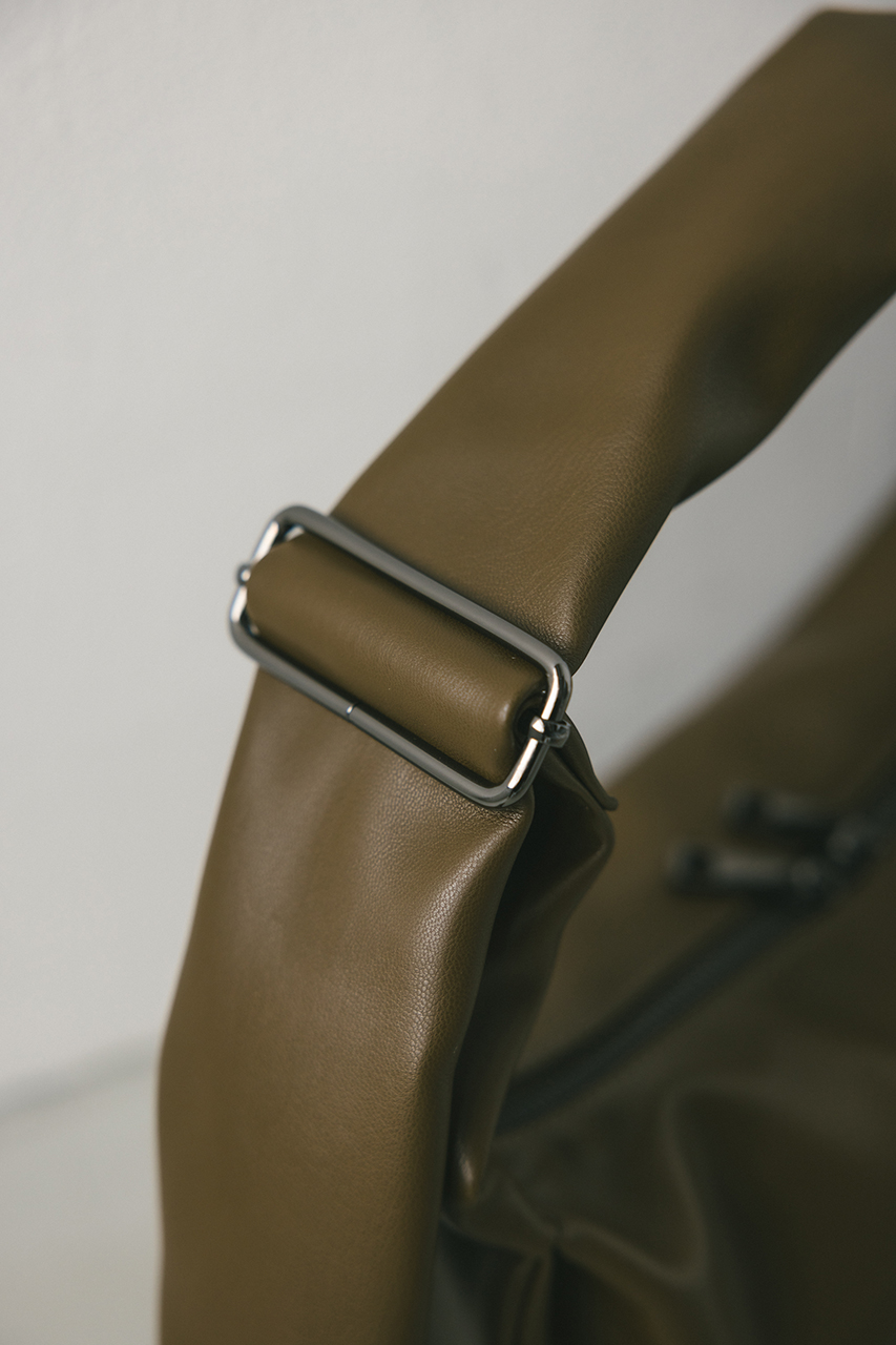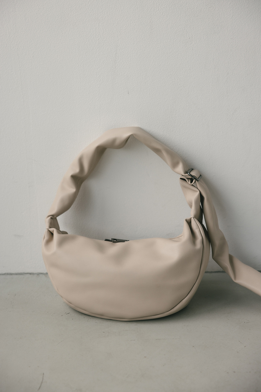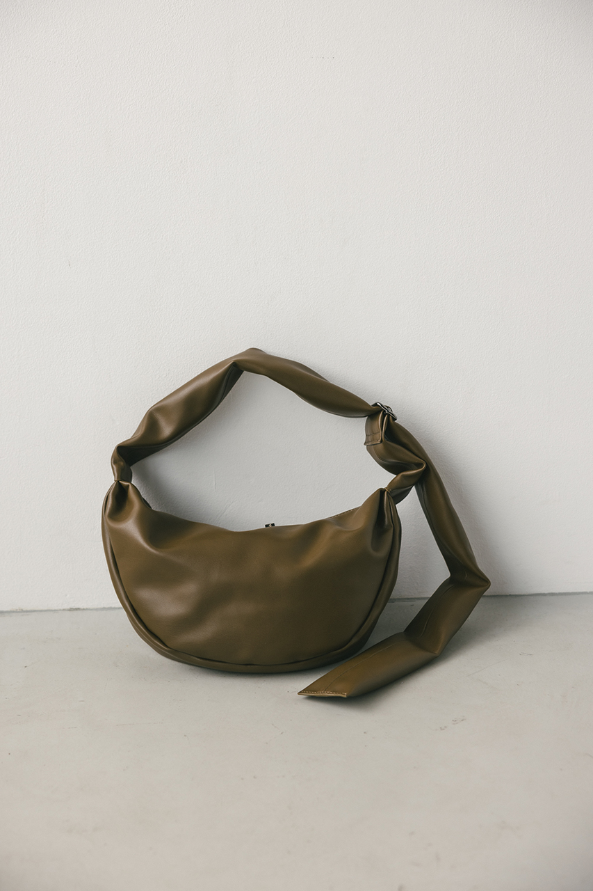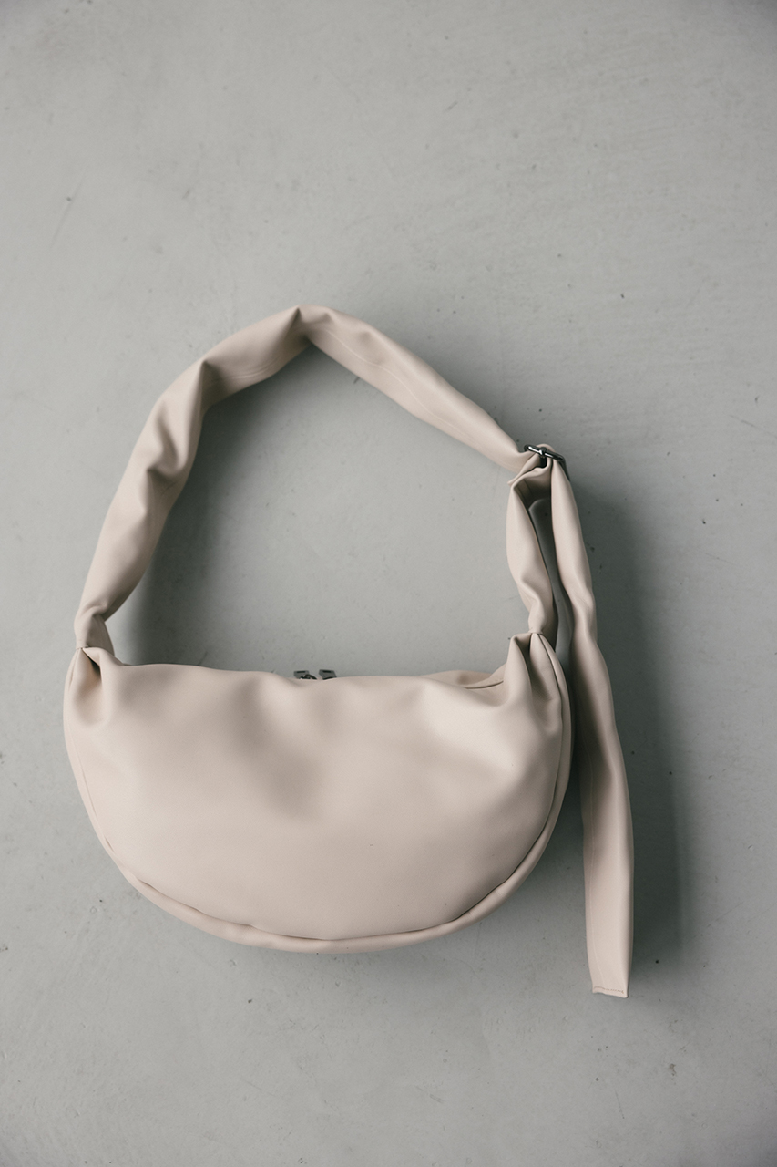 しなやかな上品艶のフェイクレザーに薄い板綿を入れたスタミキ大人気のマンドリンバッグ。ハンドル調整可能でショルダーにも斜め掛けにもできます。