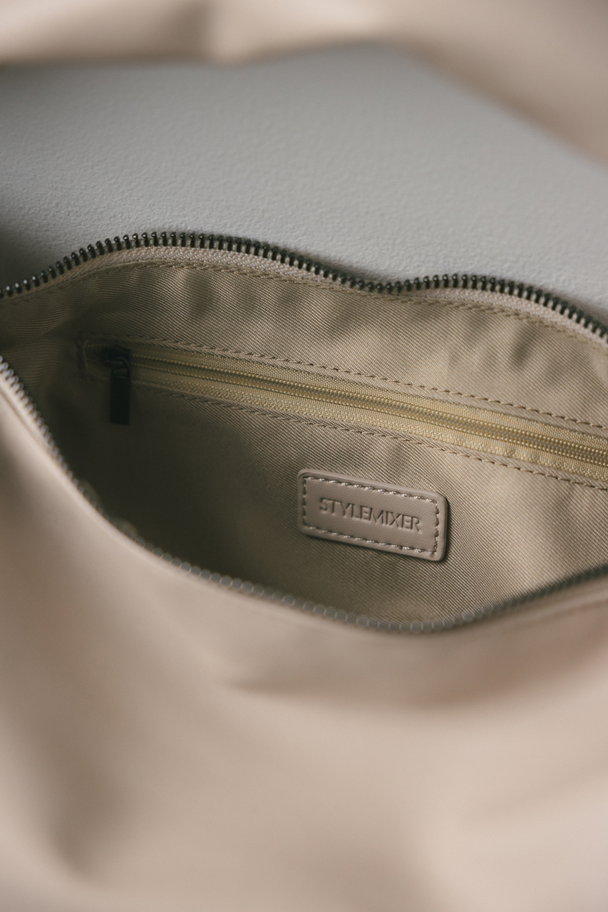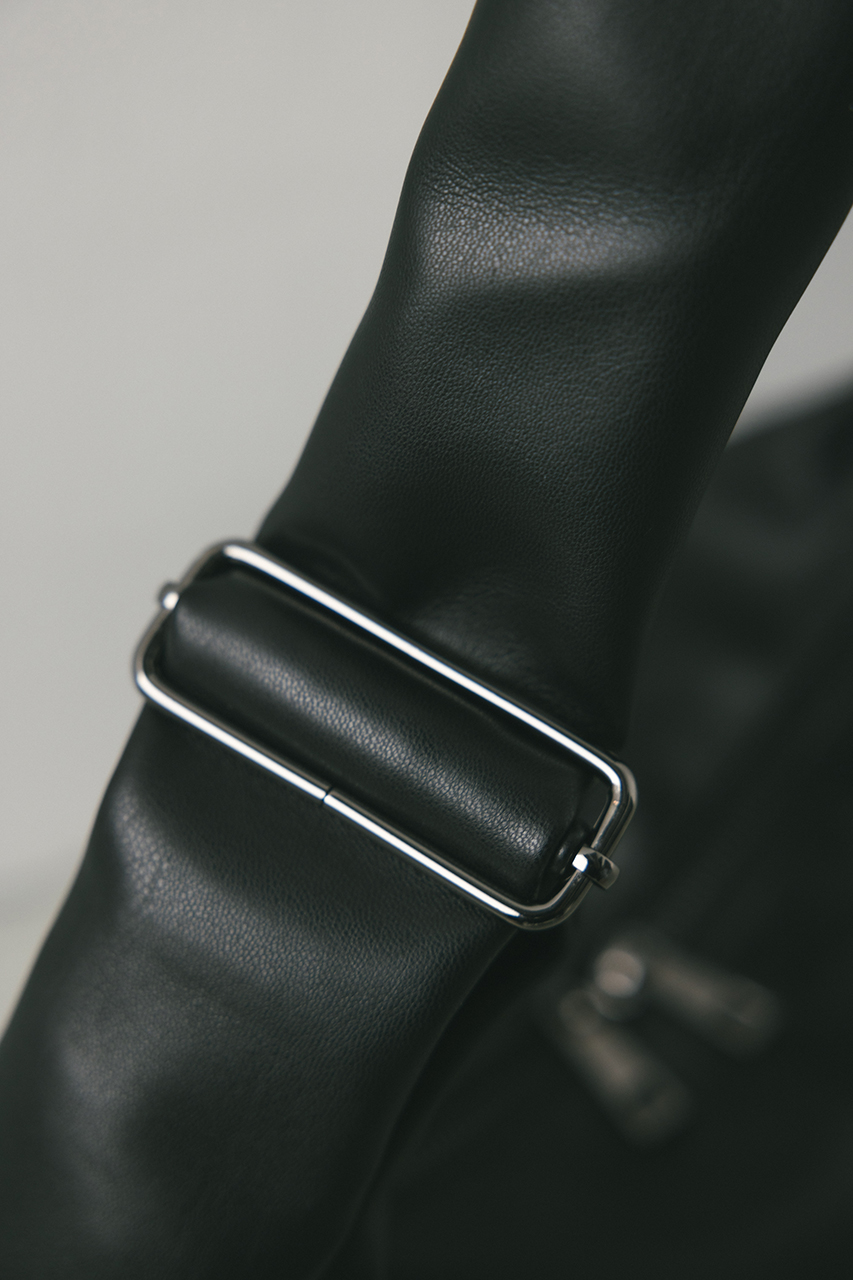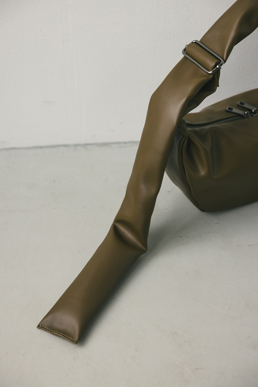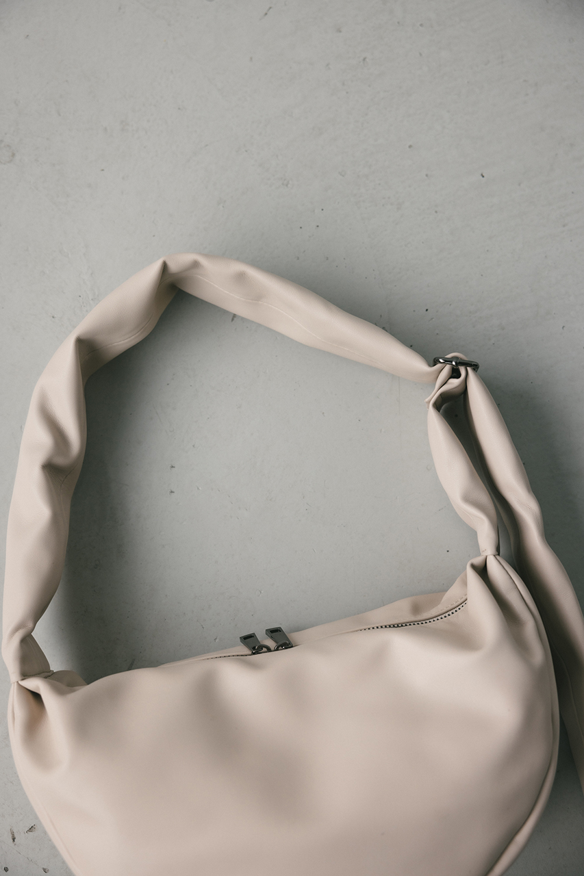 しなやかな上品艶のフェイクレザーに薄い板綿を入れたスタミキ大人気のマンドリンバッグ。ハンドル調整可能でショルダーにも斜め掛けにもできます。